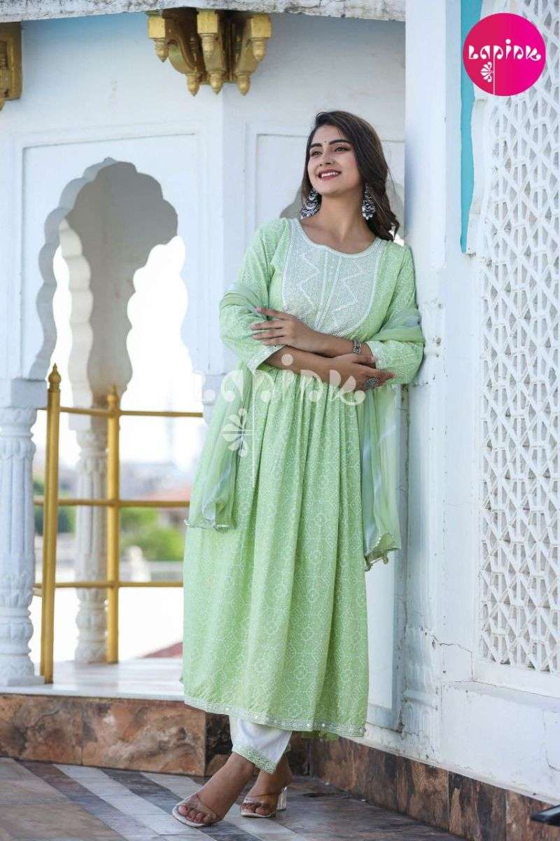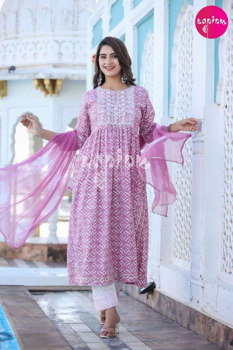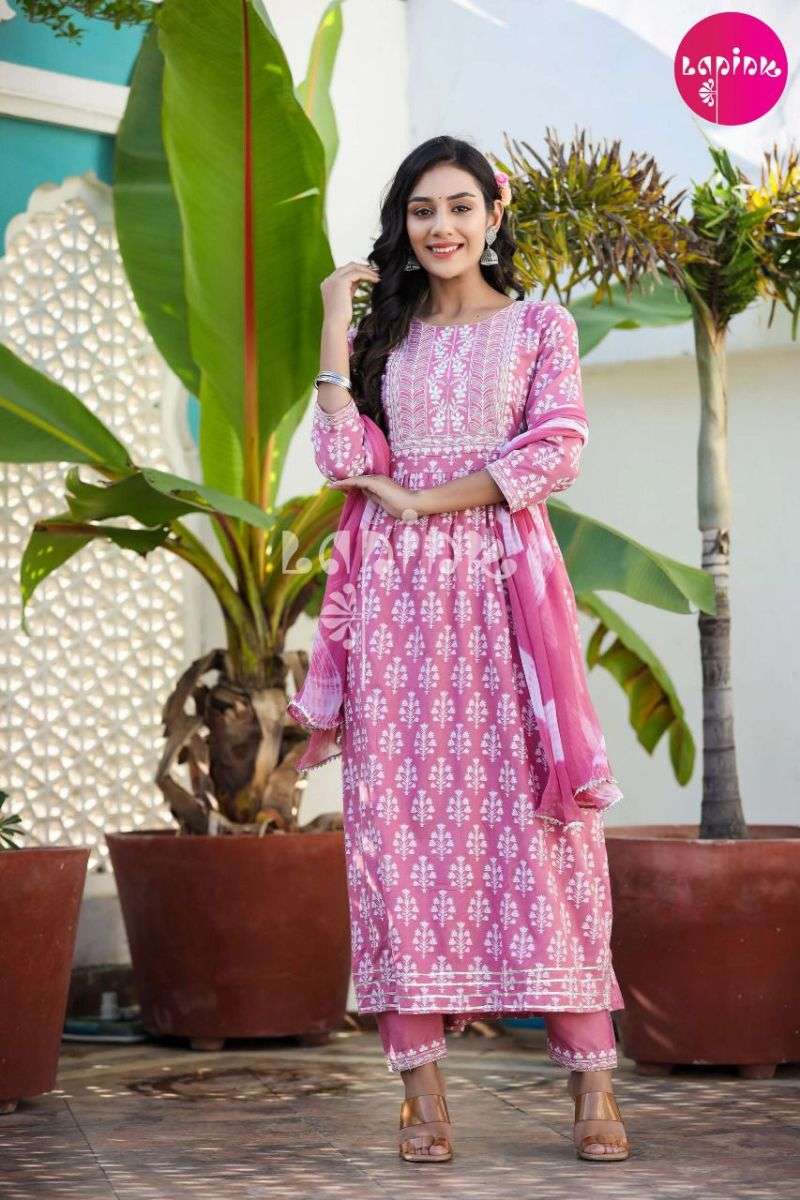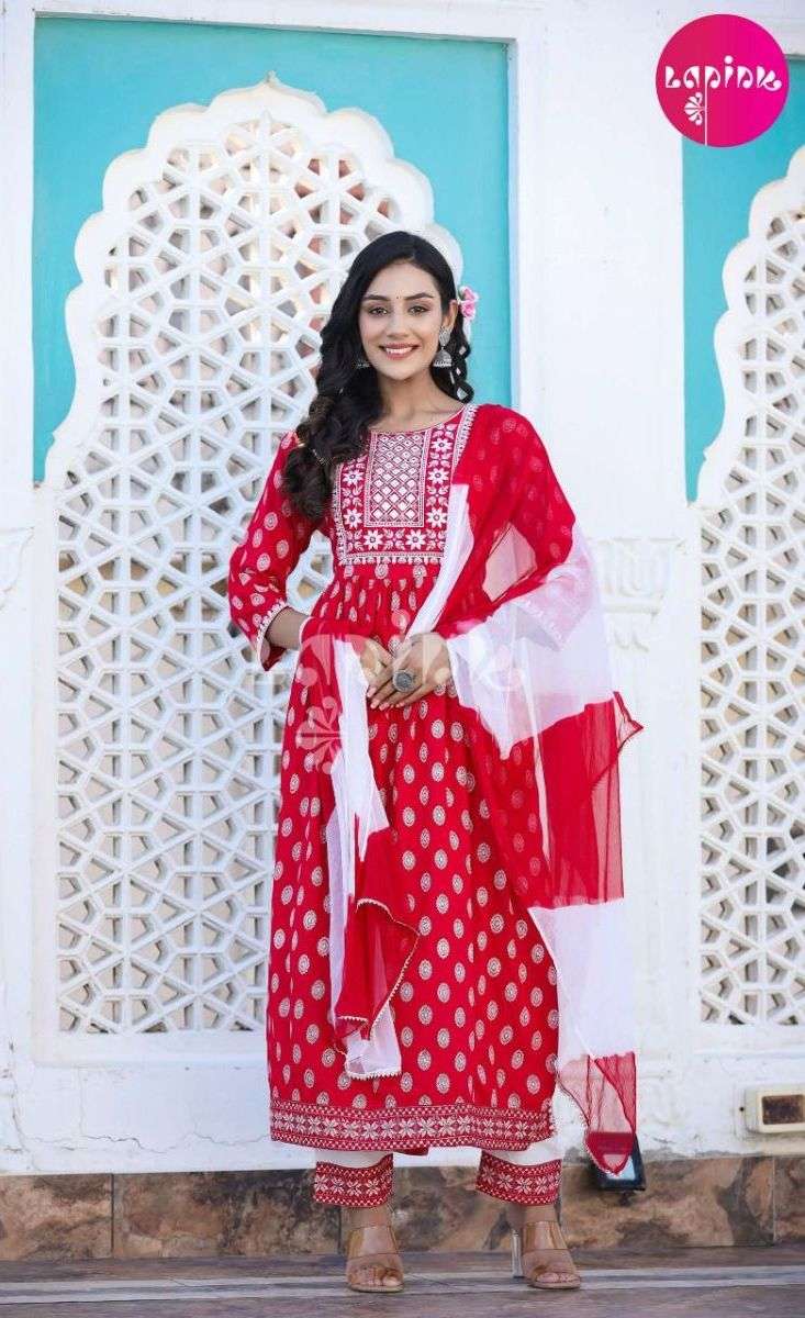 NYRA VOL-1 KURTI BY LAPINK DESIGNER WITH PRINTED RAYON KURTI WITH BOTTOM AND DUPATTA ARE AVAILABLE AT WHOLESALE PRICE