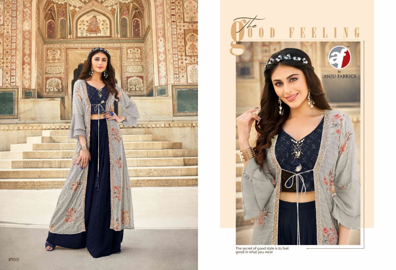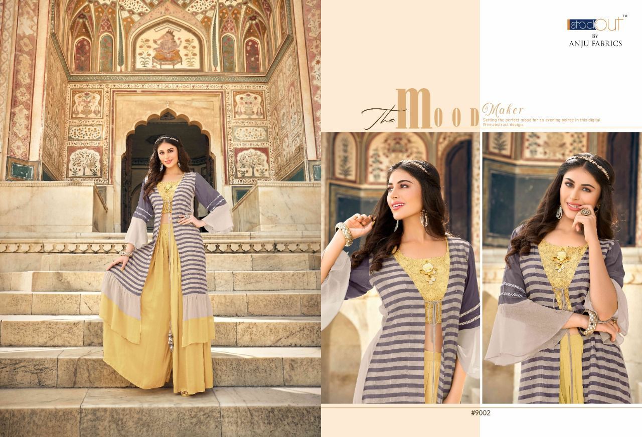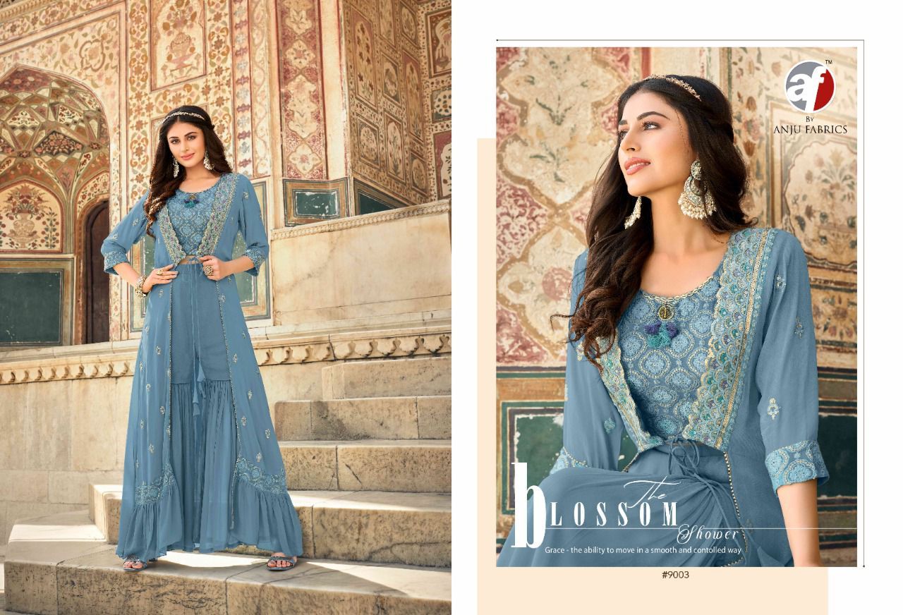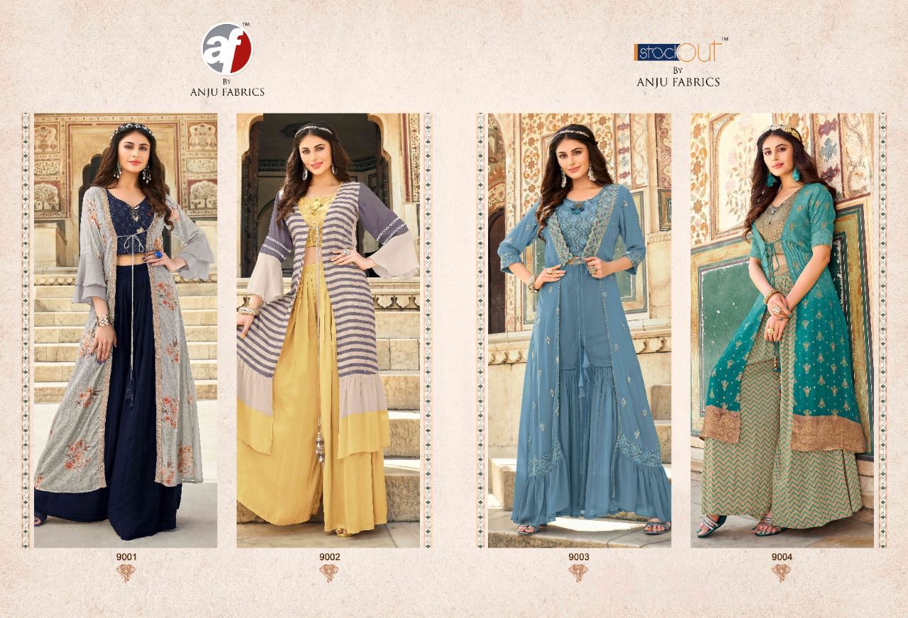 Ocassion By Anju Fabrics Designer With Work And Printed Georgette Party Wear Collections Are Available At Wholesale Price