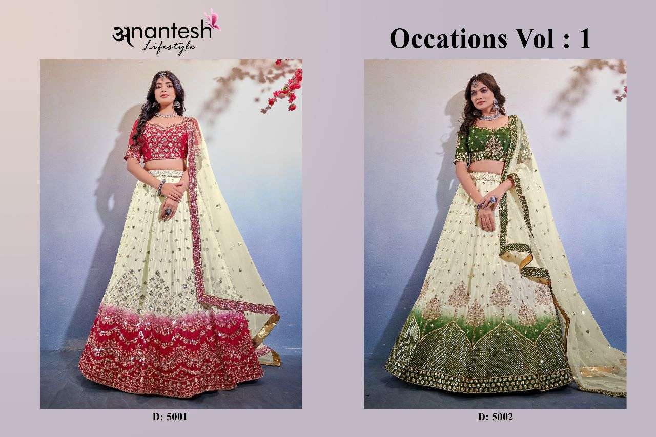OCASSIONS VOL-1 BY ANANTESH DESIGNER WITH WORK PARTY WEAR CHINON LEHENGAS ARE AVAILABLE AT WHOLESALE PRICE