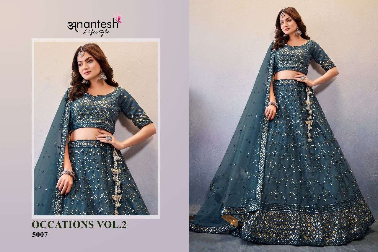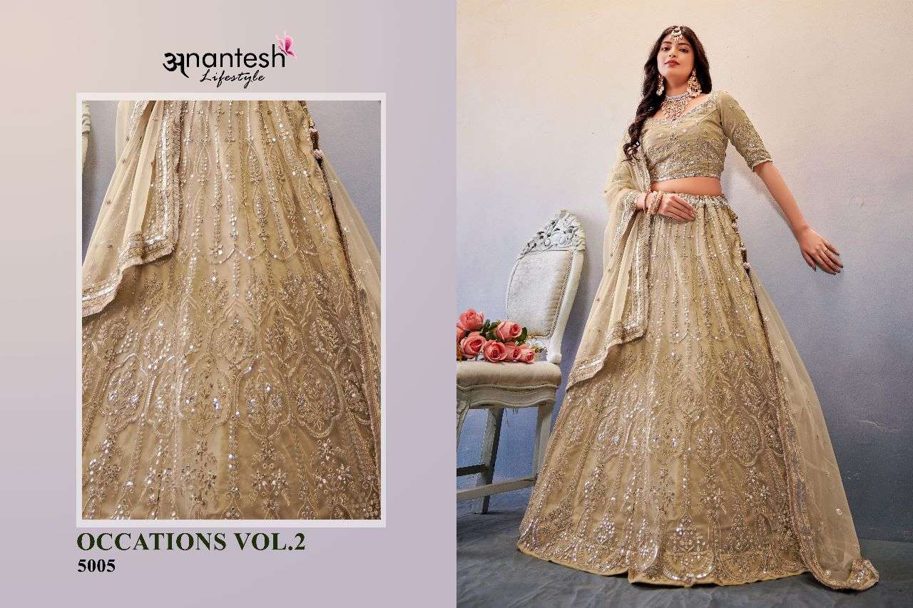 OCCASIONS VOL-2 LEHENGA BY ANANTESH DESIGNER PARTY WEAR NET LEHENGAS ARE AVAILABLE AT WHOLESALE PRICE