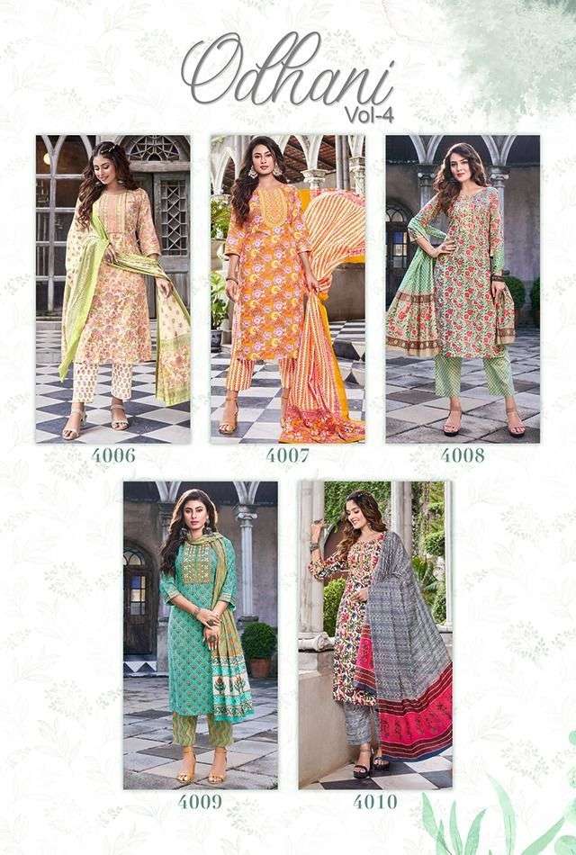 ODHANI VOL-4 KURTI BY DIYA TRENDS DESIGNER WITH PRINTED COTTON KURTI WITH PANT AND DUPATTA ARE AVAILABLE AT WHOLESALE PRICE