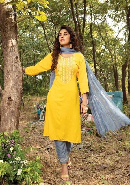 OGAAN KURTI BY KIANA DESIGNER WITH WORK RAYON KURTI WITH PANT AND DUPATTA ARE AVAILABLE AT WHOLESALE PRICE