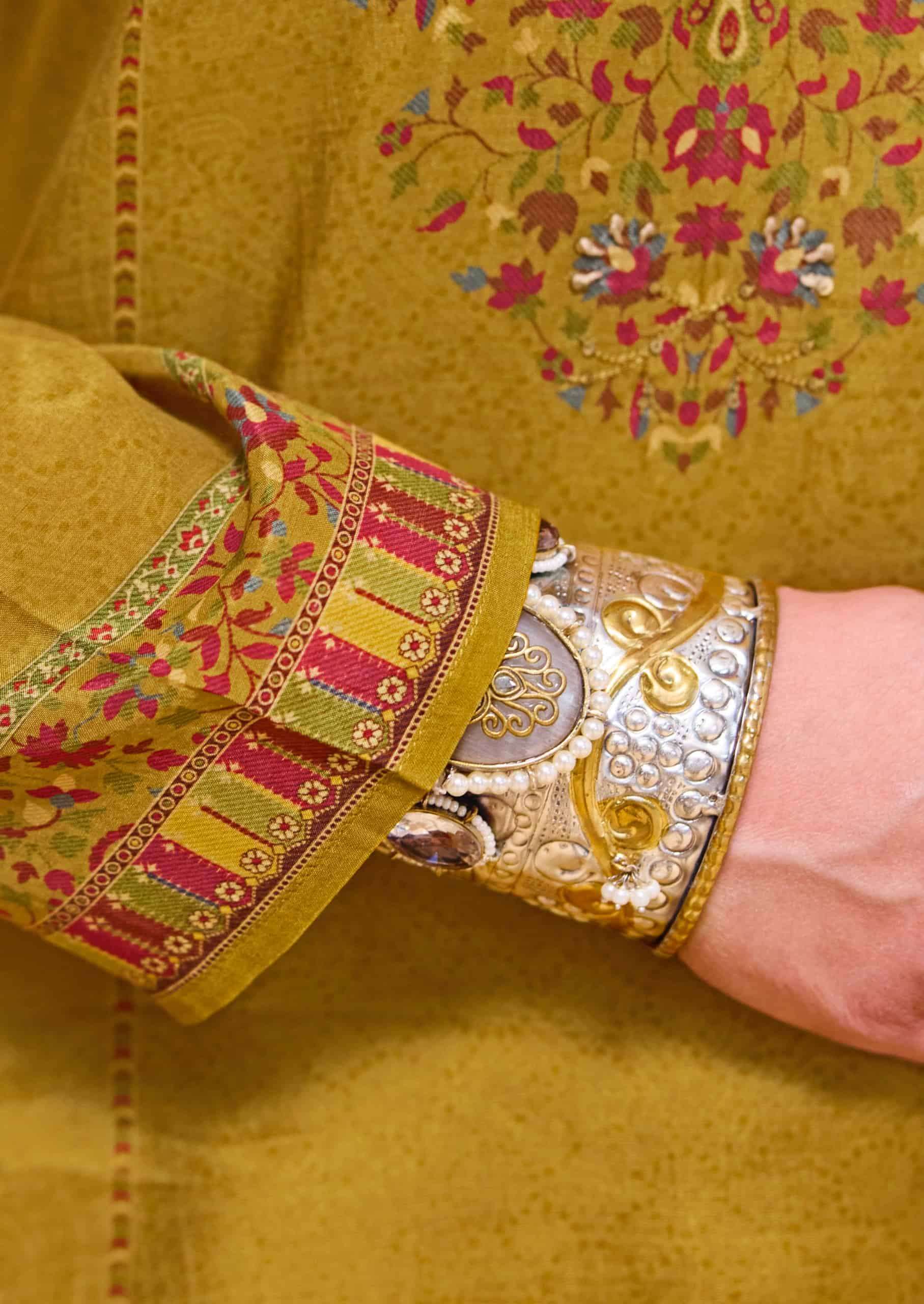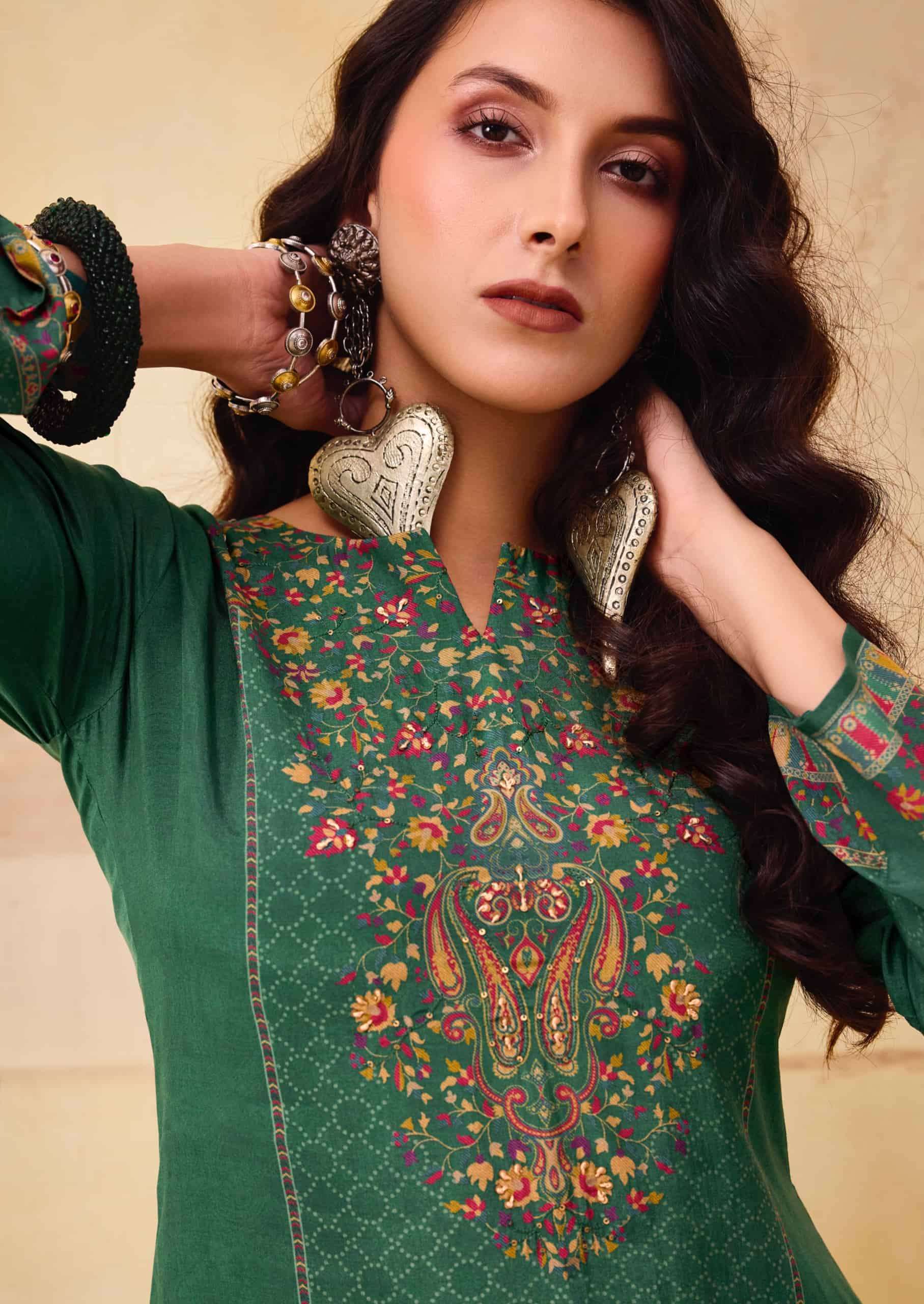TOP - Pure Bemberg Musline Silk Digital Print With Heavy Khatli Work And Fancy Work