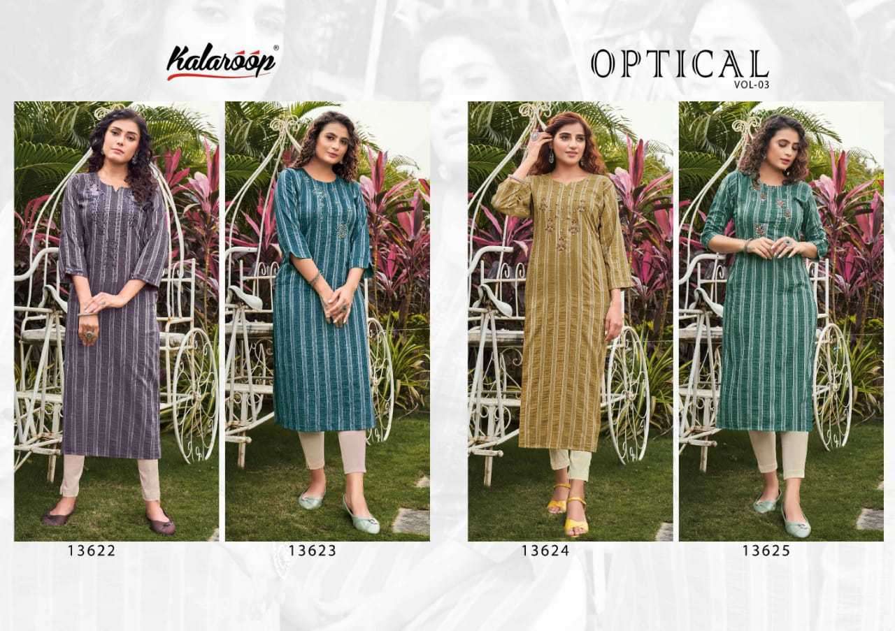 | Name: | kalaroop-OPTICAL VOL-3 SERIES 13622 TO 13625 KURTI BY KALAROOP |