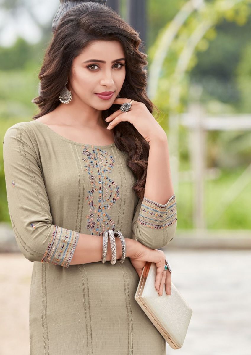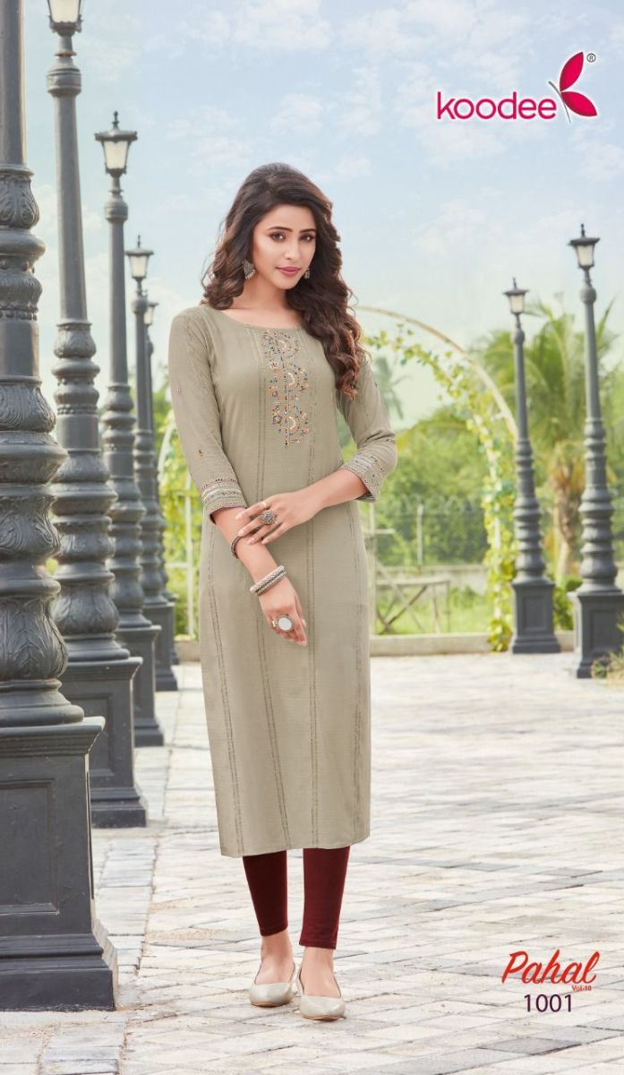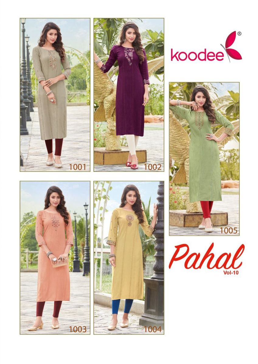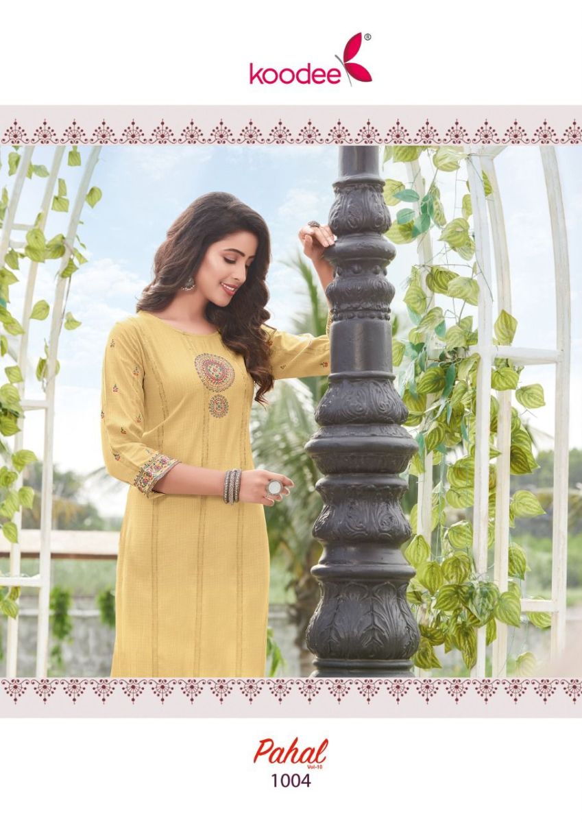 Pahal Vol-10 Kurti By Koodee Designer With Embroidery And Khatli Work Viscose Kurtis Are Available At Wholesale Price