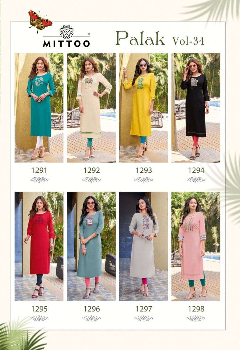 | Name: | mitto-PALAK VOL-34 SERIES 1291 TO 1298 KURTI BY MITTO |