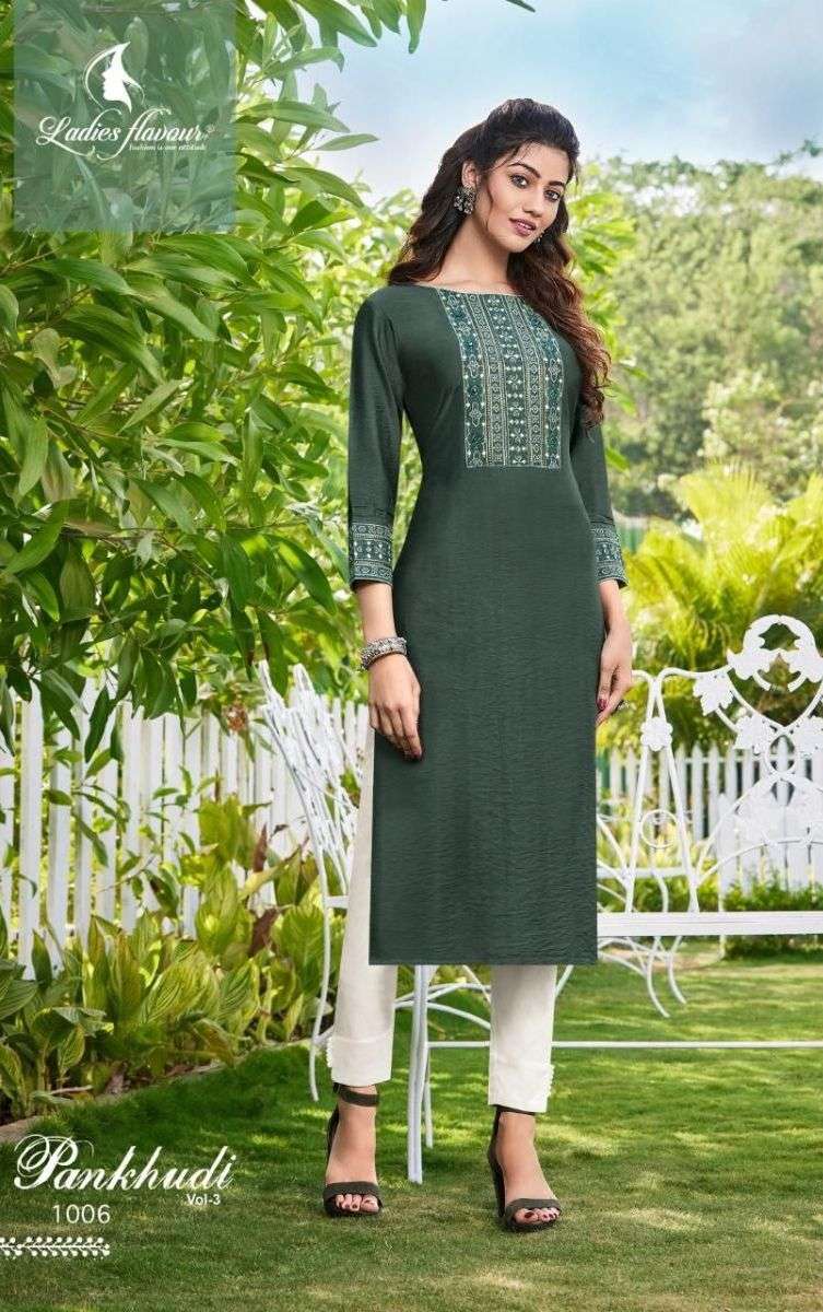 PANKHUDI VOL-3 BY LADIES FLAVOUR DESIGNER WITH EMBROIDERY WORK VISCOSE KURTIS ARE AVAILABLE AT WHOLESALE PRICE