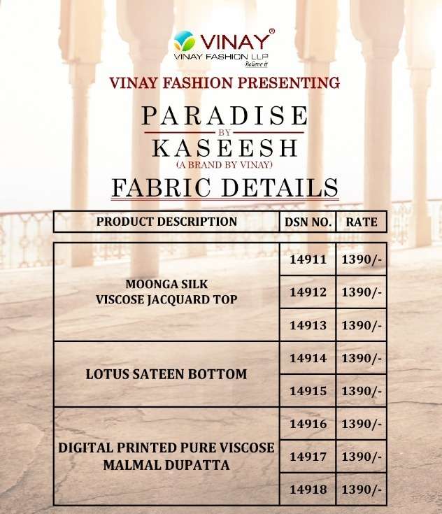 PARADISE BY KASHEESH VINAY DESIGNER WITH WORK VISCOSE JACQUARD SUITS ARE AVAILABLE AT WHOLESALE PRICE