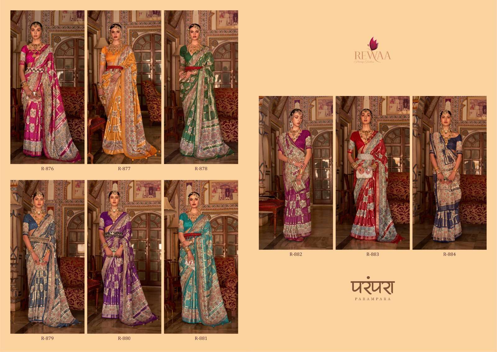 PARAMPARA SERIES 876 TO 884 SAREE BY REWAA DESIGNER SILK SAREES ARE AVAILABLE IN SINGLES AT WHOLESALE PRICE
