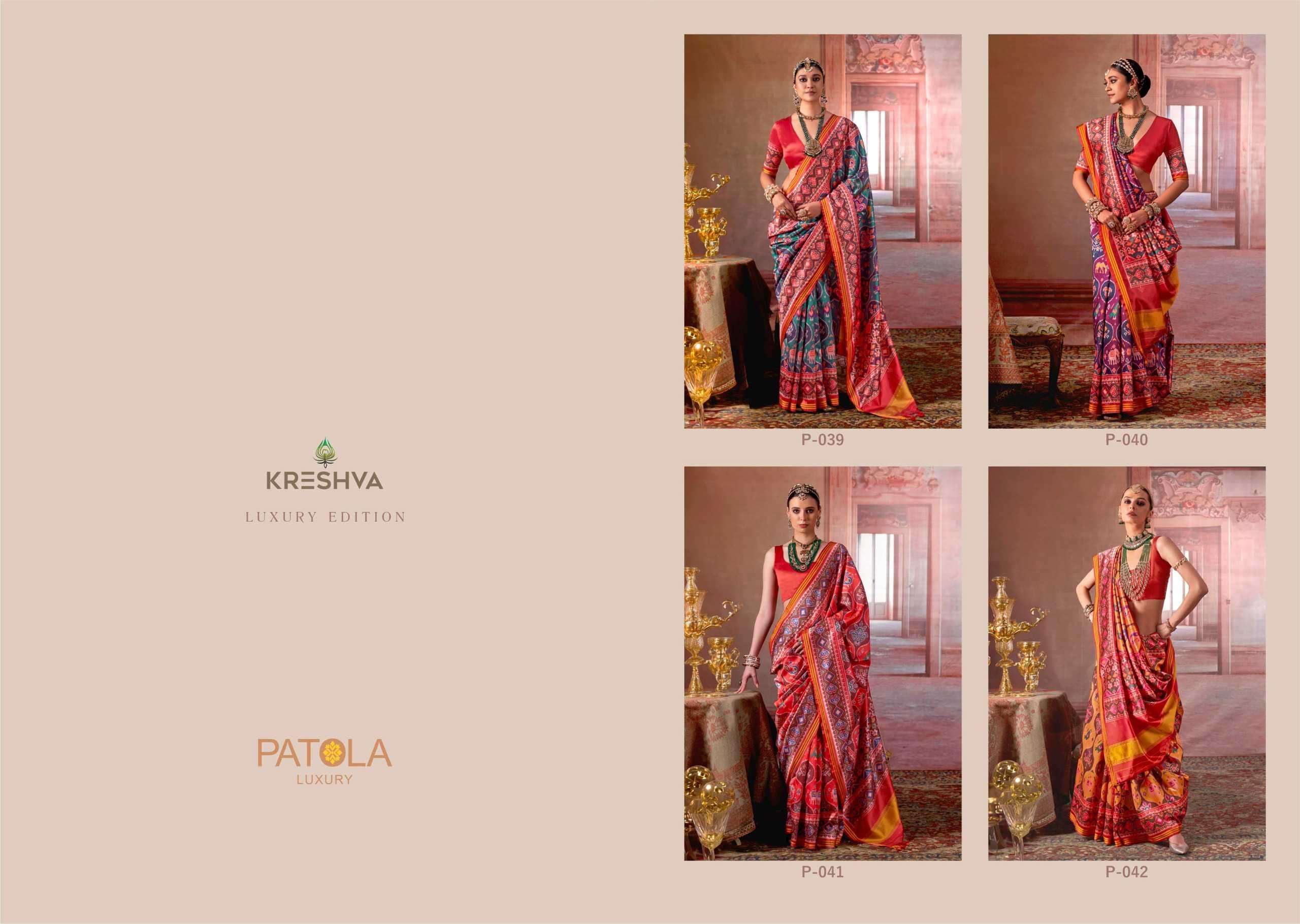 | Name: | kreshva-PATOLA LUXURY SERIES 039 TO 042 SAREE BY KRESHVA |