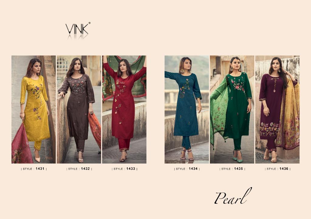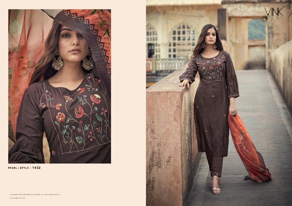 Pearl Kurti By Vink Designer With Digital Printed Organza Silk Kurti With Bottom And Dupatta Are Available At Wholesale Price