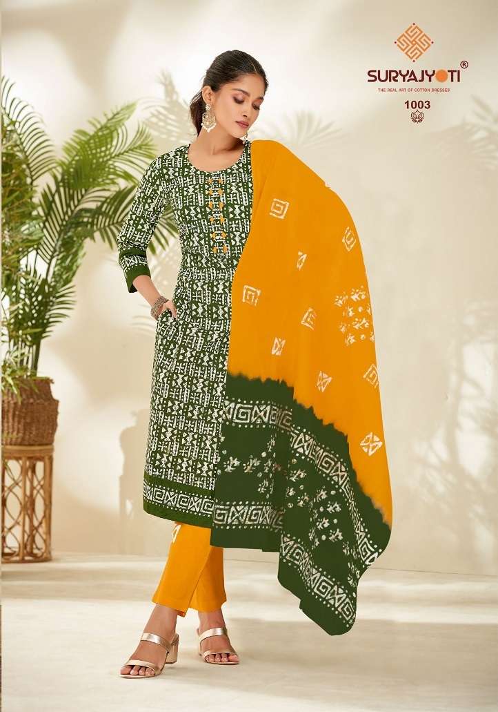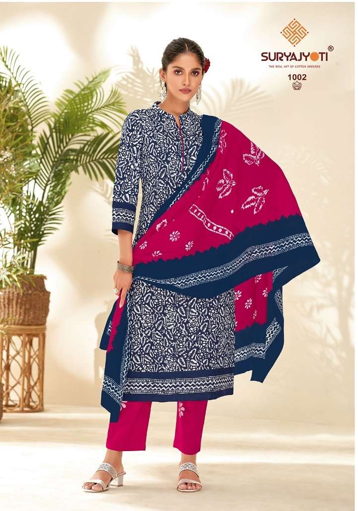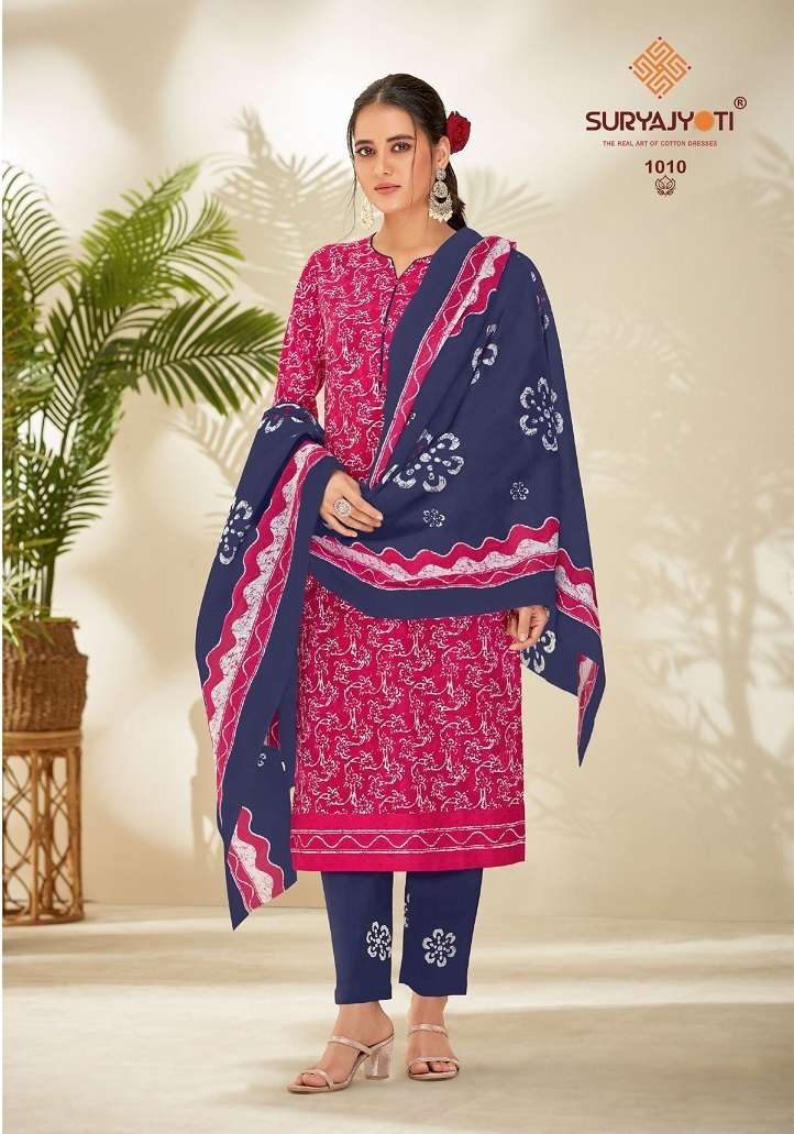 PEHNAVA VOL-1 BY SURYJYOTI DESIGNER WITH PRINTED CASUAL WEAR COTTON SUITS ARE AVAILABLE AT WHOLESALE PRICE