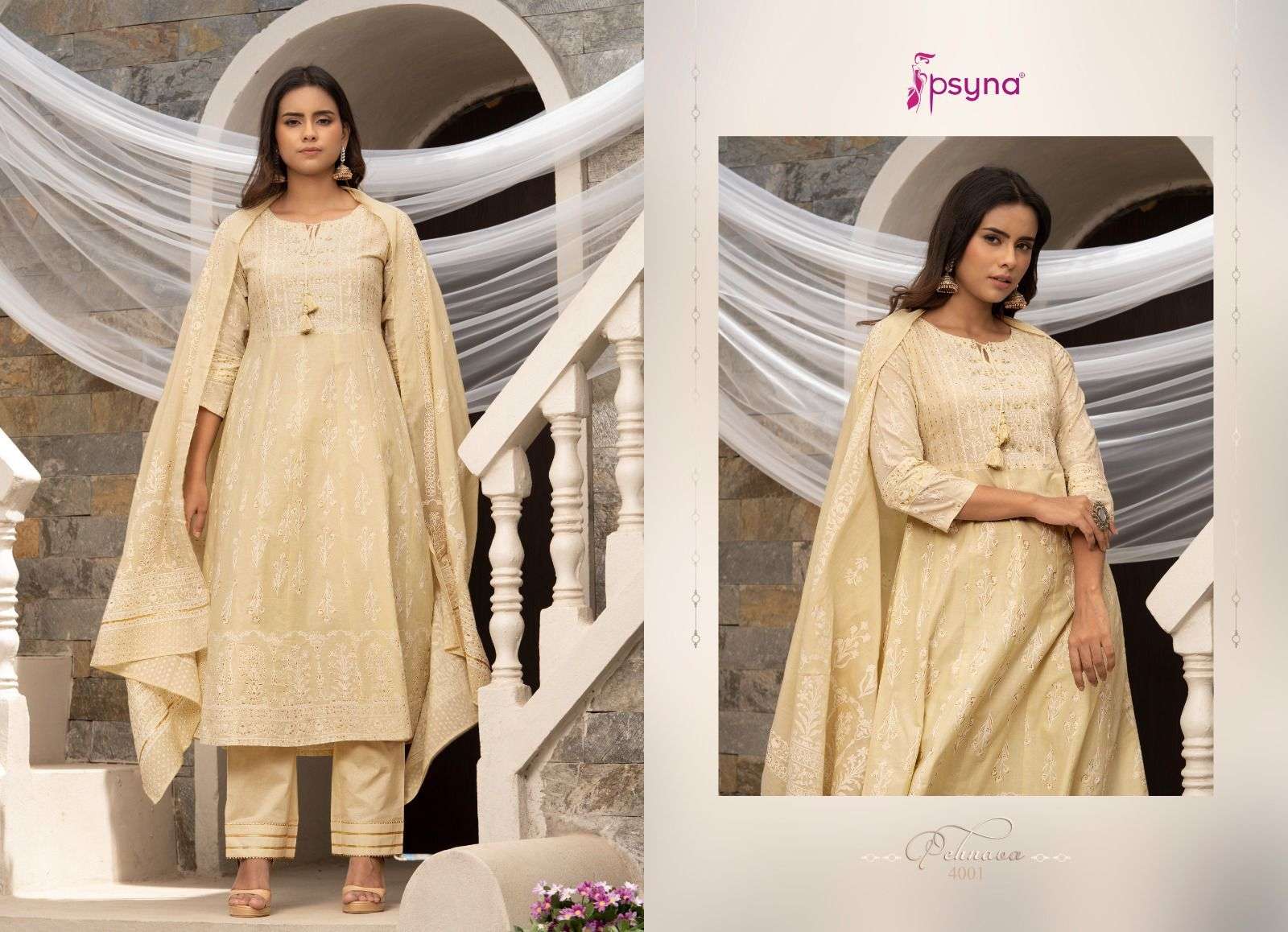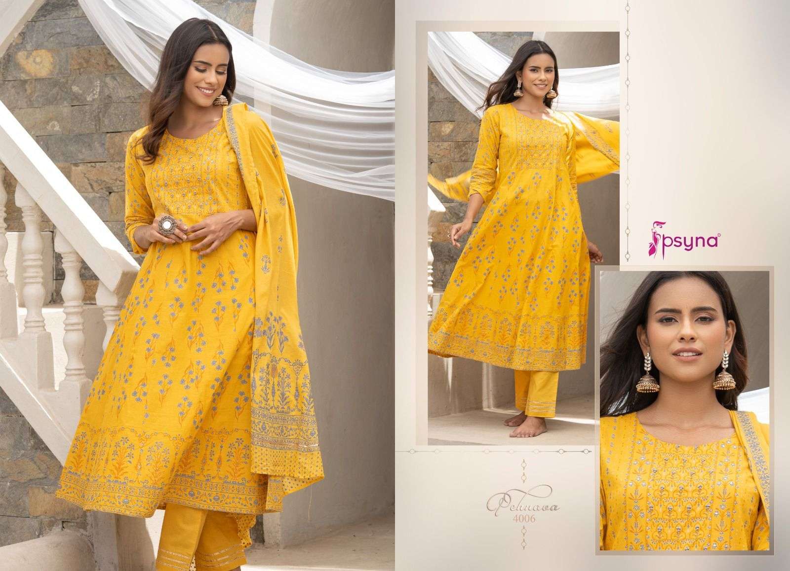 PEHNAVA VOL-4 KURTI BY PSYNA DESIGNER WITH PRINTED AND WORK COTTON CAMBRIC KURTI WITH PANT AND DUPATTA ARE AVAILABLE AT WHOLESALE PRICE