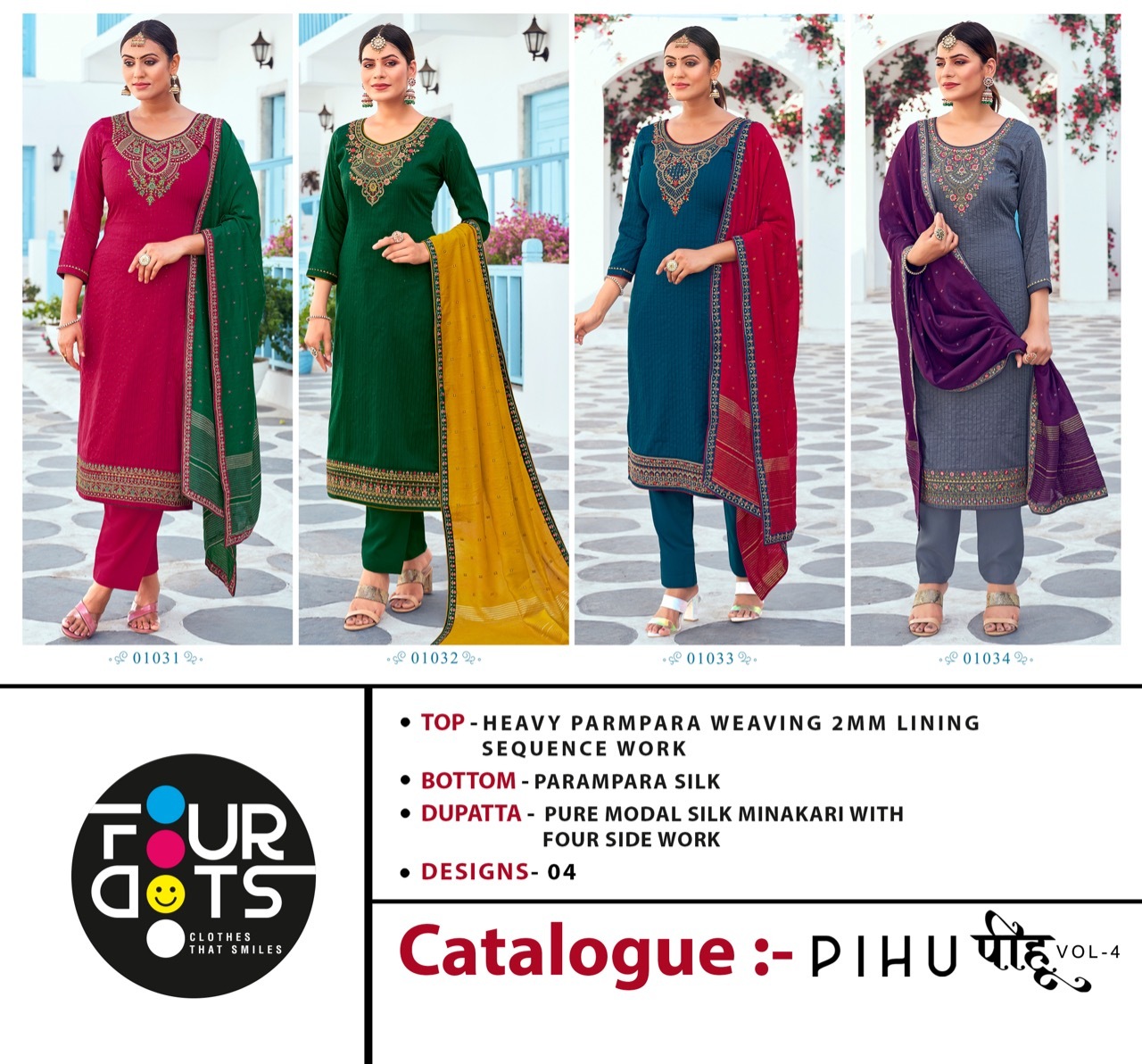 Pihu Vol-4 By Four Dots Designer With Work Parampara Silk Suits Are Available At Wholesale Price