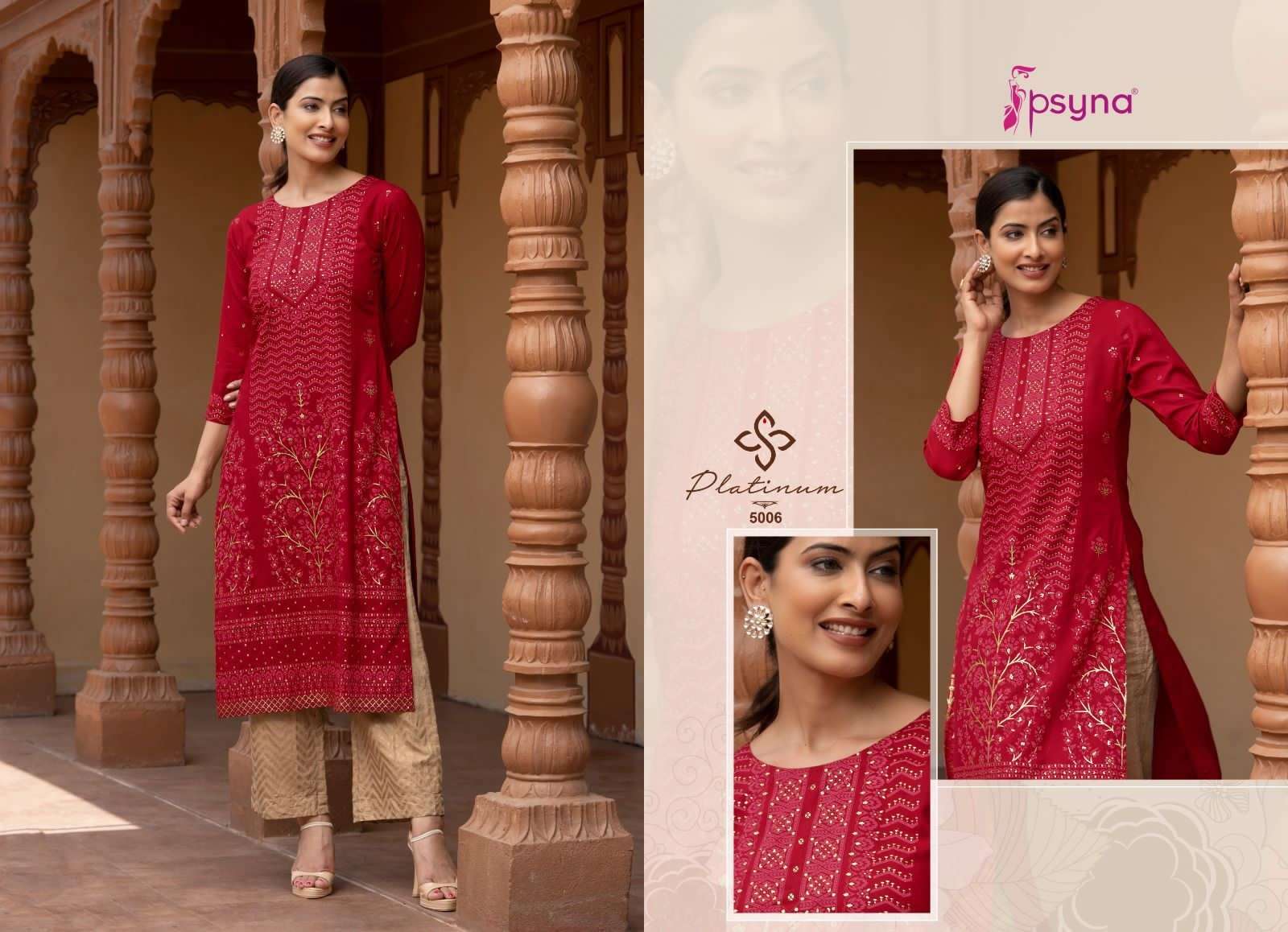 PLATINUM VOL-5 KURTI BY PSYNA DESIGNER WITH EMBROIDERY WORK RAYON KURTIS ARE AVAILABLE AT WHOLESALE PRICE