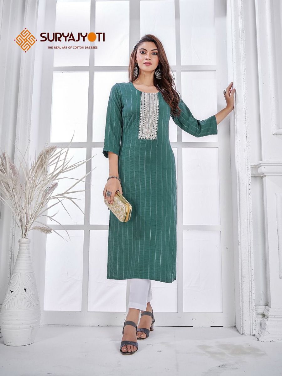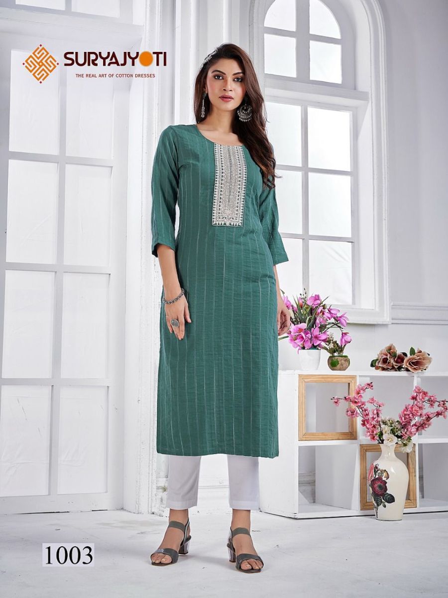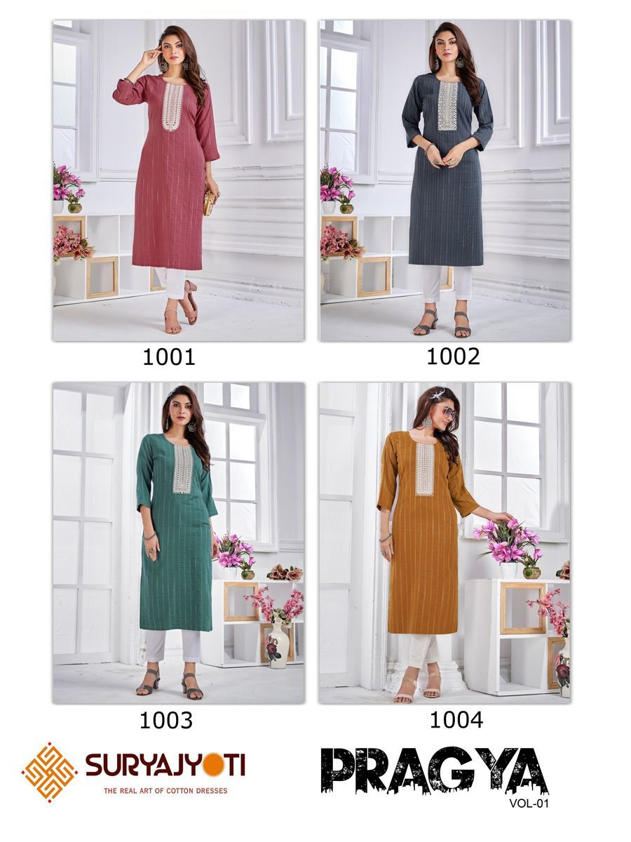 Pragya Vol-1 Kurti By Suryajyoti Designer With Work Naylon Viscose Kurtis Are Available At Wholesale Price
