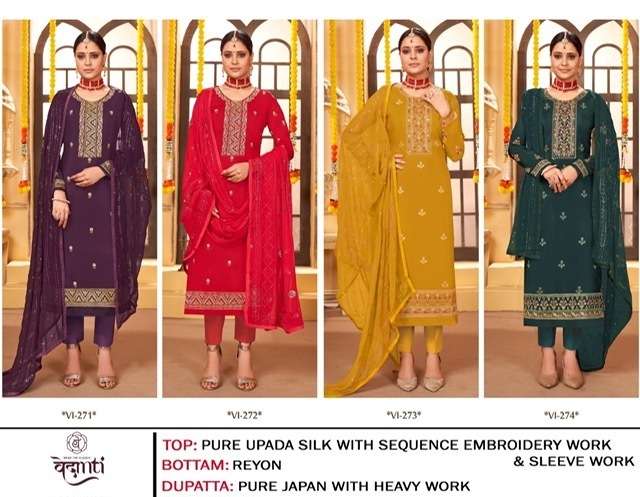 PRASANG BY VEDANTI DESIGNER WITH WORK UPADA SILK SUITS ARE AVAILABLE AT WHOLESALE PRICE