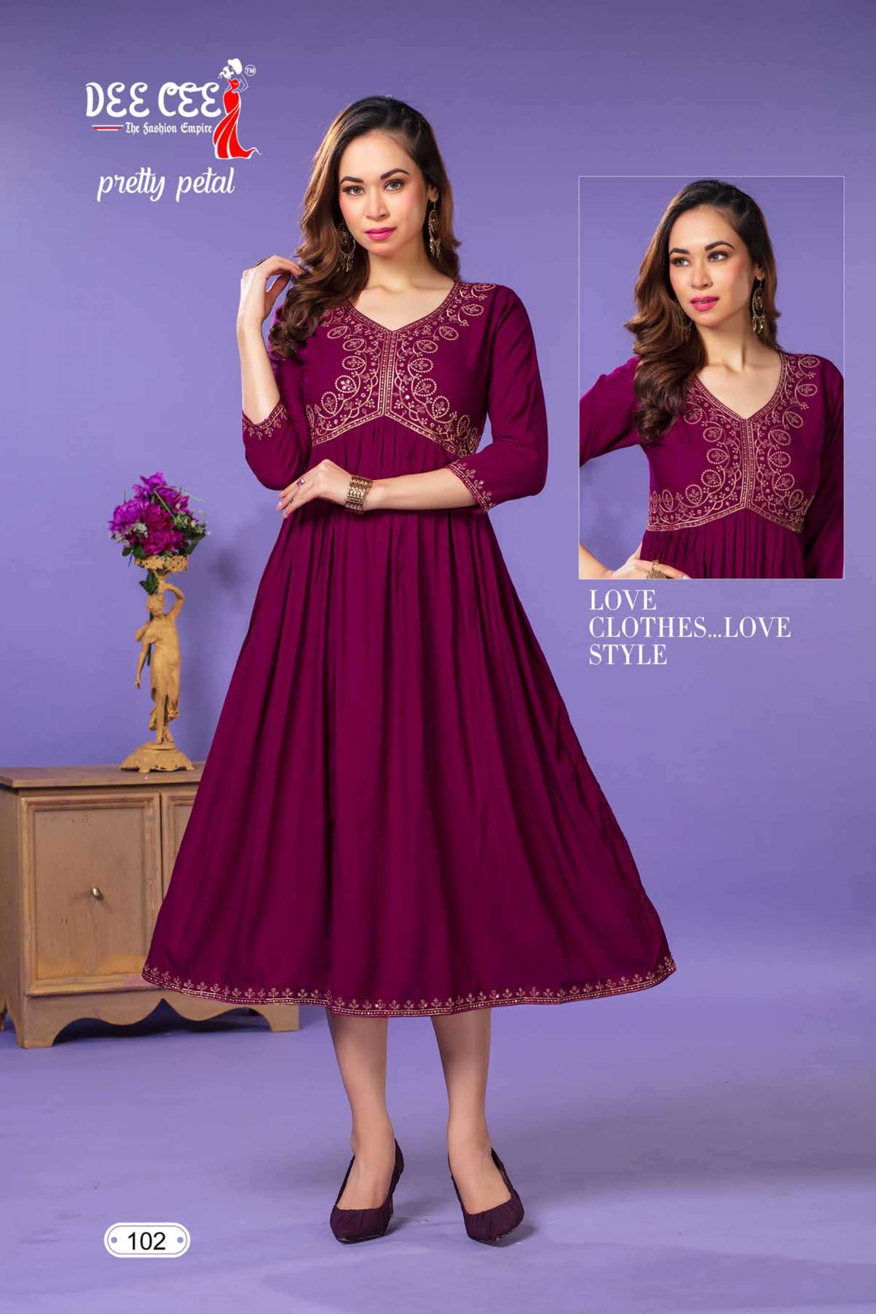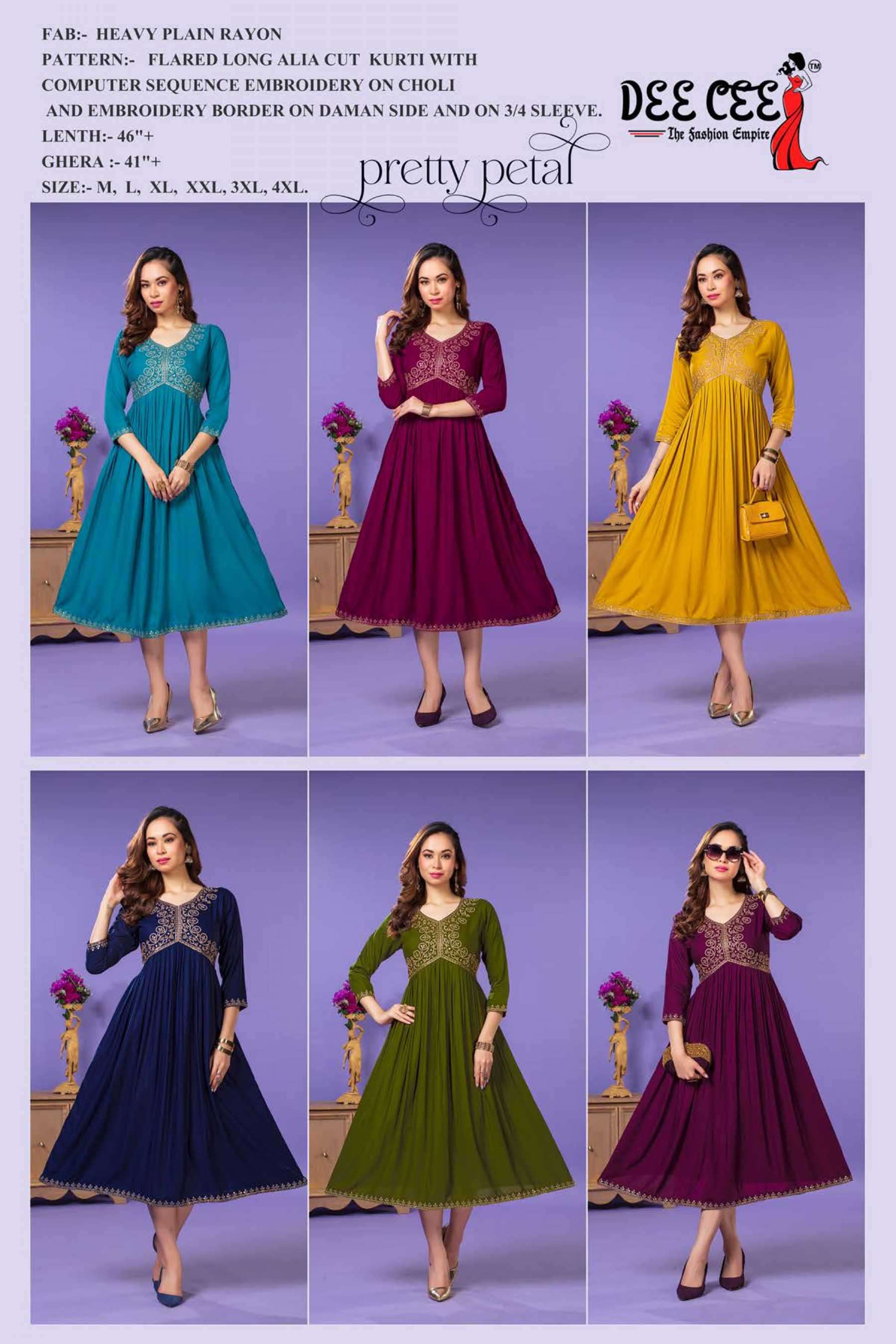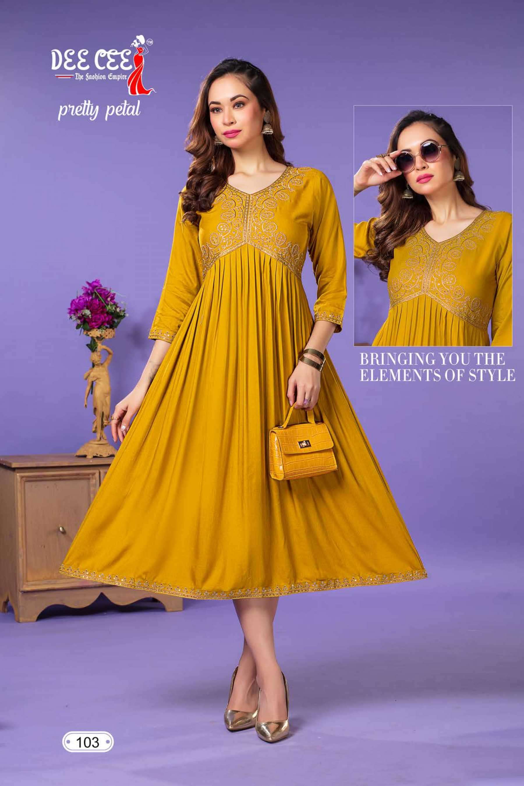 | Name: | dee cee-PREETY PETAL SERIES 101 TO 106 KURTI BY DEE CEE |