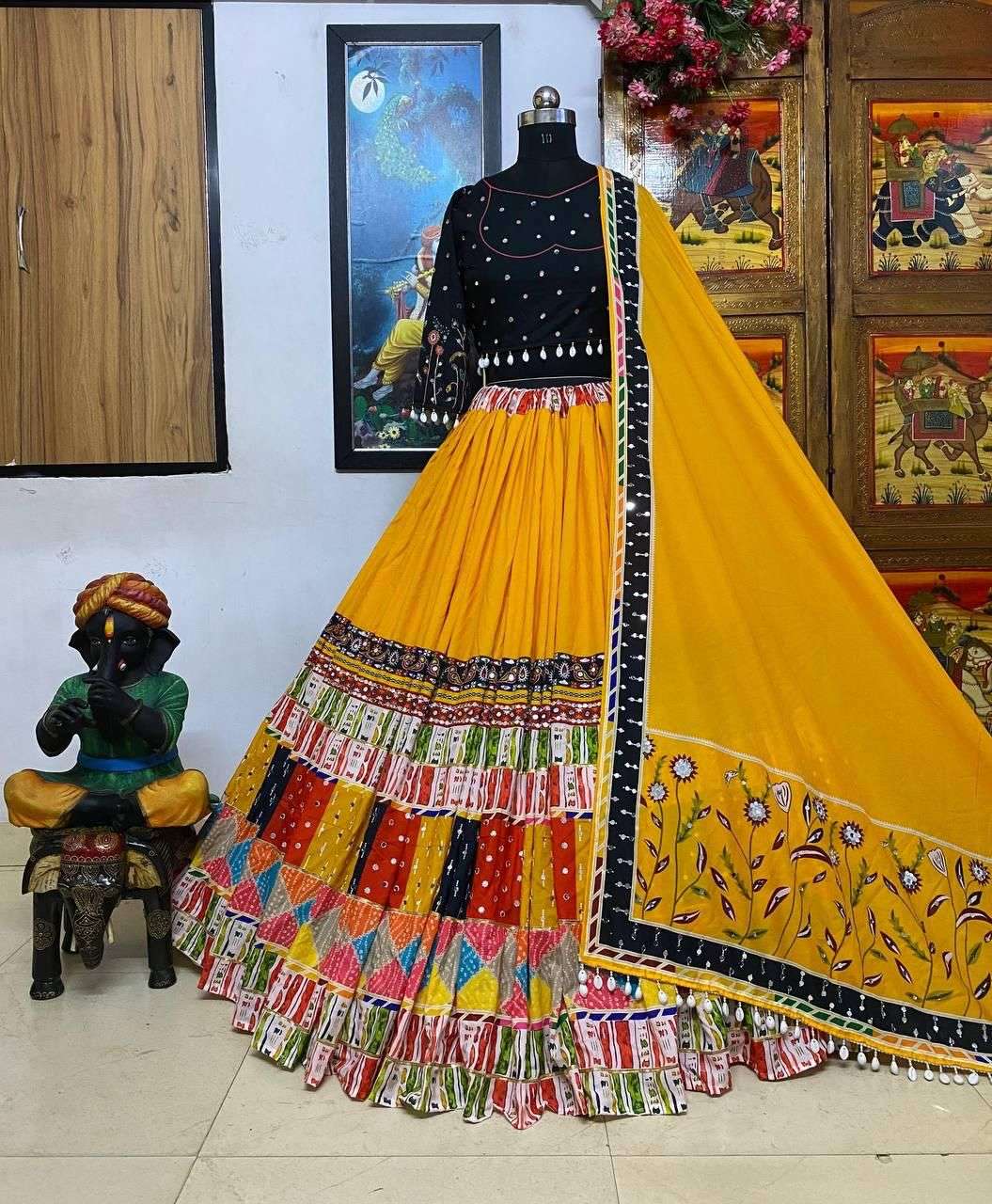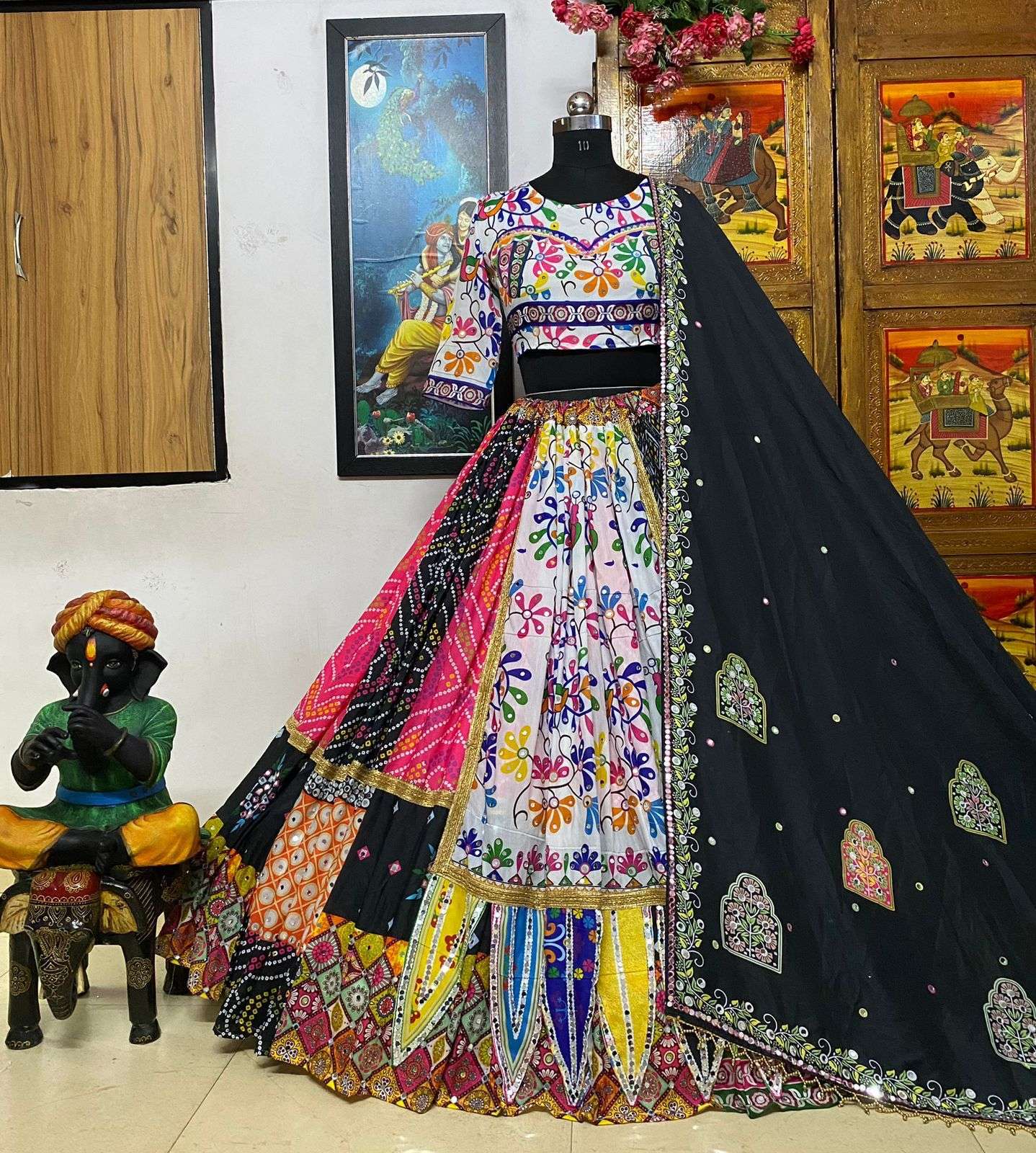 LEHENGA - HEAVY MUSLIN COTTON WITH DIGITAL PRINT (FULLY STITCH) & REAL MIRROR WORK