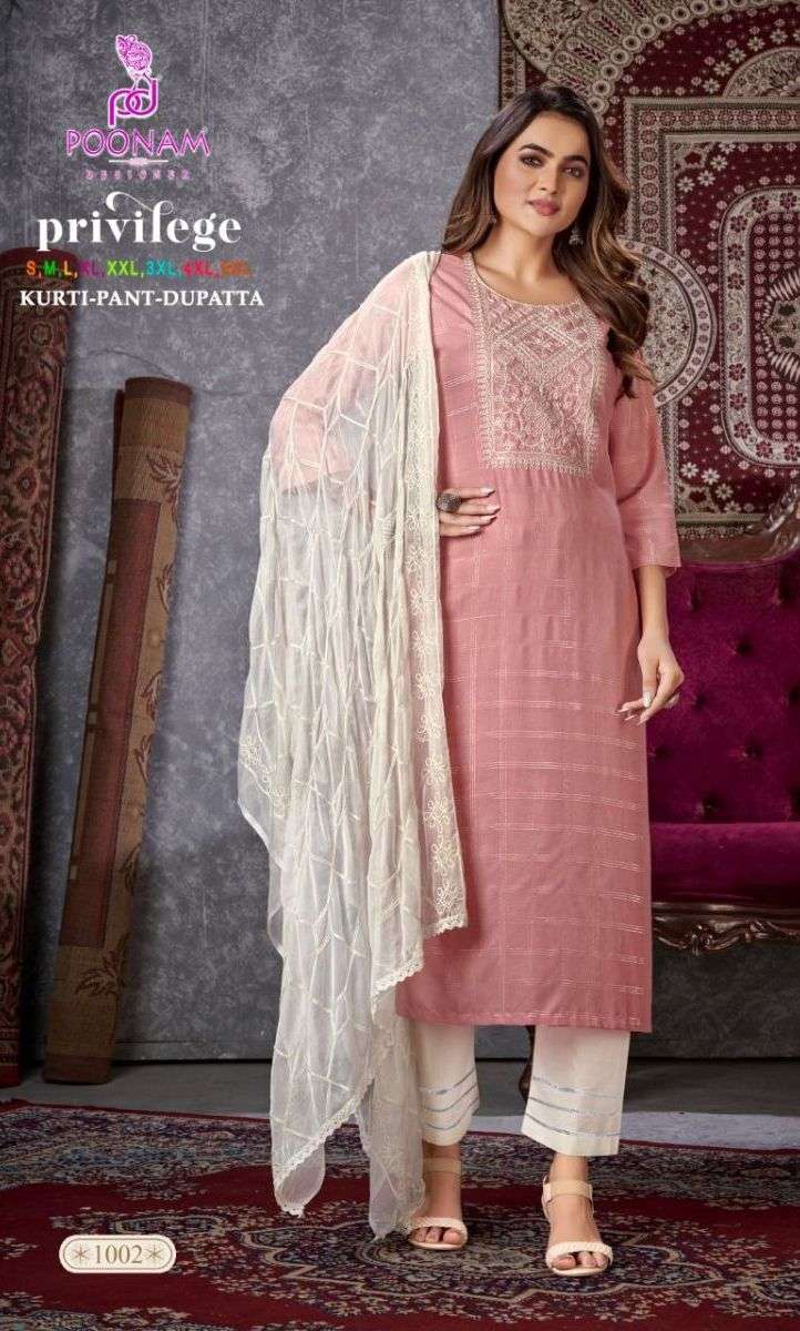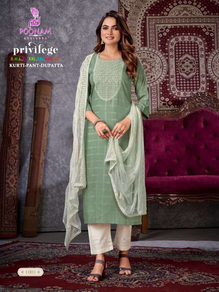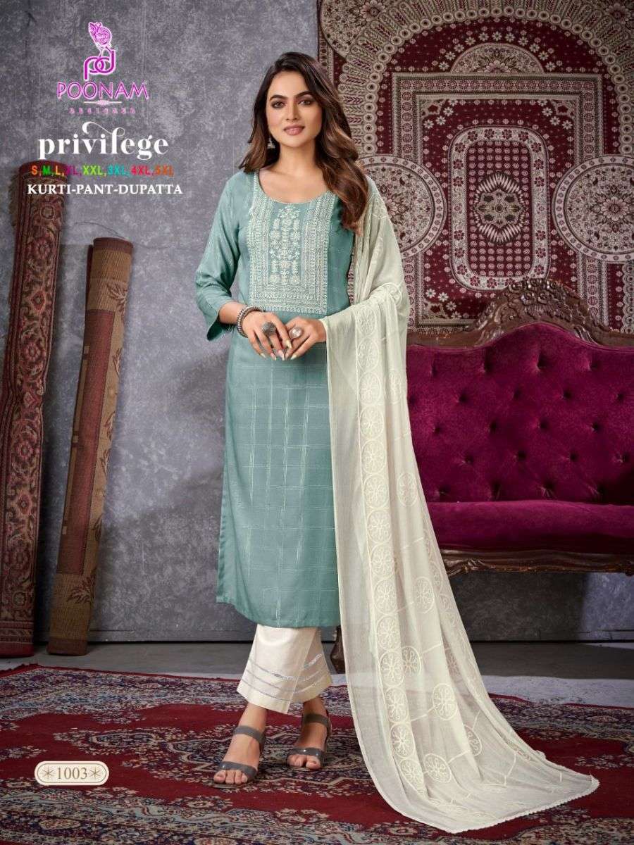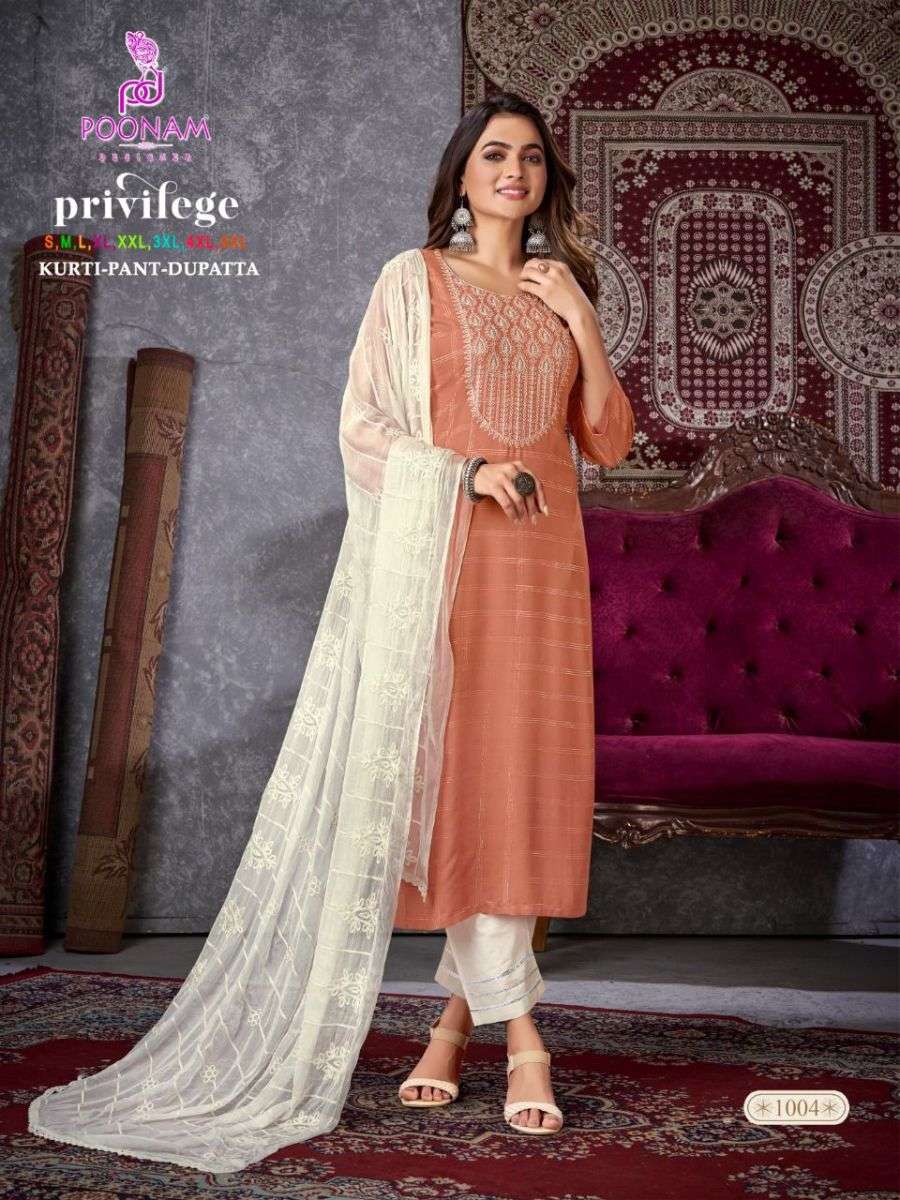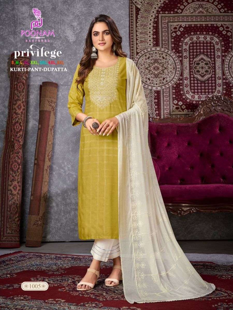 PRIVILEGE KURTI BY POONAM DESIGNER WITH CHECKS PRINT RAYON KURTI WITH PANT AND DUPATTA ARE AVAILABLE AT WHOLESALE PRICE