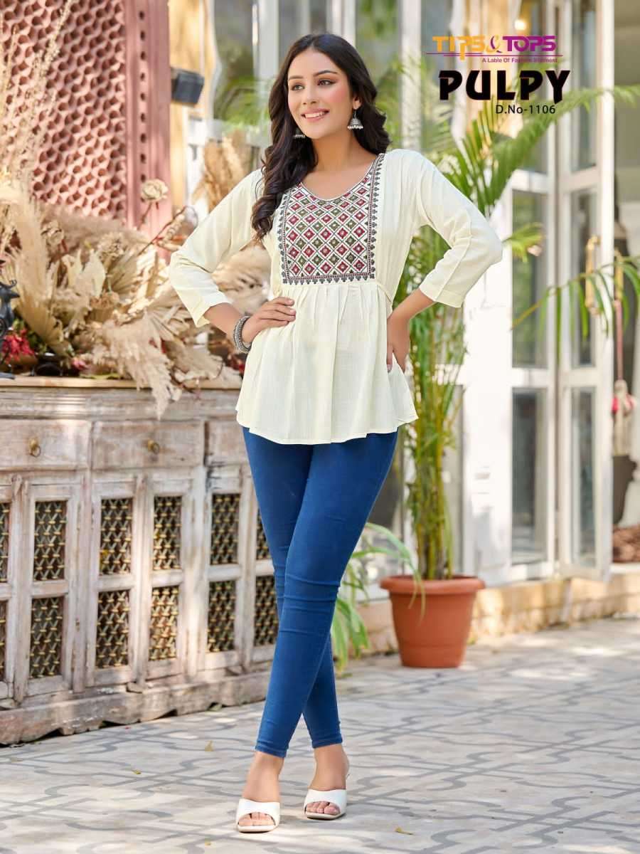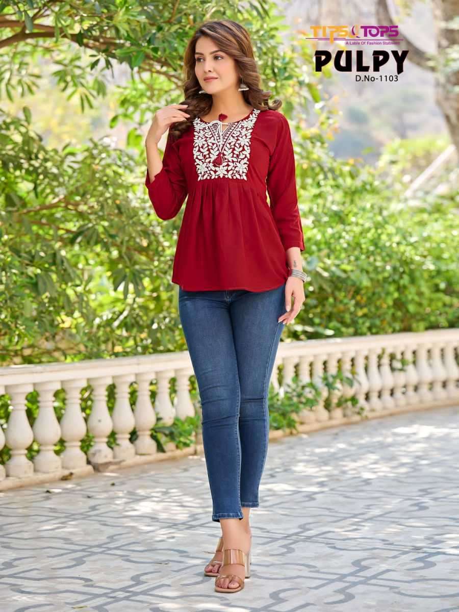 PULPY VOL-11 TOP BY TIPS & TOPS DESIGNER WITH EMBROIDERY WORK RAYON TOPS ARE AVAILABLE AT WHOLESALE PRICE