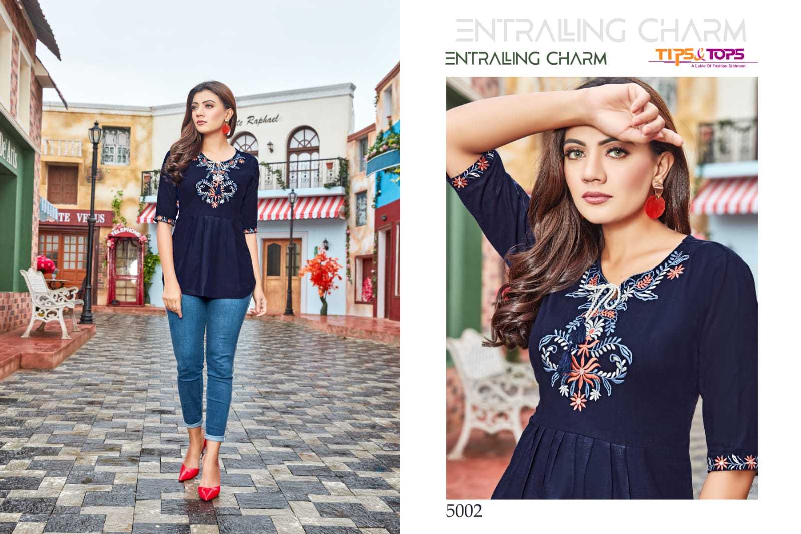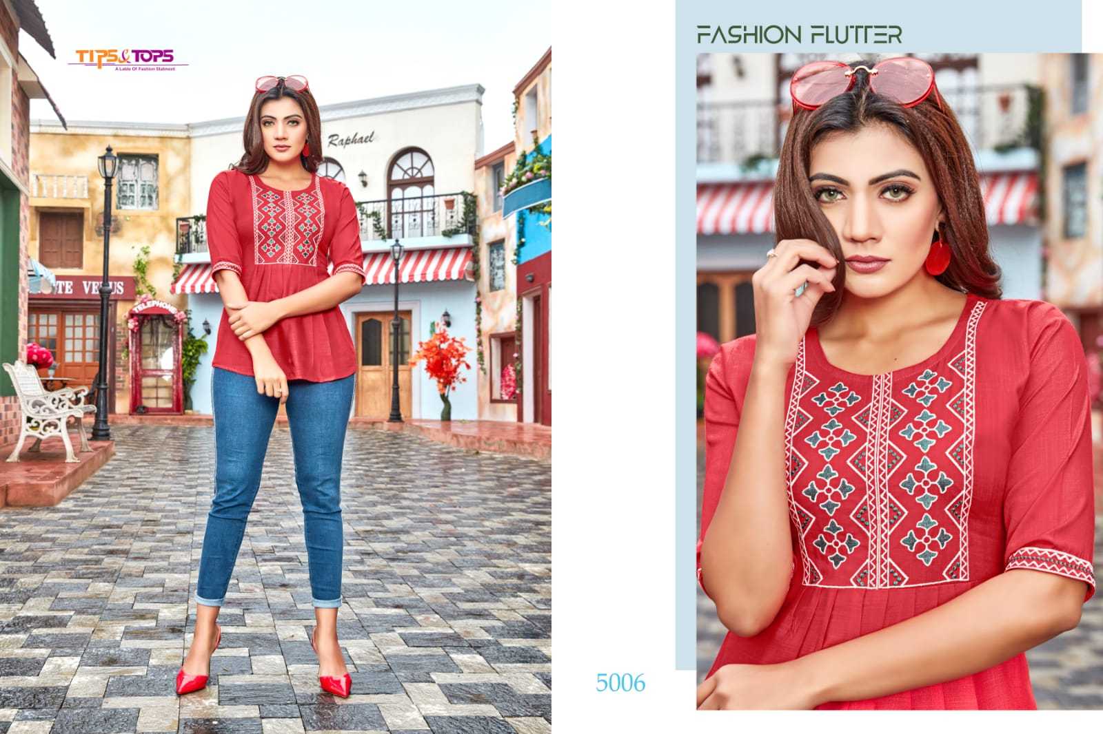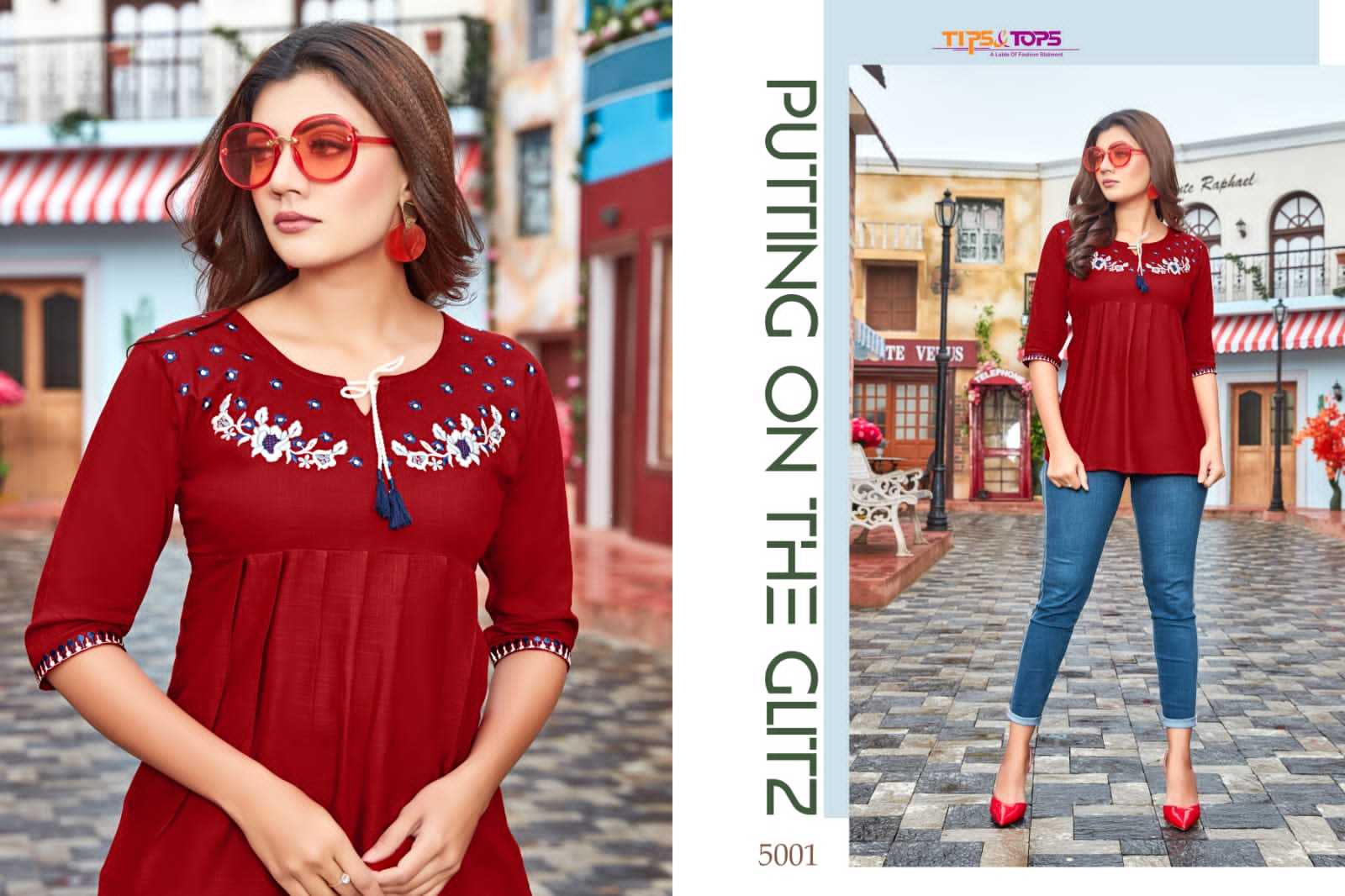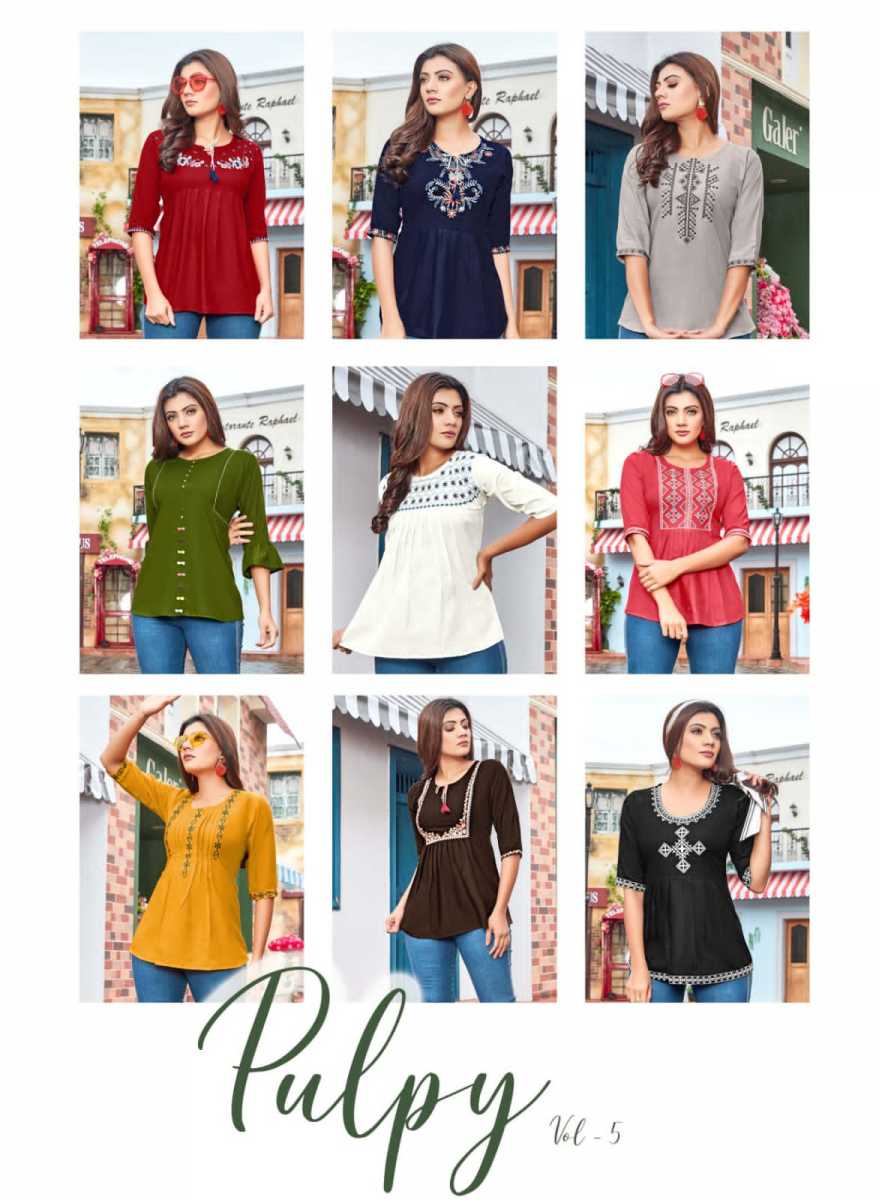 Pulpy Vol-5 Top By Tips & Tops Designer With Embroidery Work Sort Rayon Slub Tops Are Available At Wholesale Price