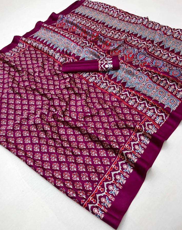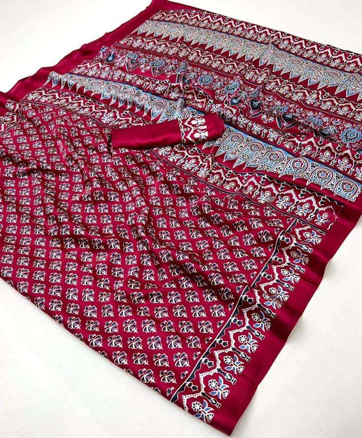 BLOUSE - Modal Satin Ajrakh Print Saree