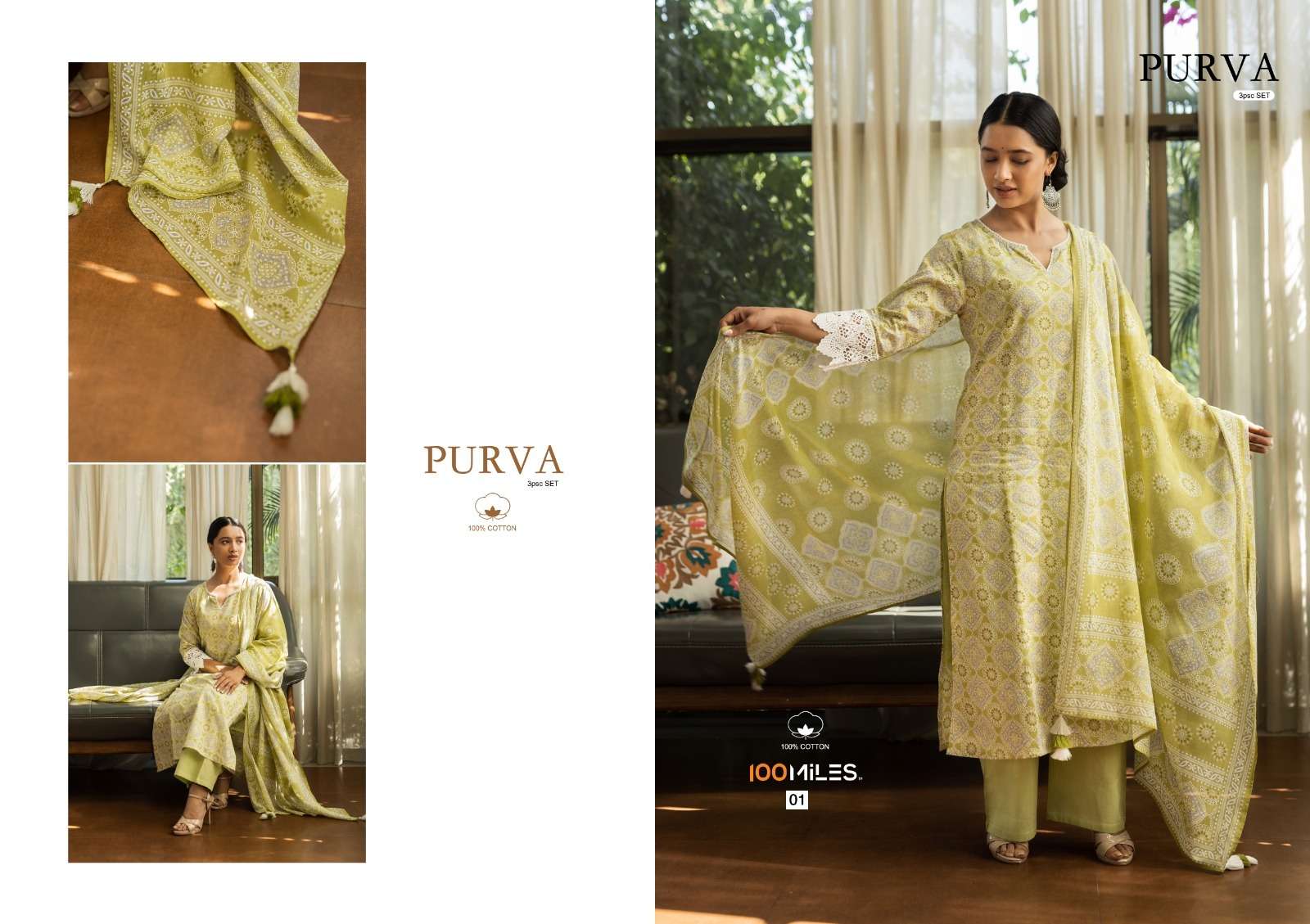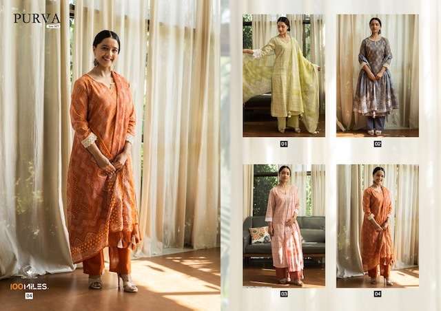 PURVA KURTI BY 100 MILES DESIGNER WITH PRINTED COTTON KURTI WITH PANT AND DUPATTA ARE AVAILABLE AT WHOLESALE PRICE