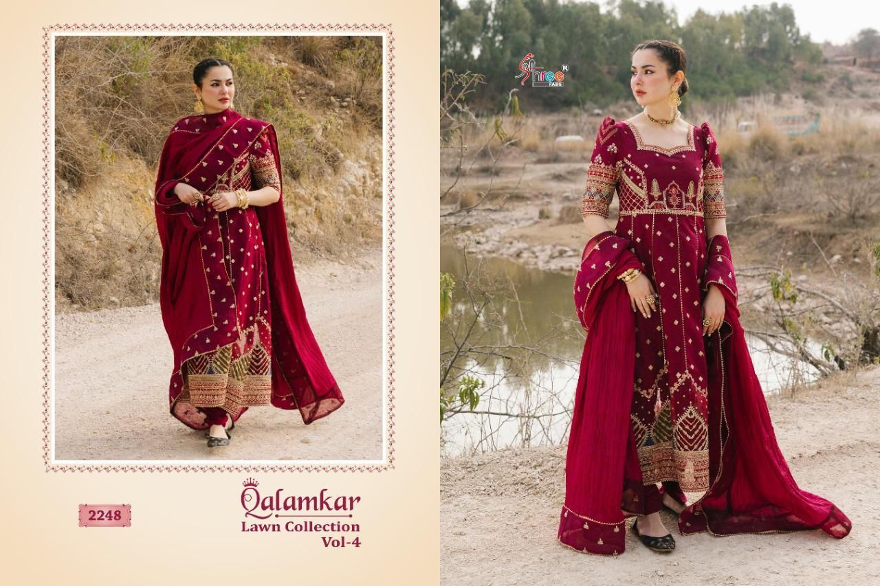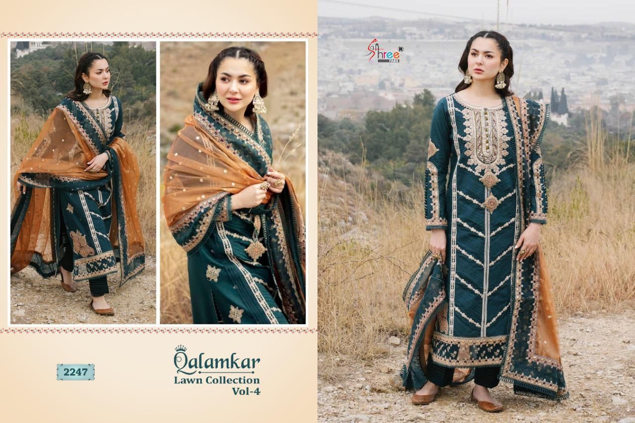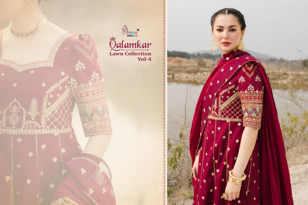 Qalamkar Lawn Collection Vol-4 By Shree Fab Designer With Work Lawn Cotton Pakistani Style Suits Are Available At Wholesale Price