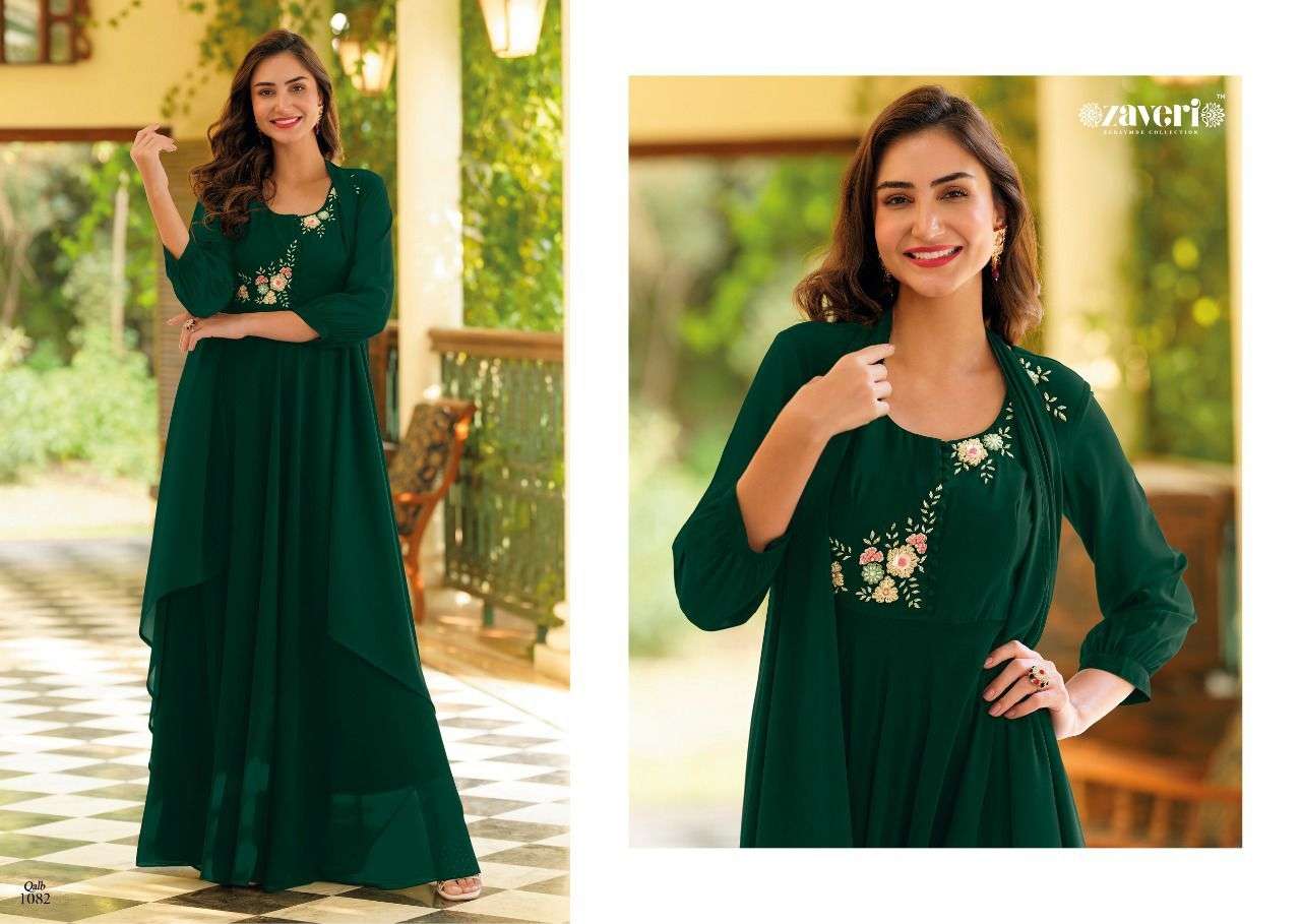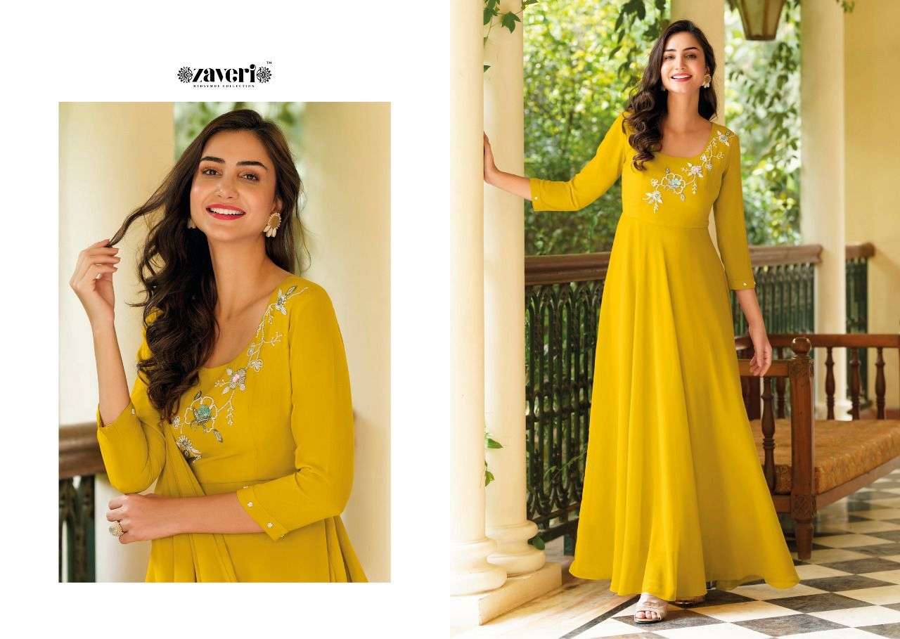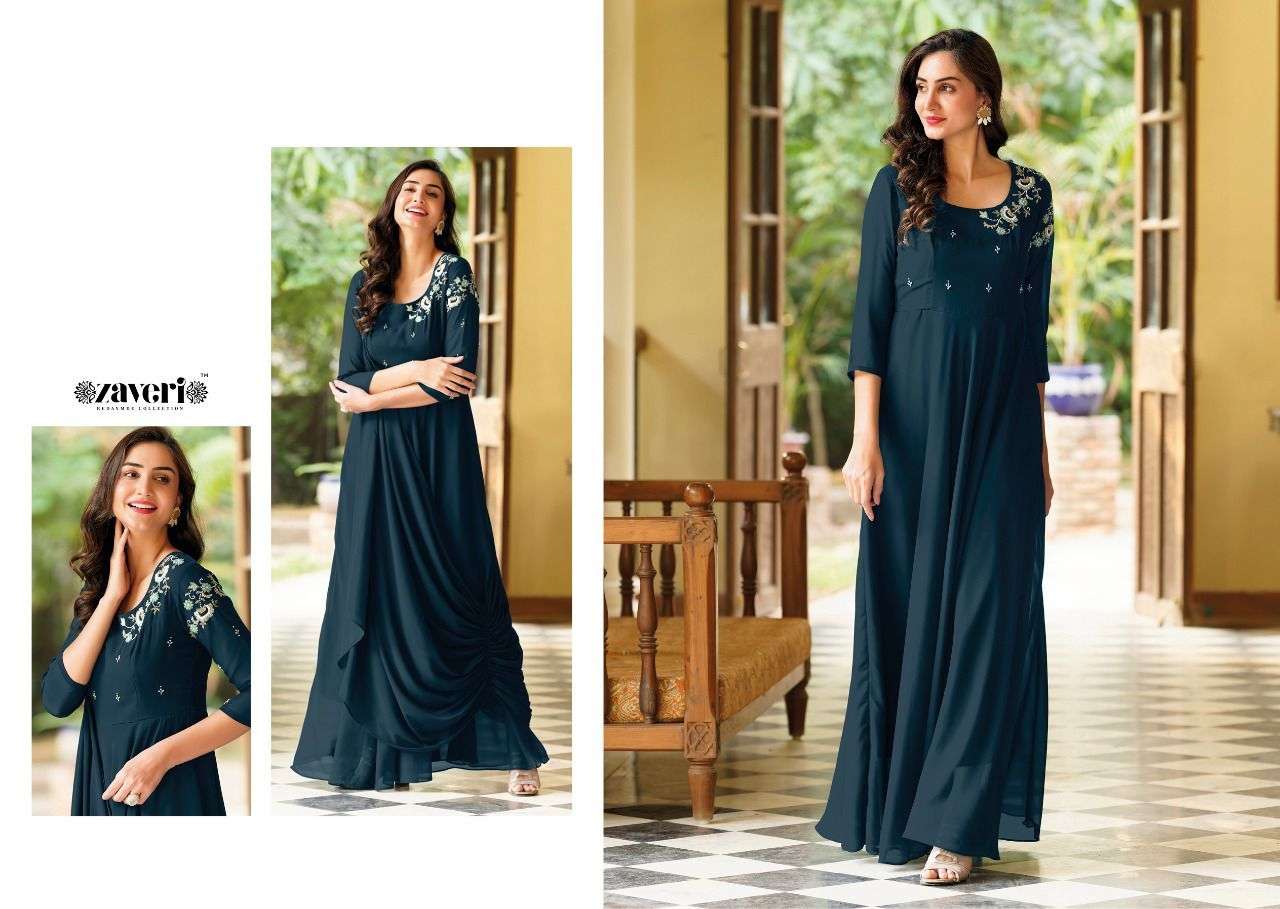QALB GOWN BY ZAVERI DESIGNER WITH WORK GEORGETTE GOWNS ARE AVAILABLE IN SINGLES AT WHOLESALE PRICE