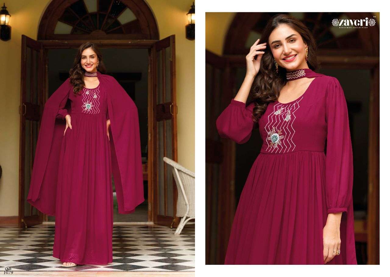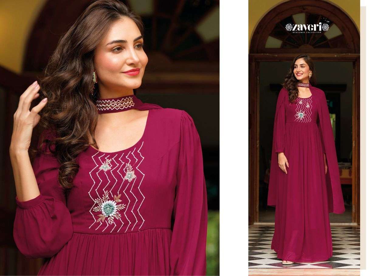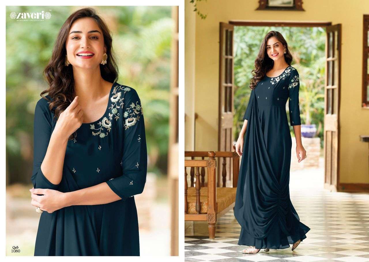 QALB GOWN BY ZAVERI DESIGNER WITH WORK GEORGETTE GOWNS ARE AVAILABLE IN SINGLES AT WHOLESALE PRICE