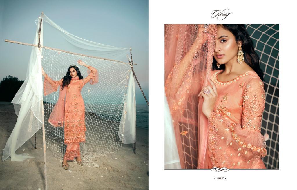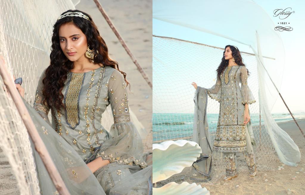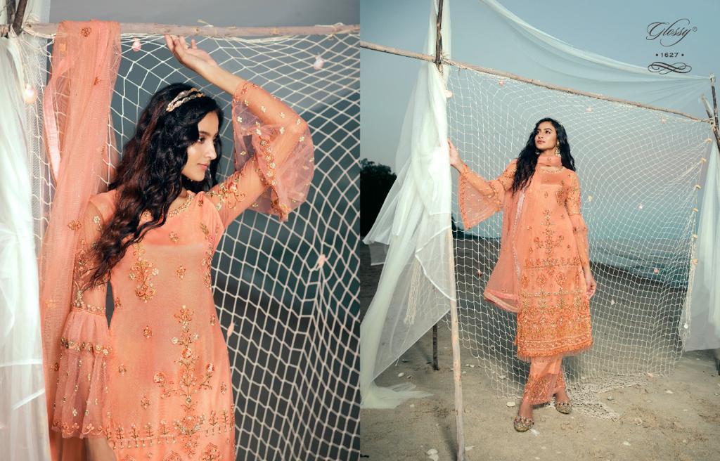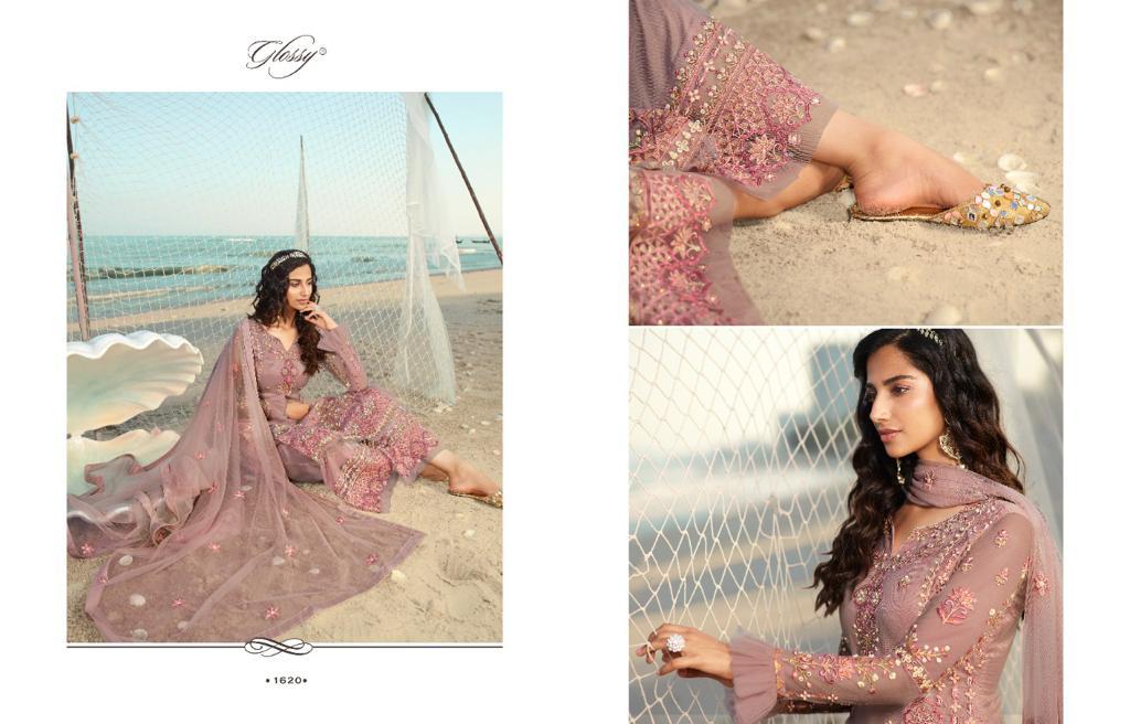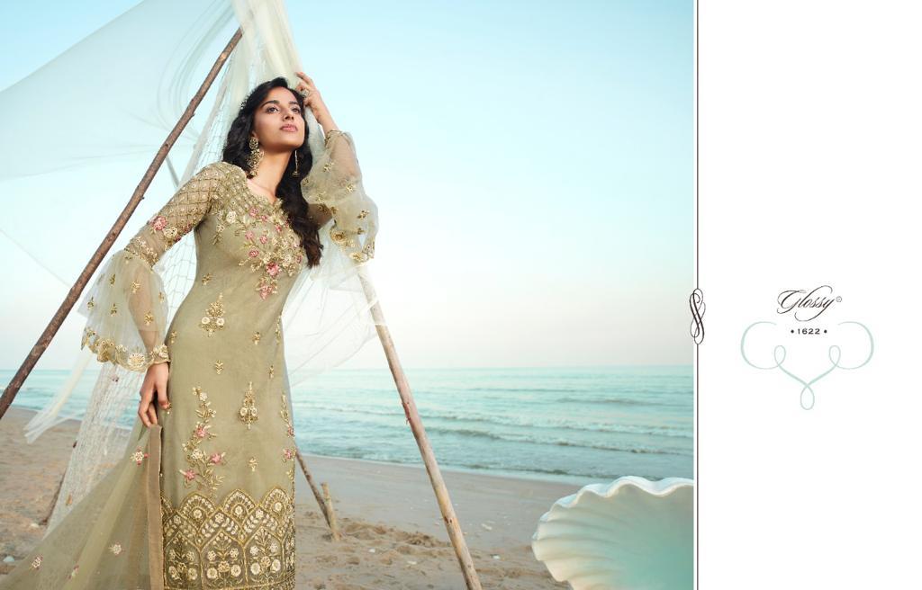 Qiana By Glossy Designer With Embroidery And Hand Work Net Suits Are Available In Singles At Wholesale Price