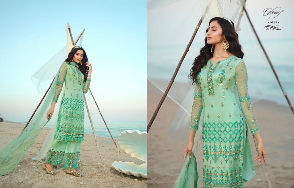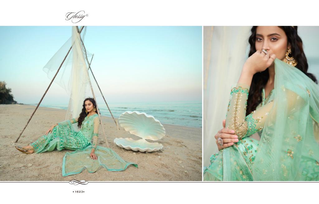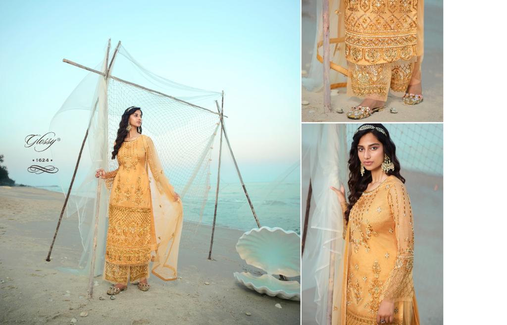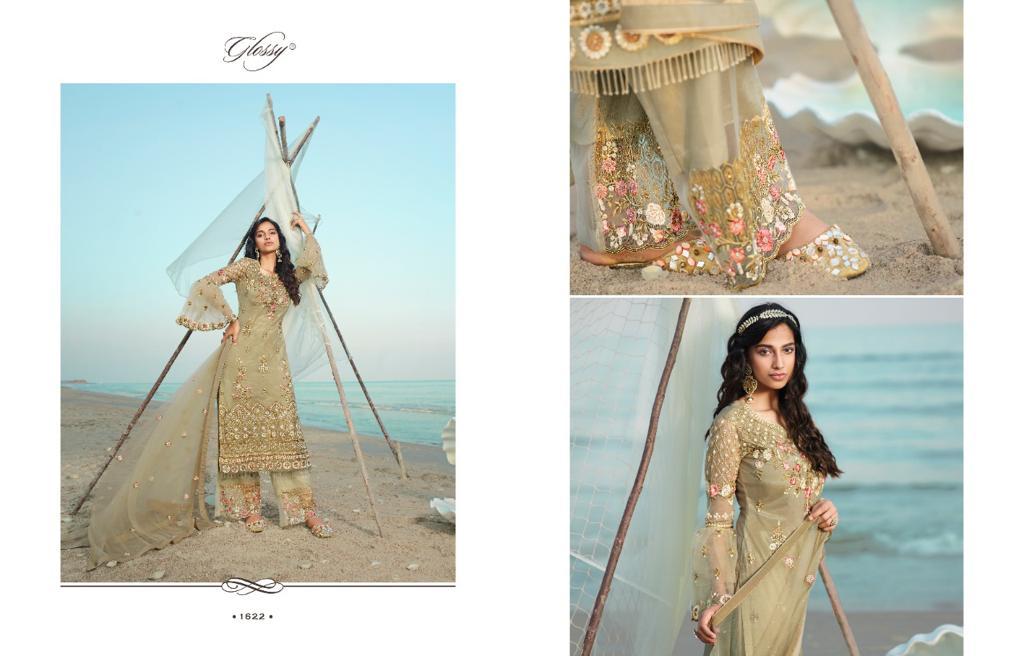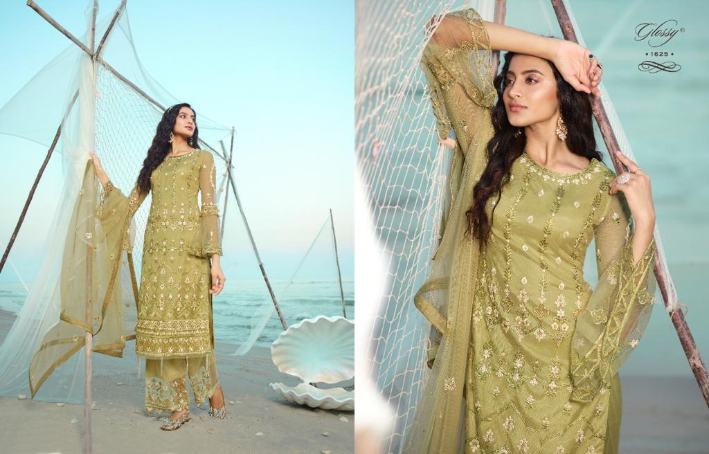 Qiana By Glossy Designer With Embroidery And Hand Work Net Suits Are Available In Singles At Wholesale Price