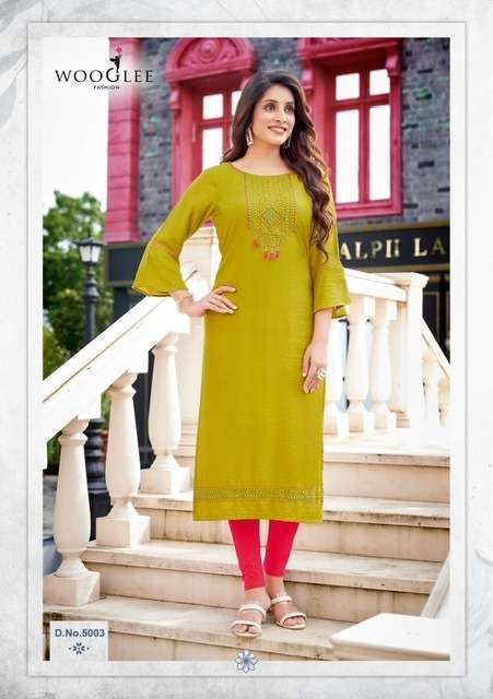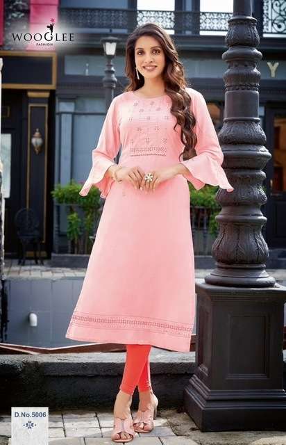 RAAS KURTI BY WOOGLE DESIGNER WITH EMBROIDERY WORK RAYON KURTIS ARE AVAILABLE AT WHOLESALE PRICE