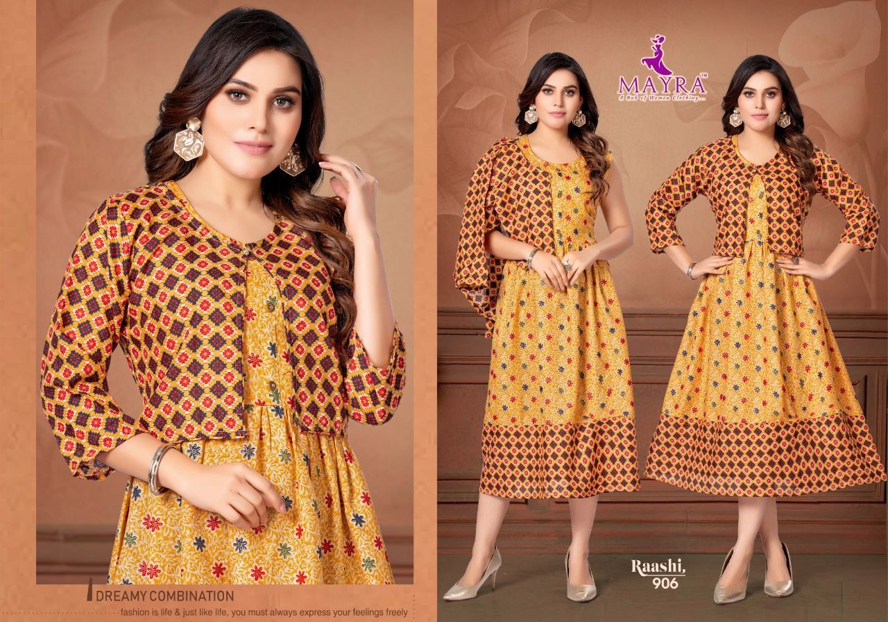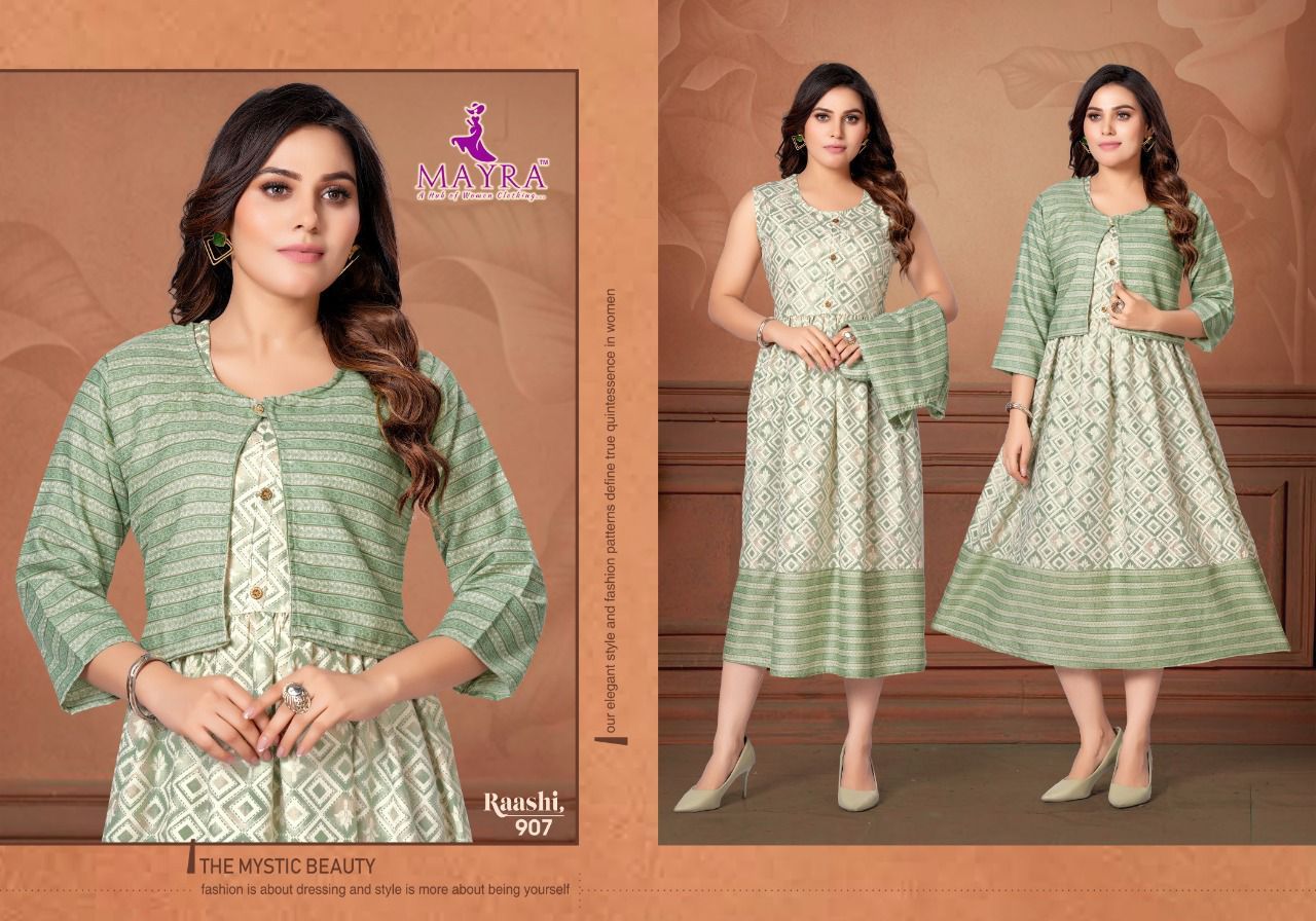 Raashi Kurti By Mayra Designer With Foil Printed Rayon Anarkali Kurtis Are Available At Wholesale Price