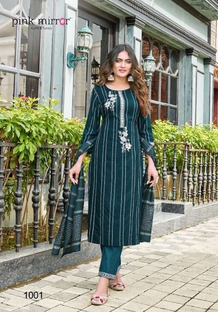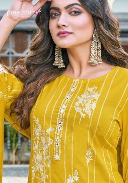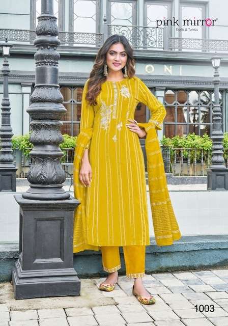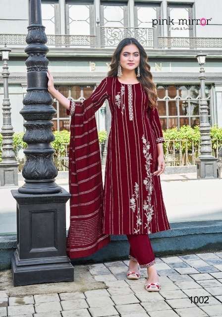 RADICAL KURTI BY PINK MIRROR DESIGNER WITH WORK VISCOSE KURTI WITH BOTTOM AND DUPATTA ARE AVAILABLE AT WHOLESALE PRICE