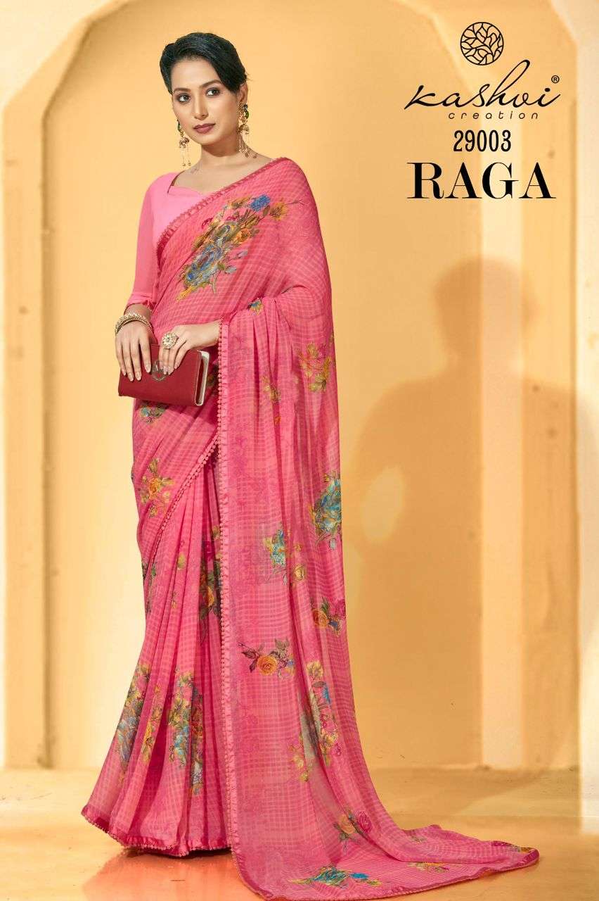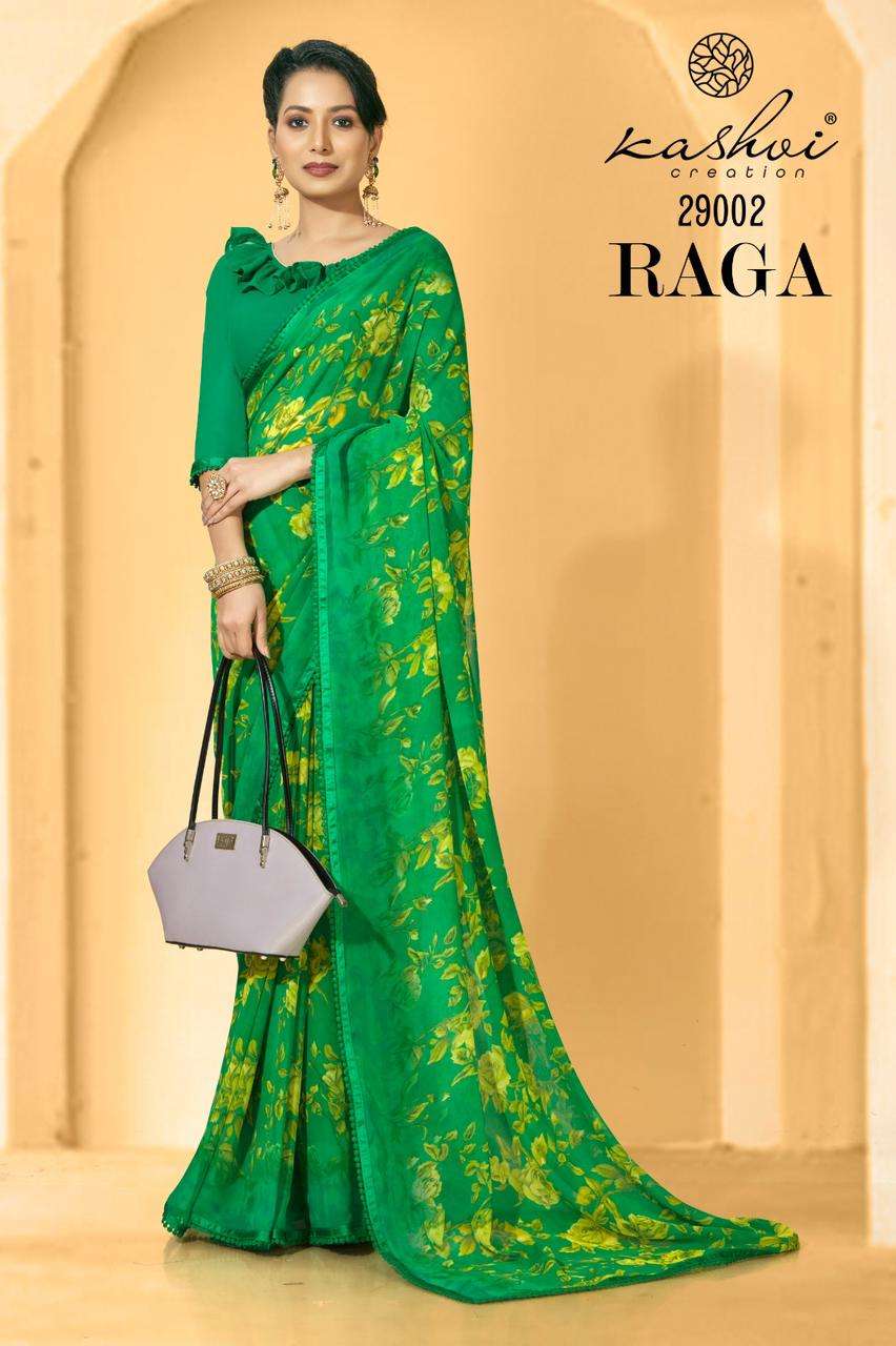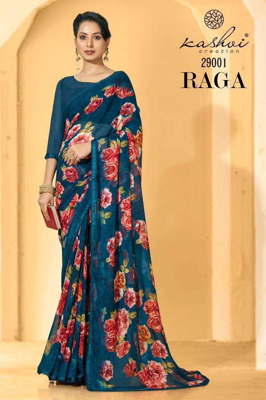 RAGA SAREE BY KASHVI LT DESIGNER WITH PRINTED GEORGETTE SAREES ARE AVAILABLE AT WHOLESALE PRICE