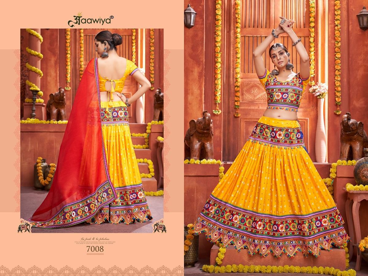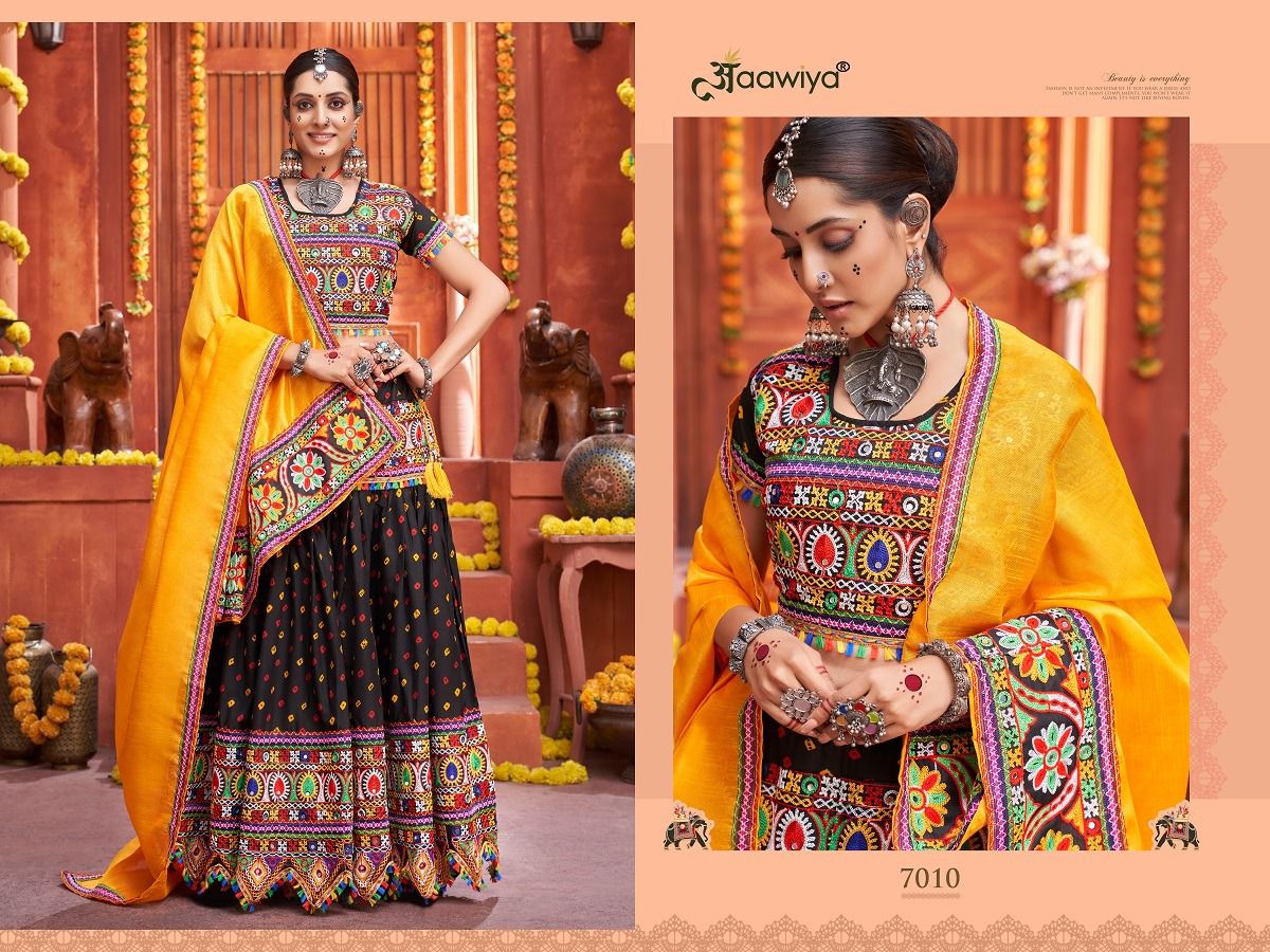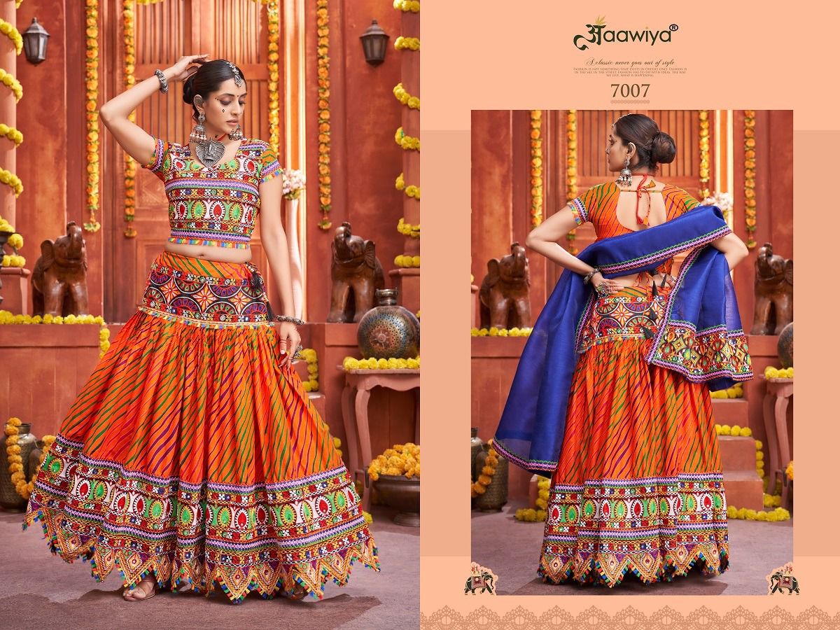 Rajwadi Vol-4 Lehenga Choli By Aawiya Designer With Work Navratri Collections Lehenga Choli Are Available In Singles At Wholesale Price