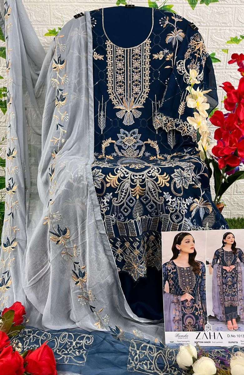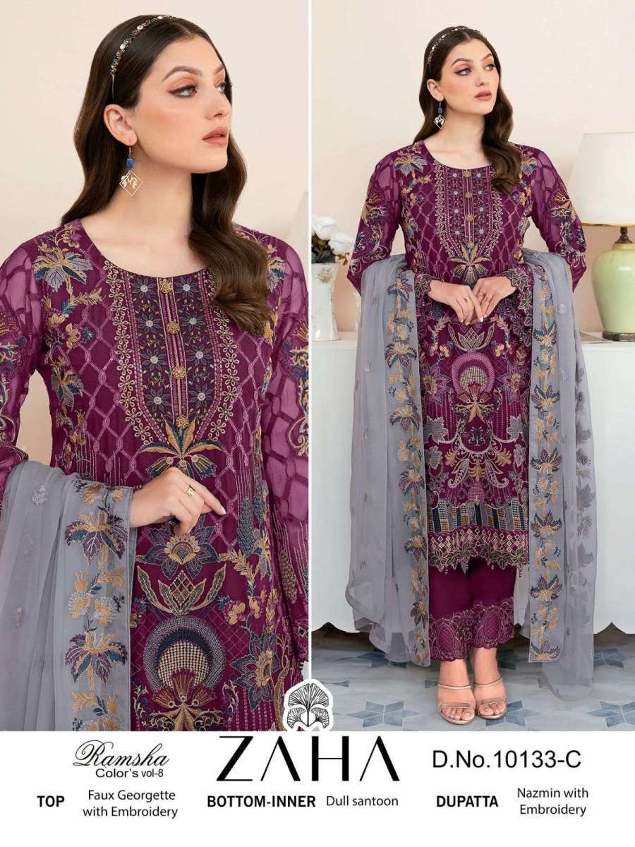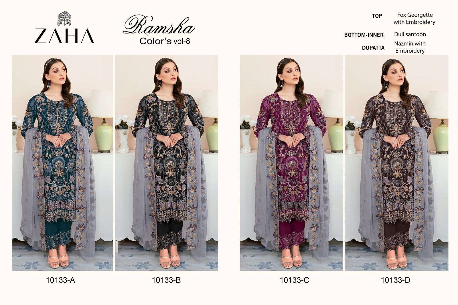 RAMSHA COLORS VOL-8 BY ZAHA DESIGNER WITH WORK GEORGETTE PAKISTANI STYLE SUITS ARE AVAILABLE IN SINGLES AT WHOLESALE PRICE