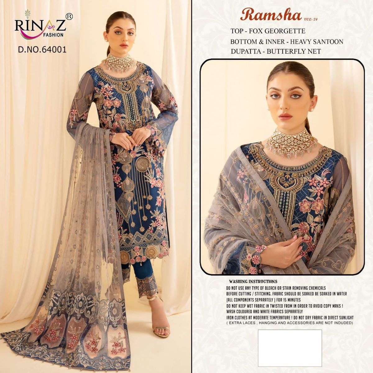 RAMSHA VOL-24 BY RINAZ FASHION DESIGNER WITH WORK GEORGETTE PAKISTANI STYLE SUITS ARE AVAILABLE IN SINGLES AT WHOLESALE PRICE