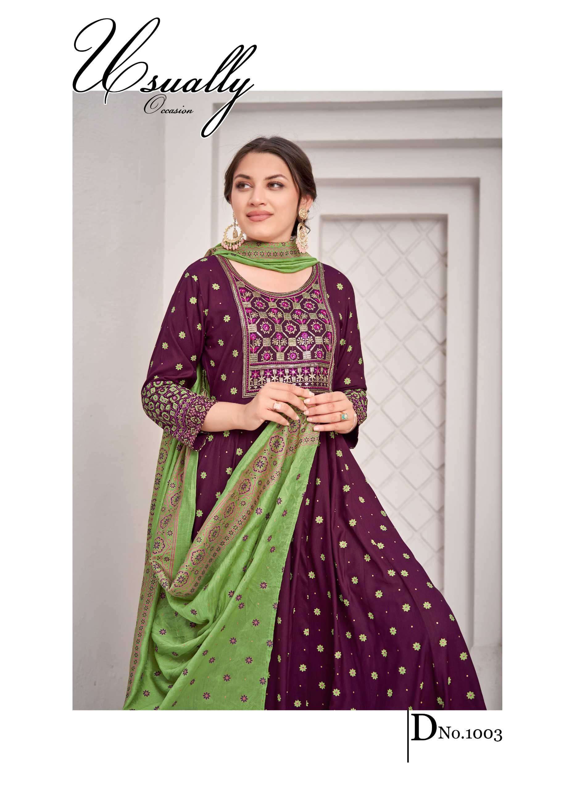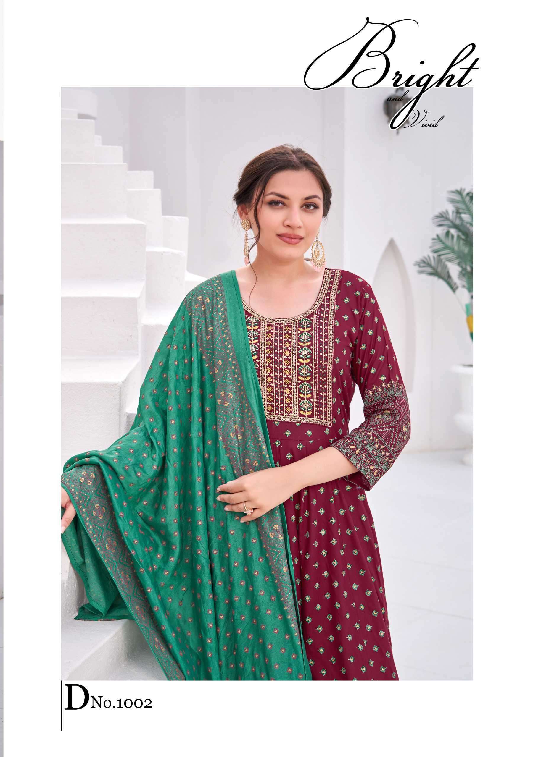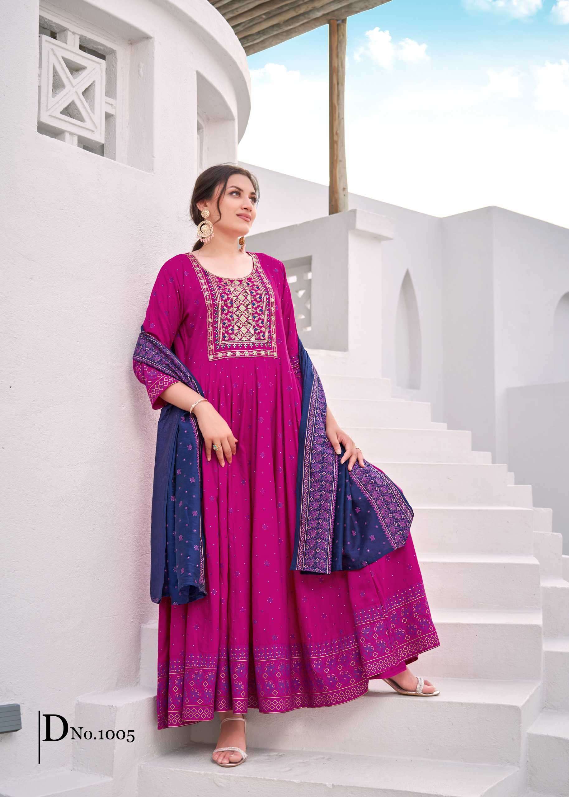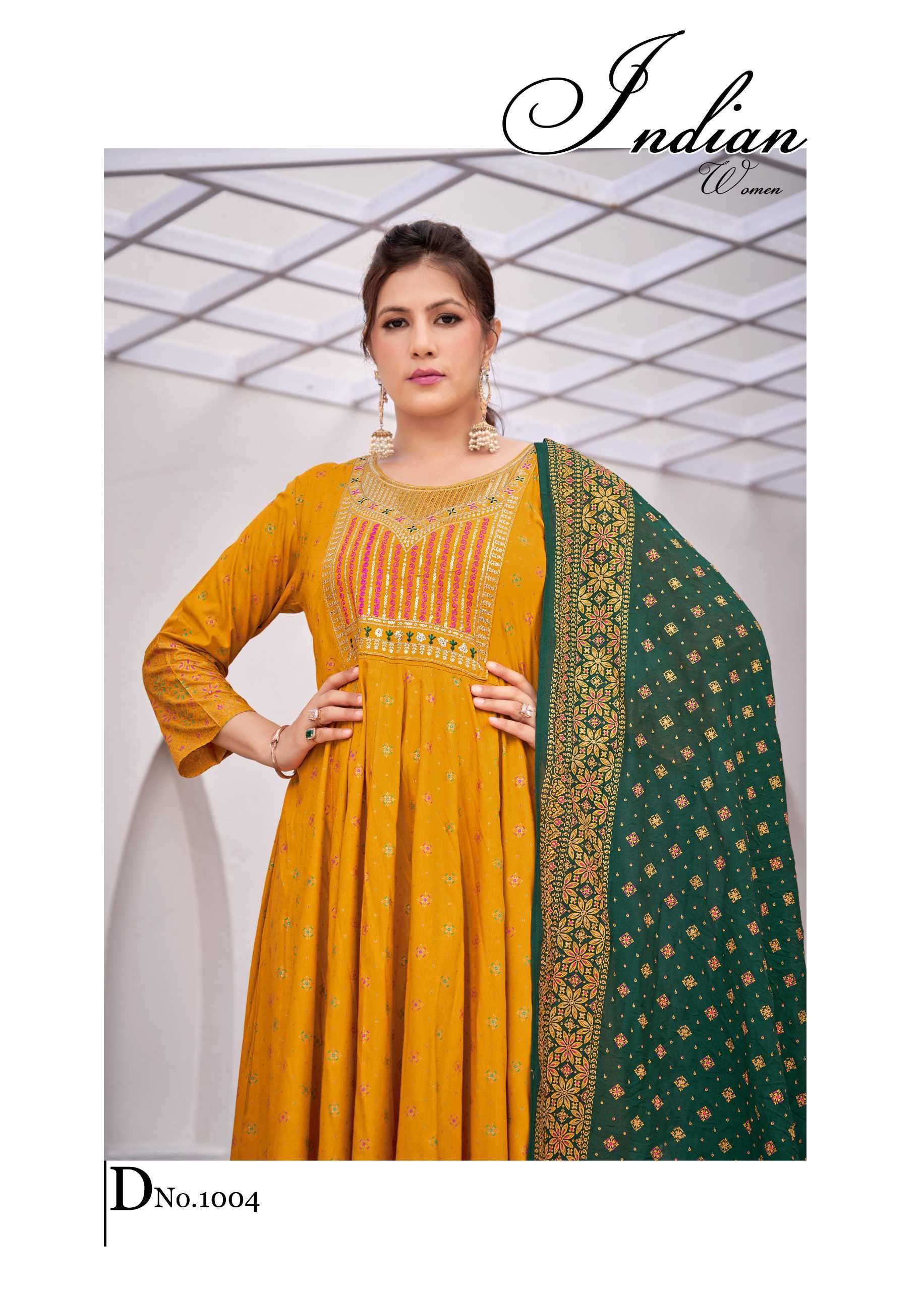 GOWN - 14 KG RAYON WITH COLOR FOIL WITH HEAVY EMBROIDERY NACK