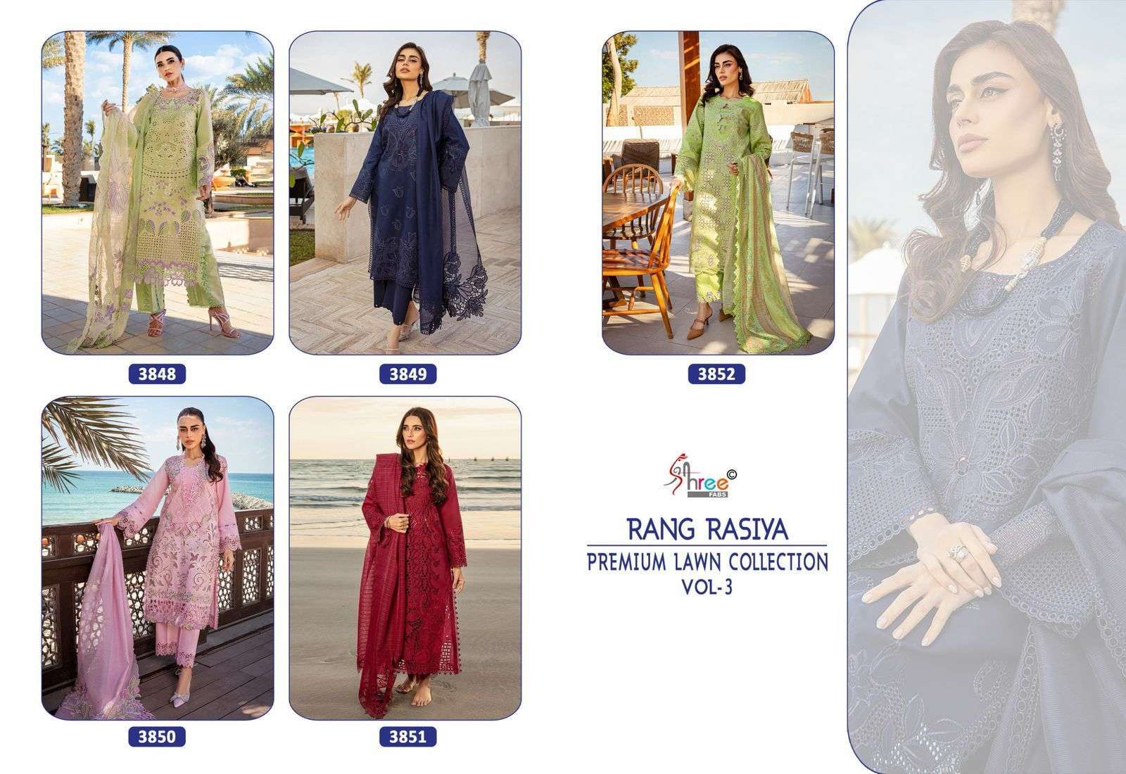 | Name: | shree fabs-RANG RASIYA PREMIUM LAWN COLLECTION VOL-3 SERIES 3848 TO 3852 BY SHREE FABS |