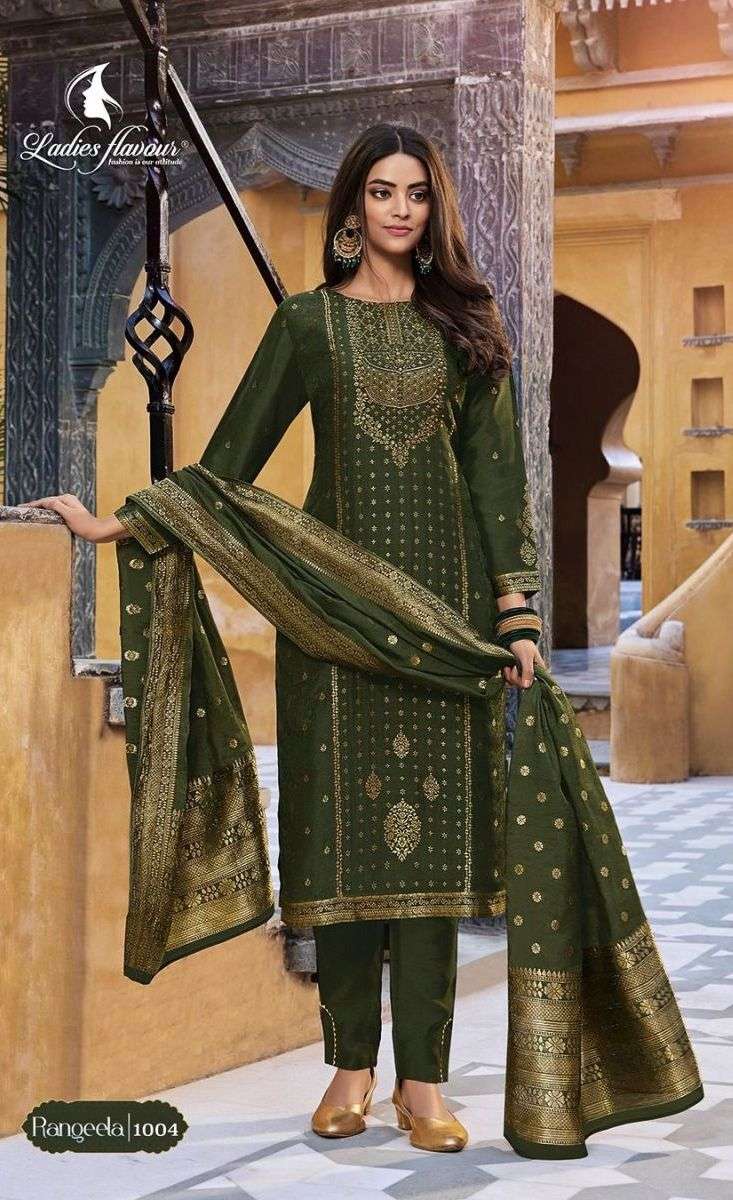 RANGEELA KURTI BY LADIES FLAVOUR DESIGNER WITH WORK DOLA VISCOSE KURTI WITH PANT AND DUPATTA ARE AVAILABLE AT WHOLESALE PRICE
