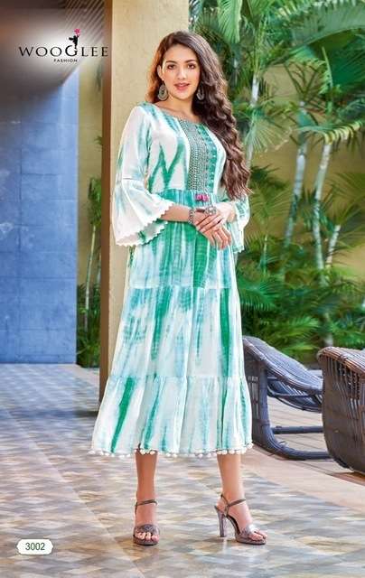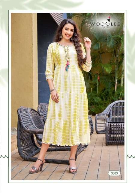 RANGMUNCH KURTI BY WOOGLEE DESIGNER WITH PRINTED RAYON WRINKLE KURTIS ARE AVAILABLE AT WHOLESALE PRICE