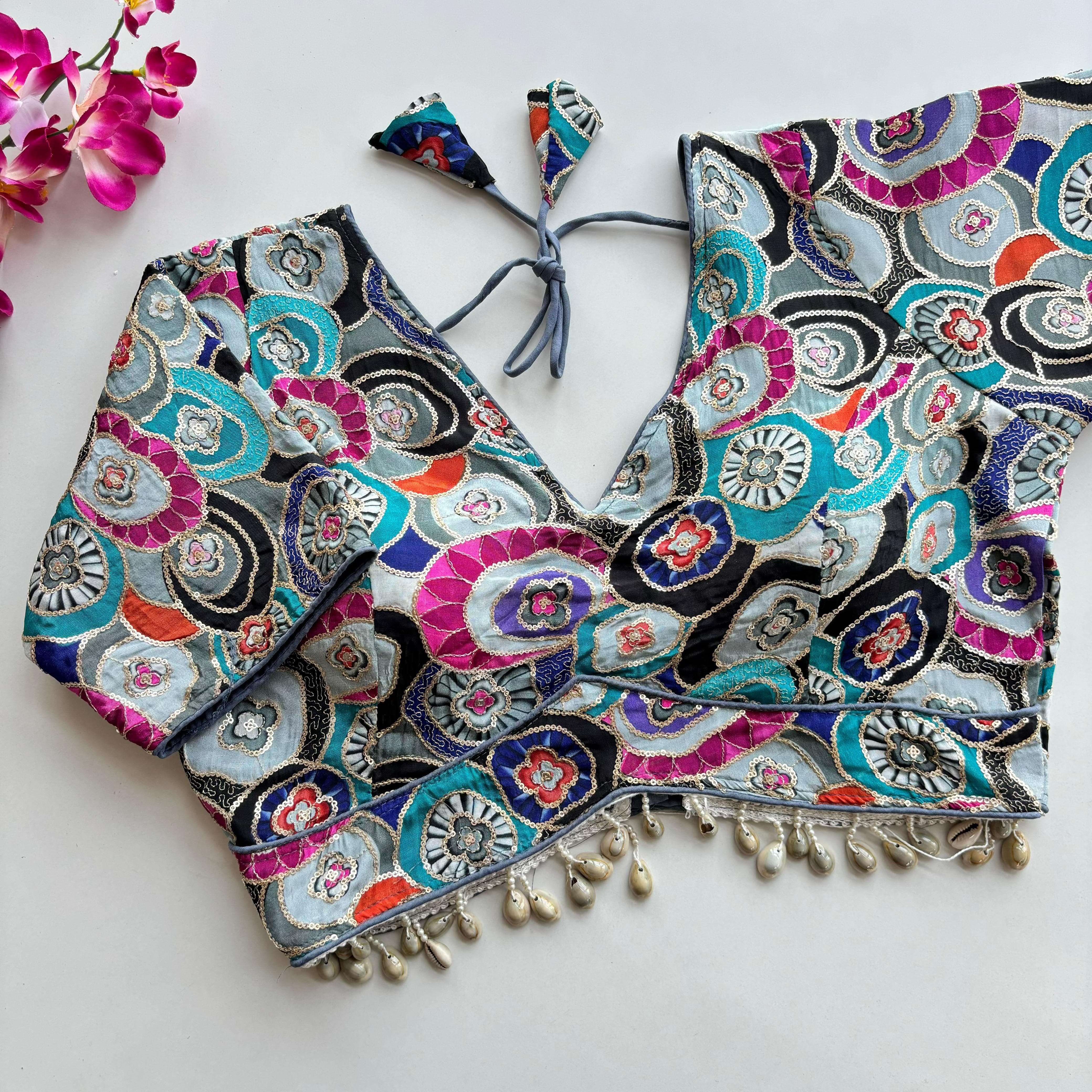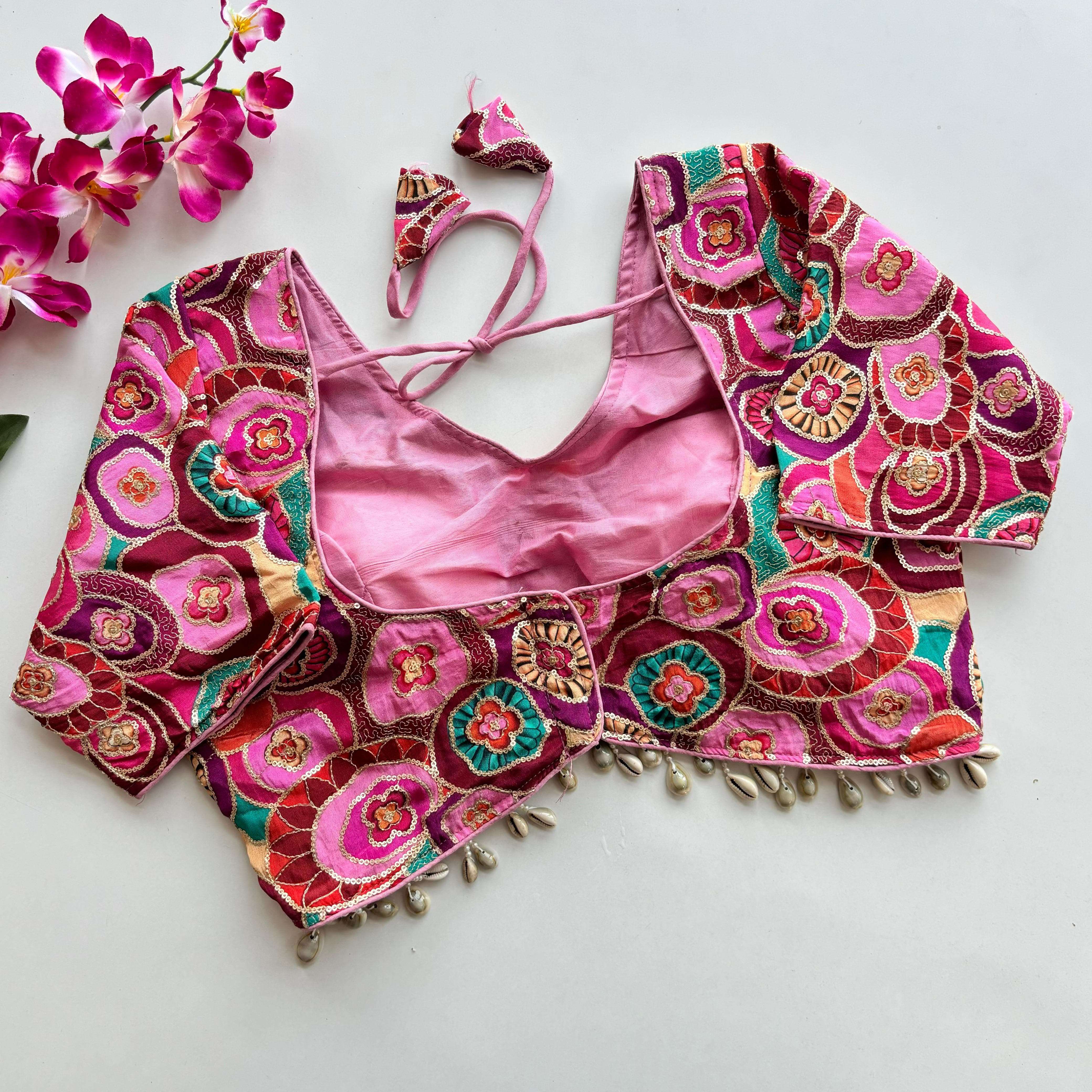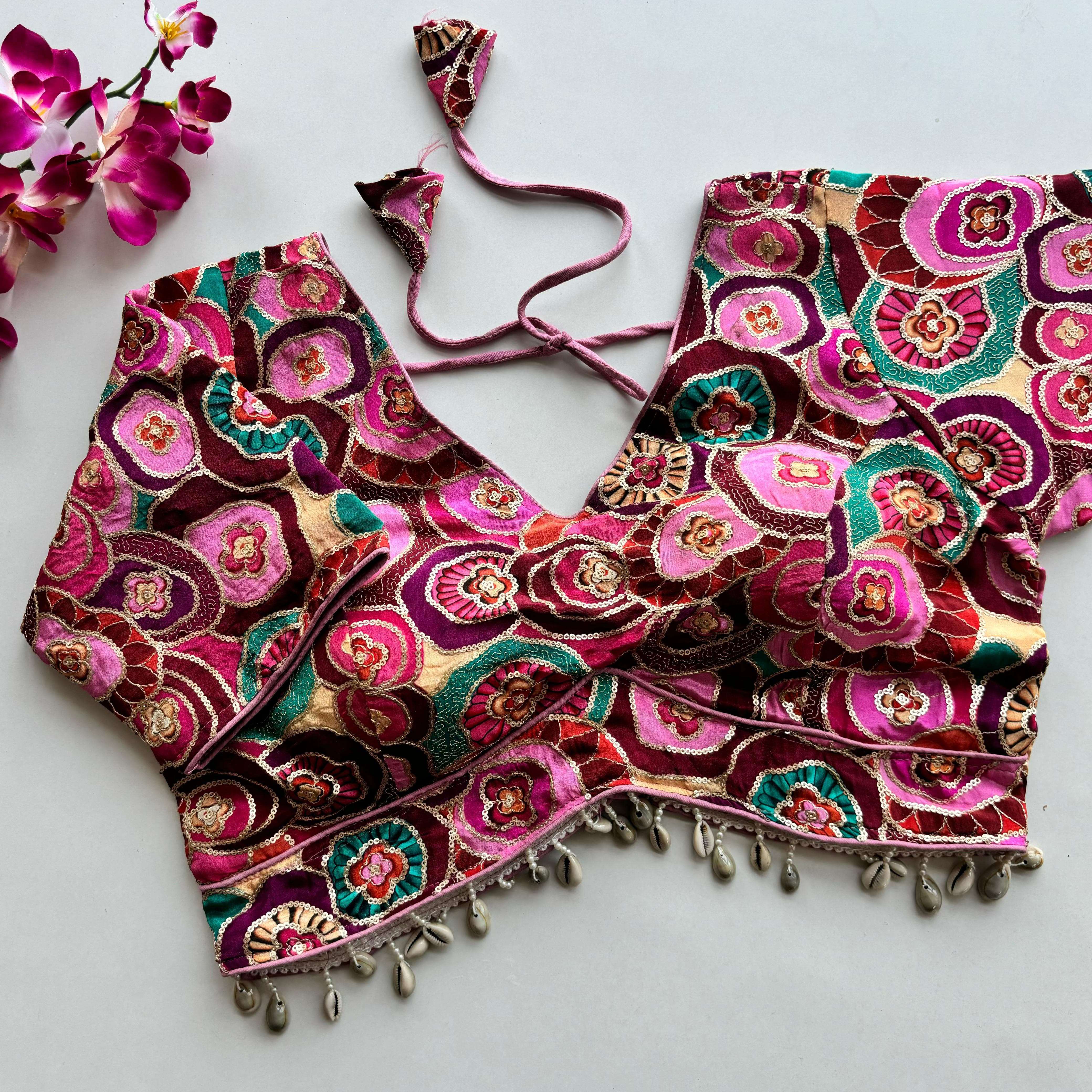 DESGINE - Beautiful Blouse Partywear desgine Heavy Stitching Heavy Padded Real Kaudi Lace With Beautiful Latkans Back open Style