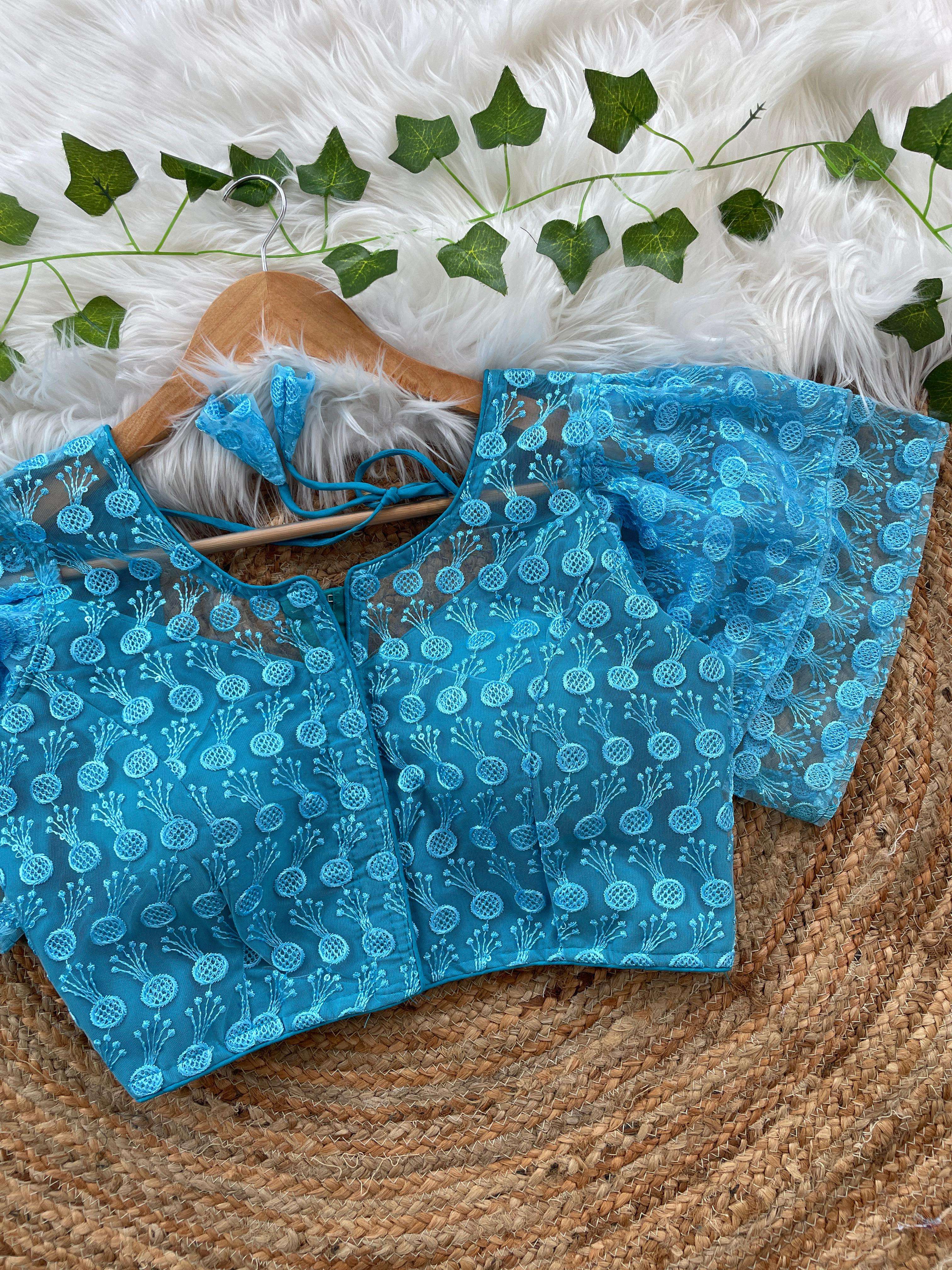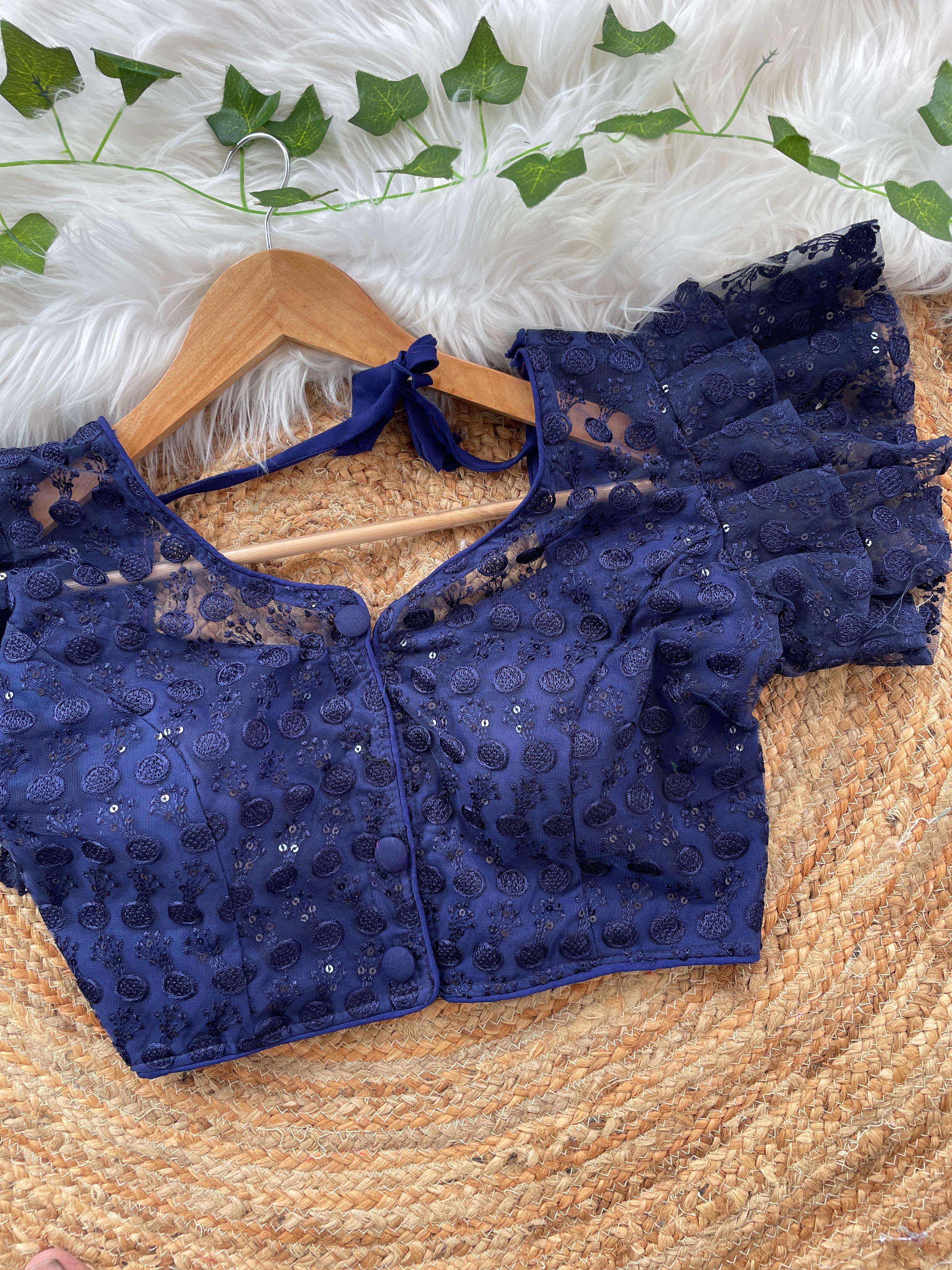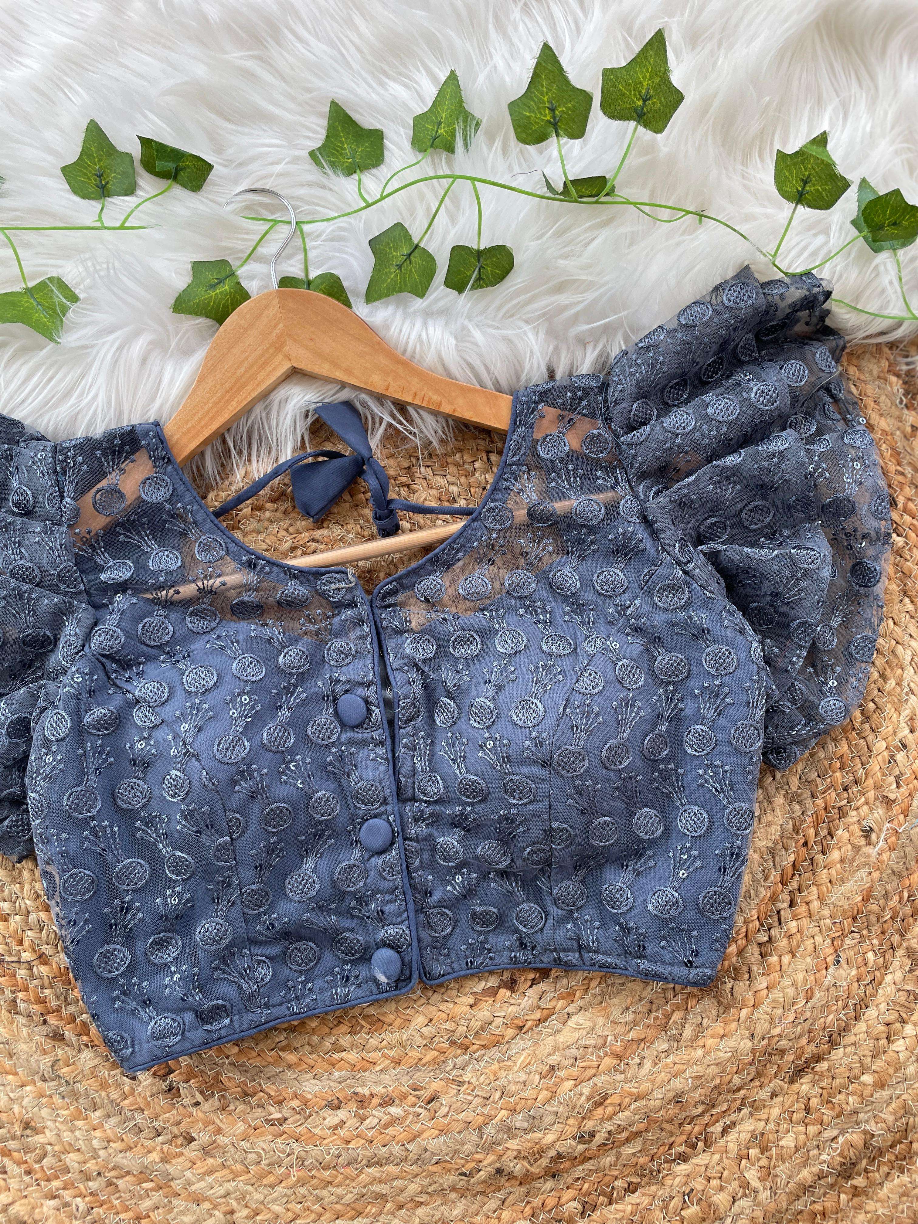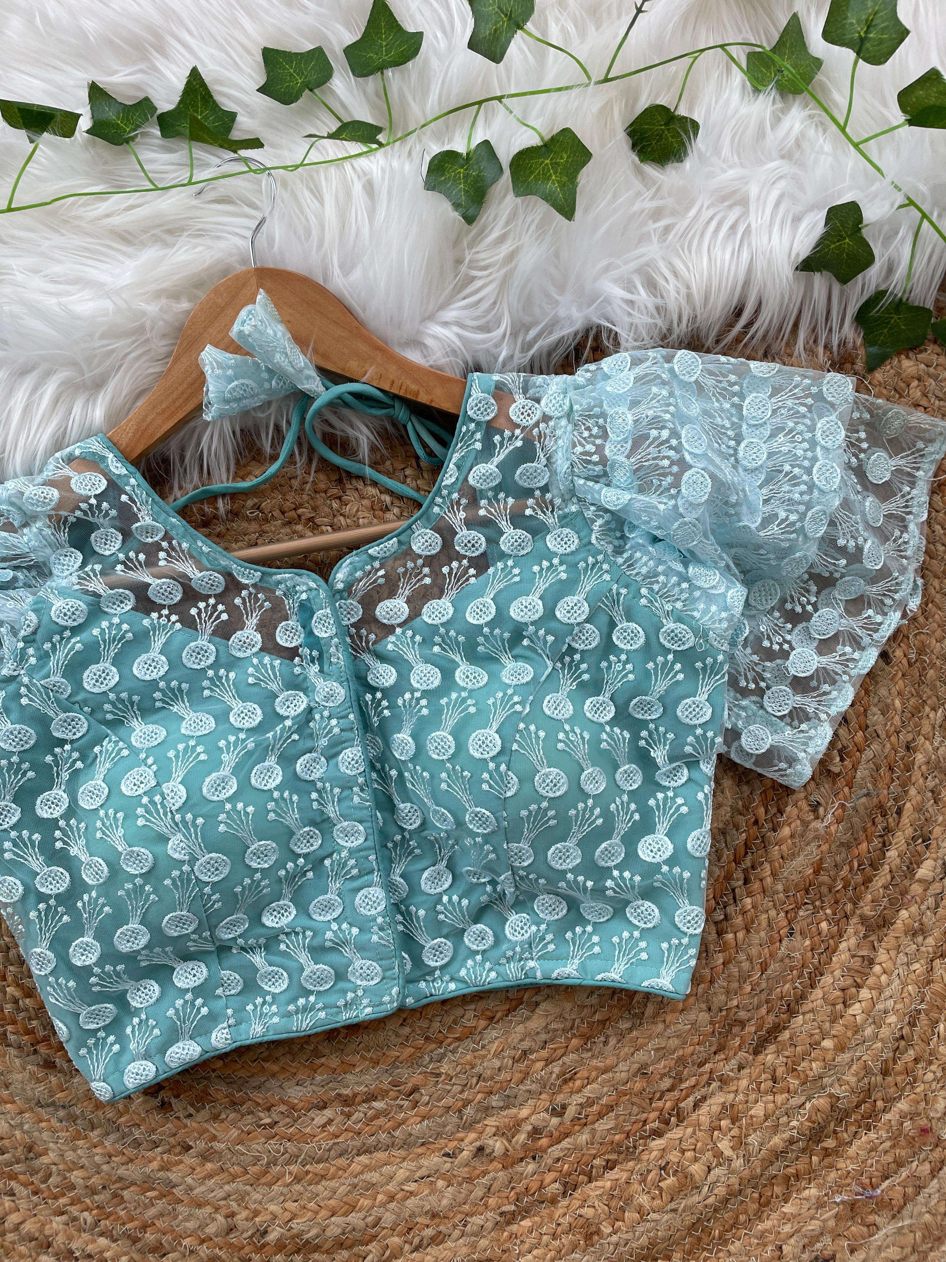 DESIGNE - Soft pure nylon readymade blouse with schiffli embroidery thread and sequence wark