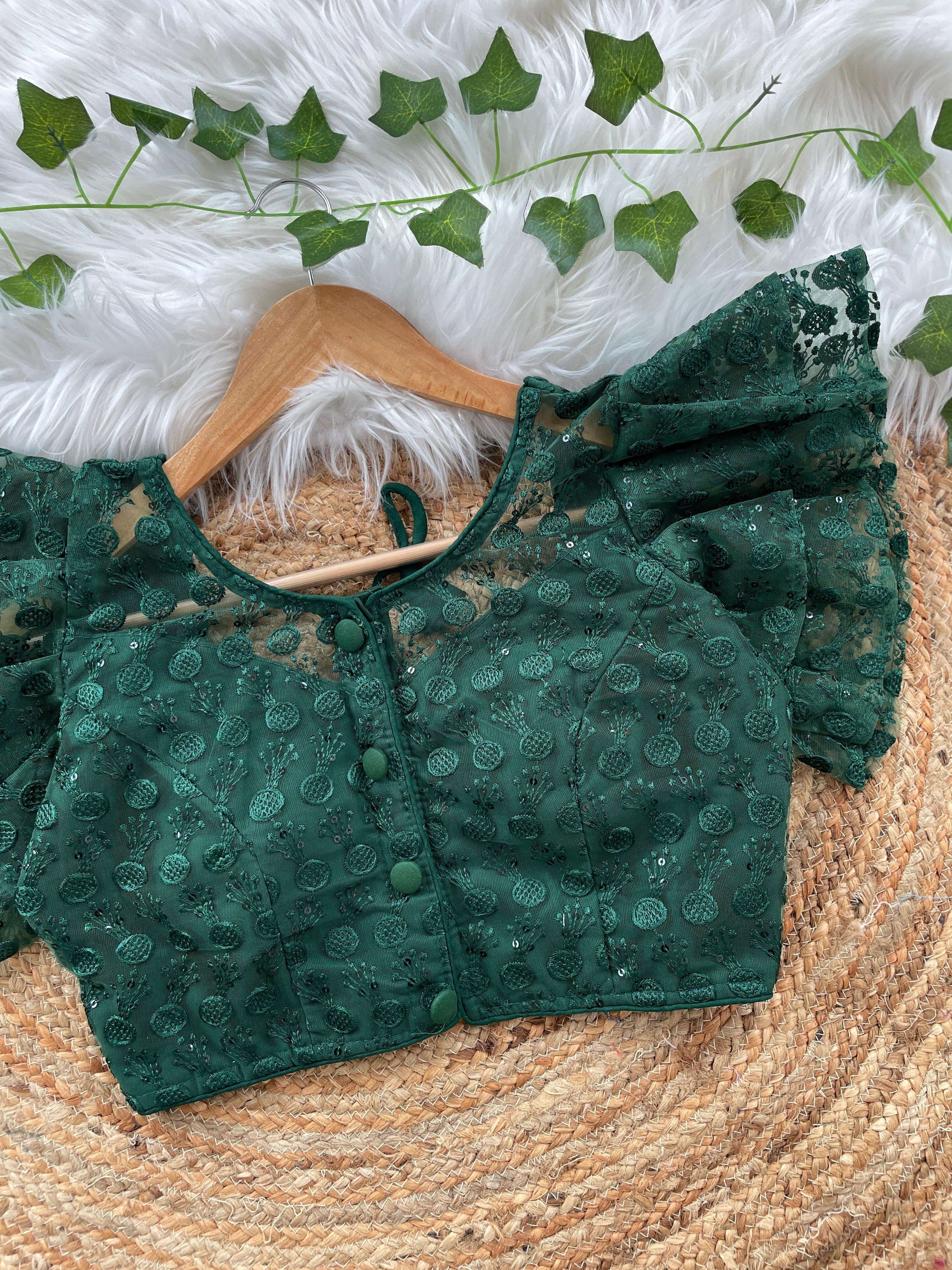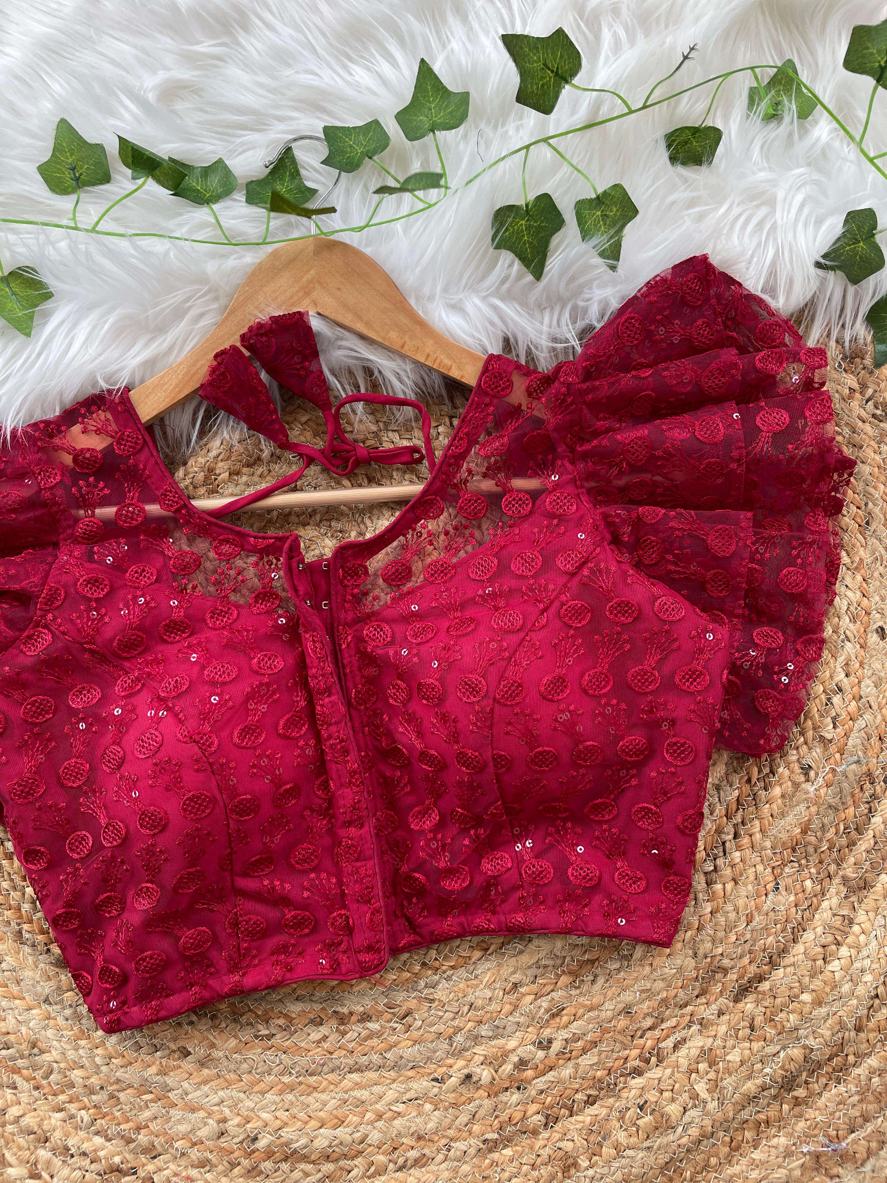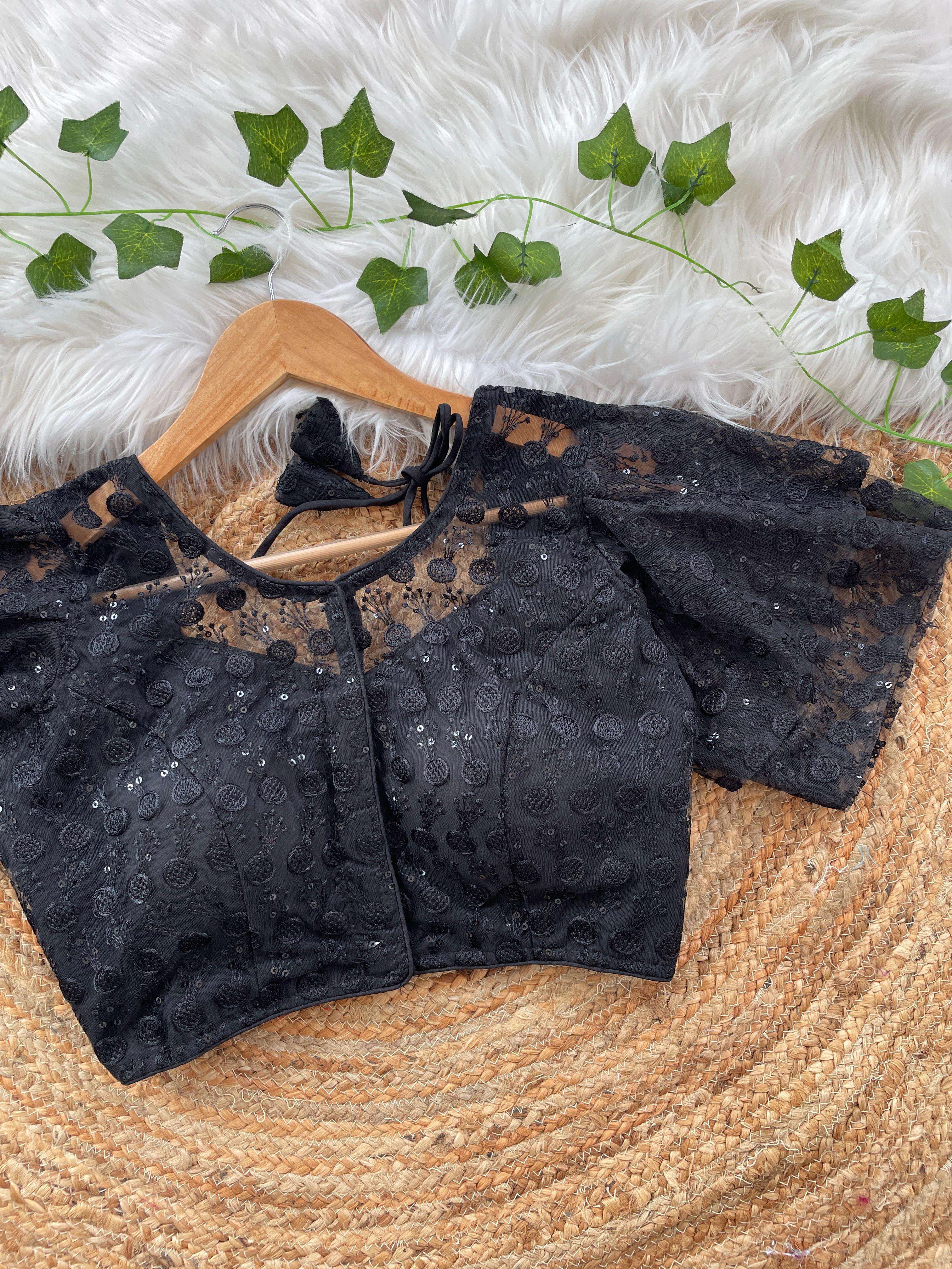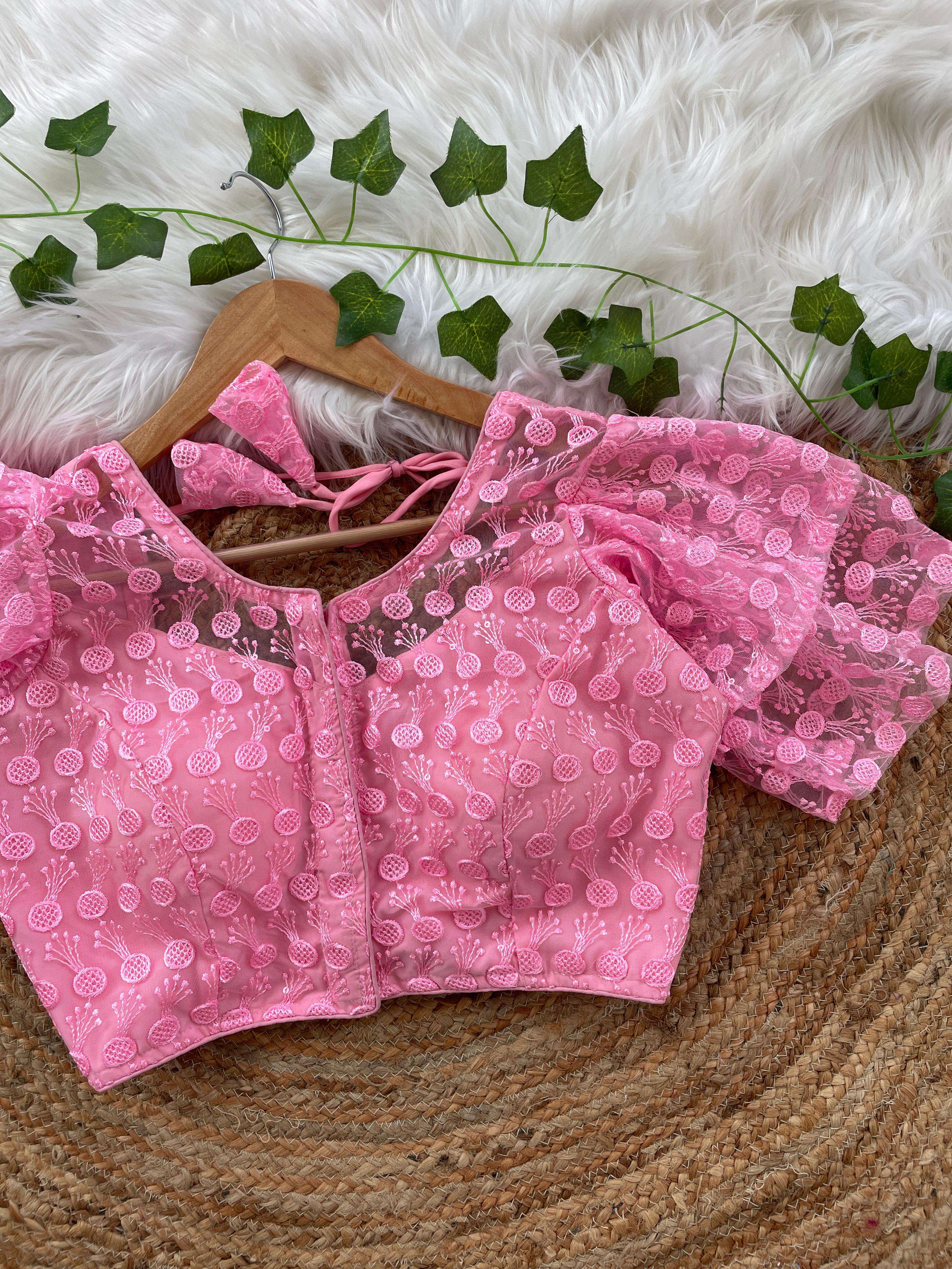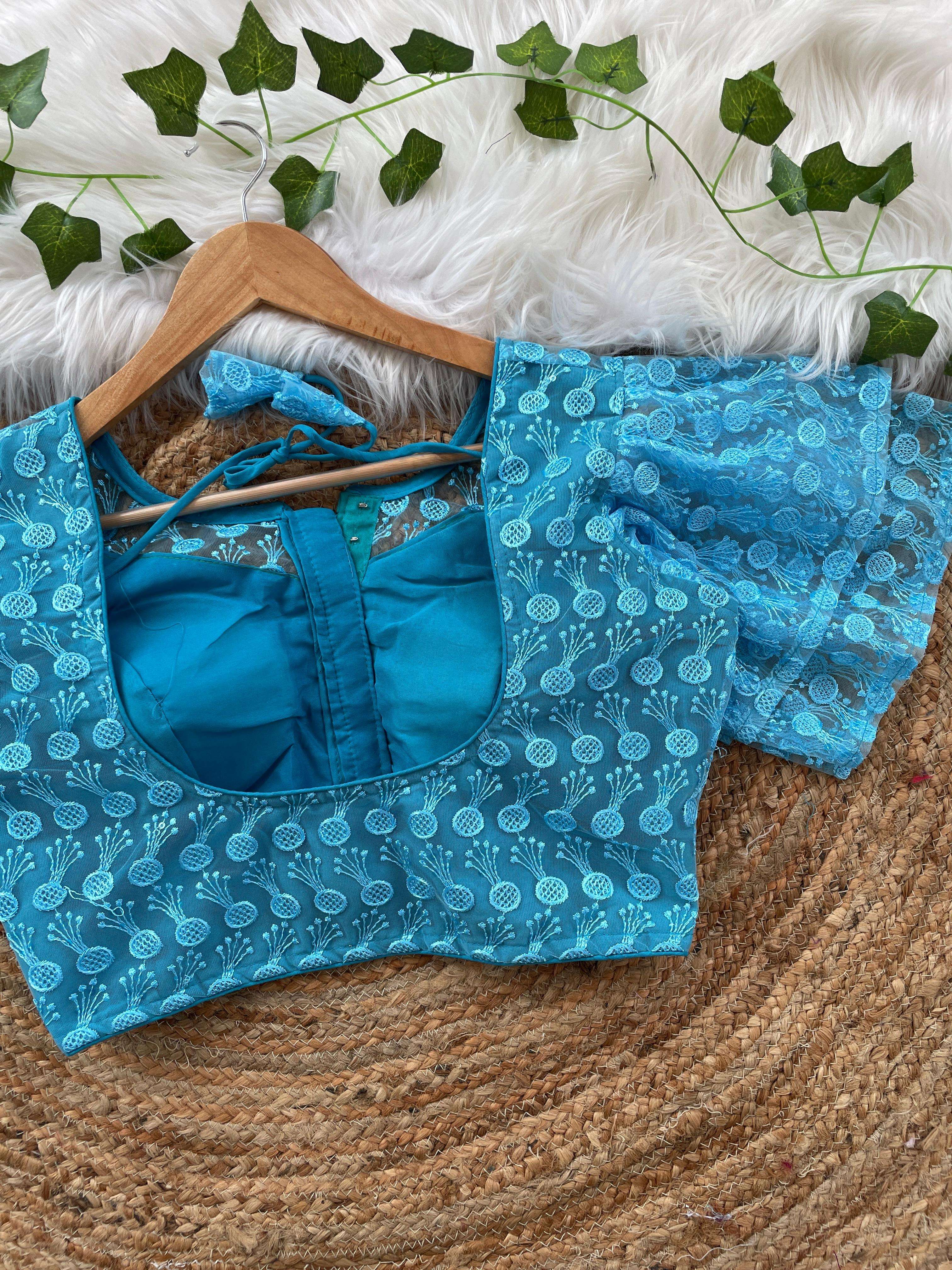 DESIGNE - Soft pure nylon readymade blouse with schiffli embroidery thread and sequence wark