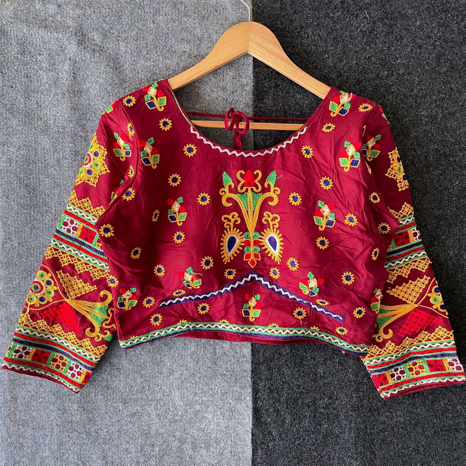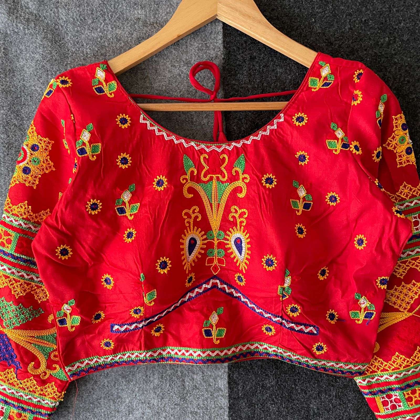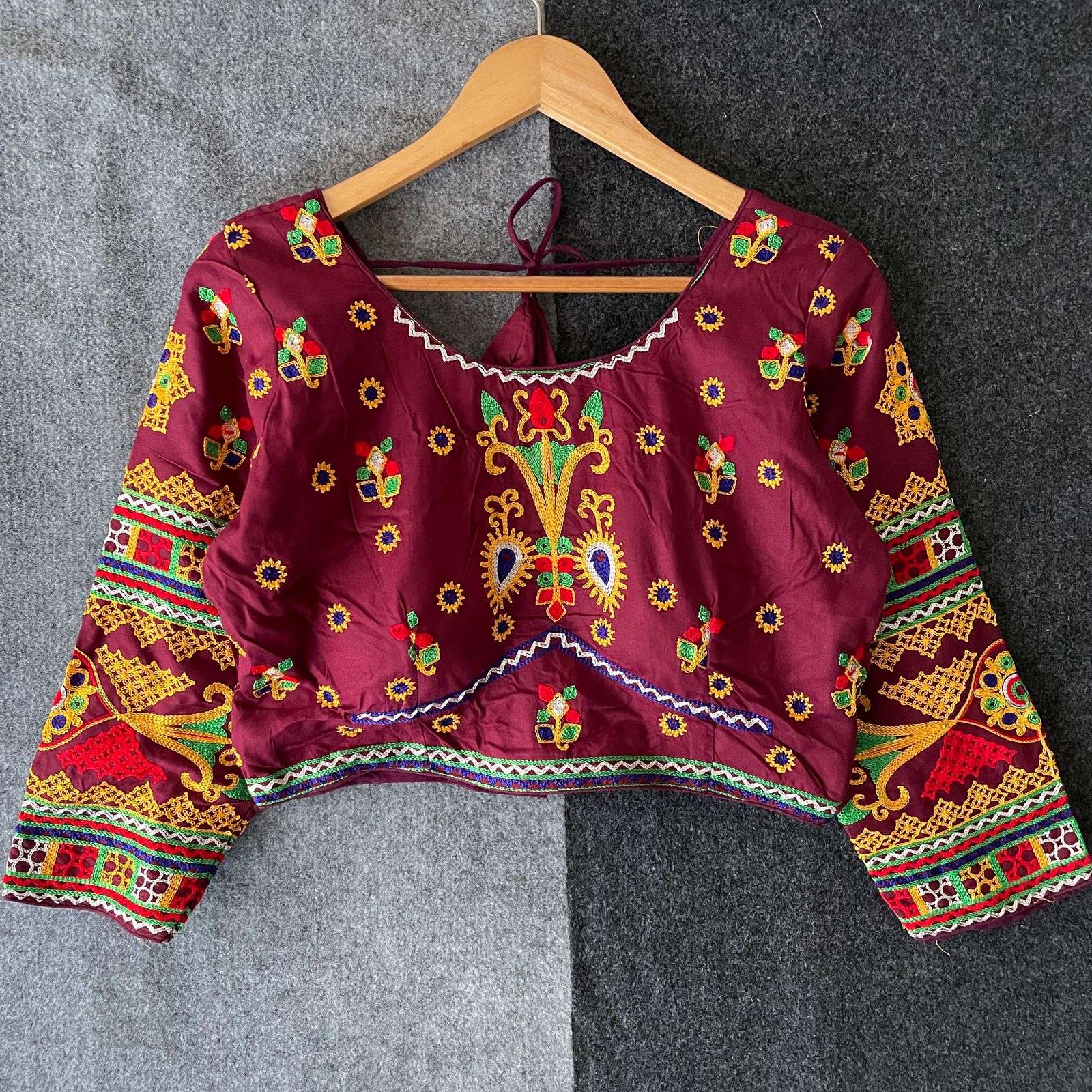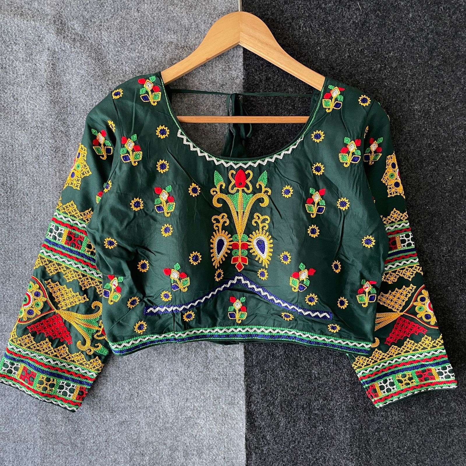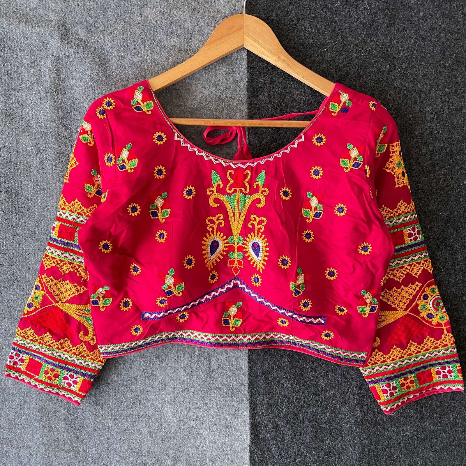 DESGINE - Beautiful Traditional Blouse Heavy Stitching Heavy Padded With Beautiful Mirror Work BACK open Style