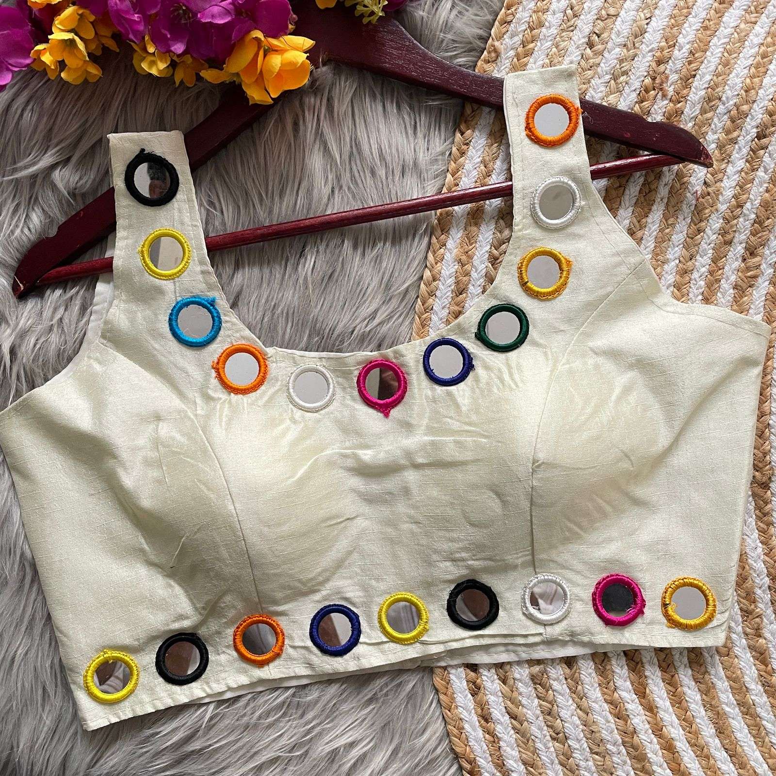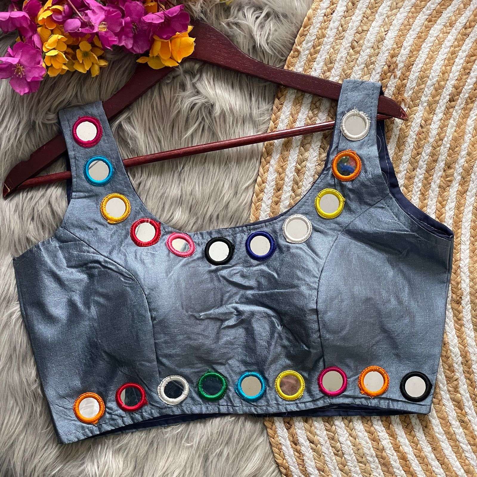 DESGINE - Beautiful Traditional Blouse Heavy Stitching Heavy Padded With Beautiful Mirror Work Back open Style