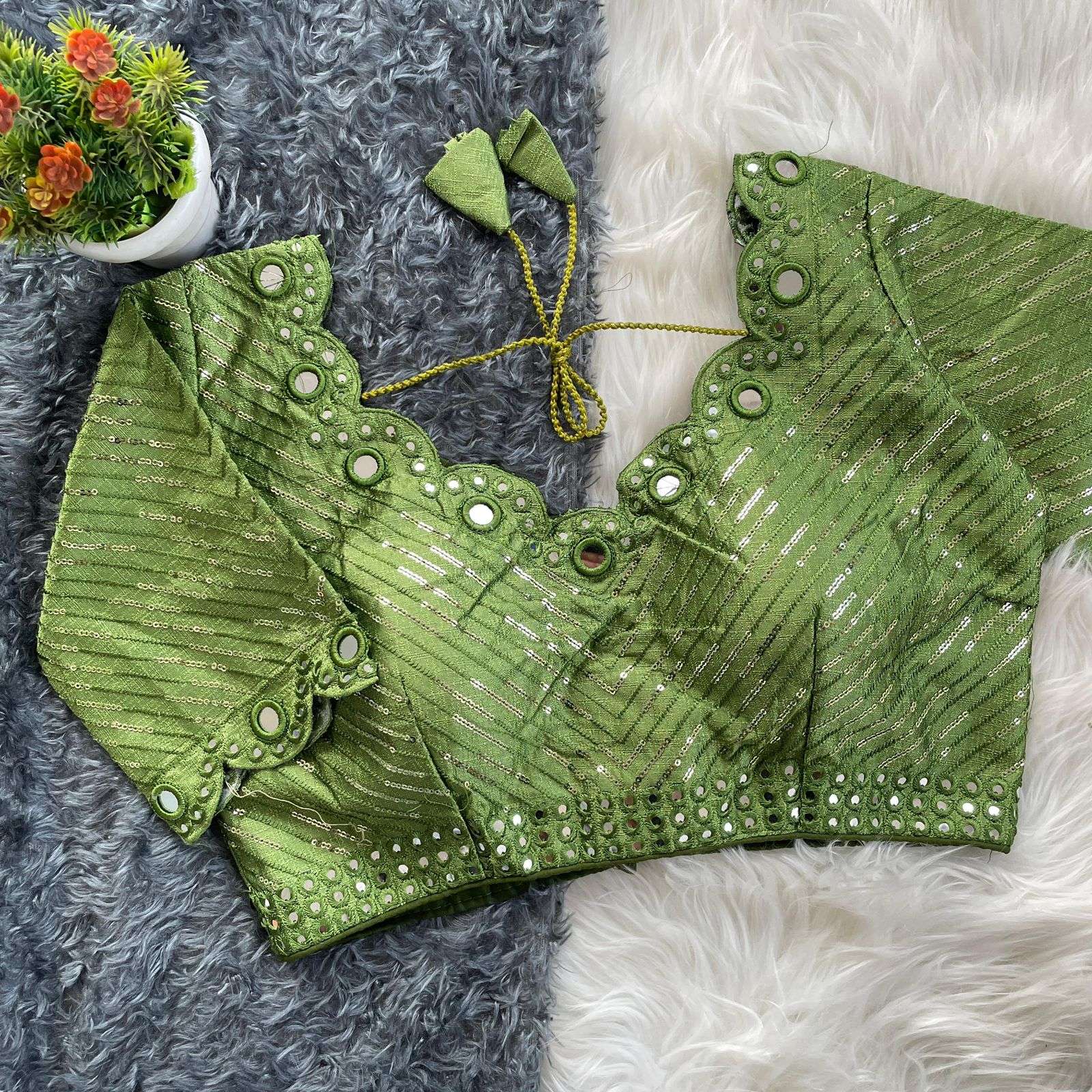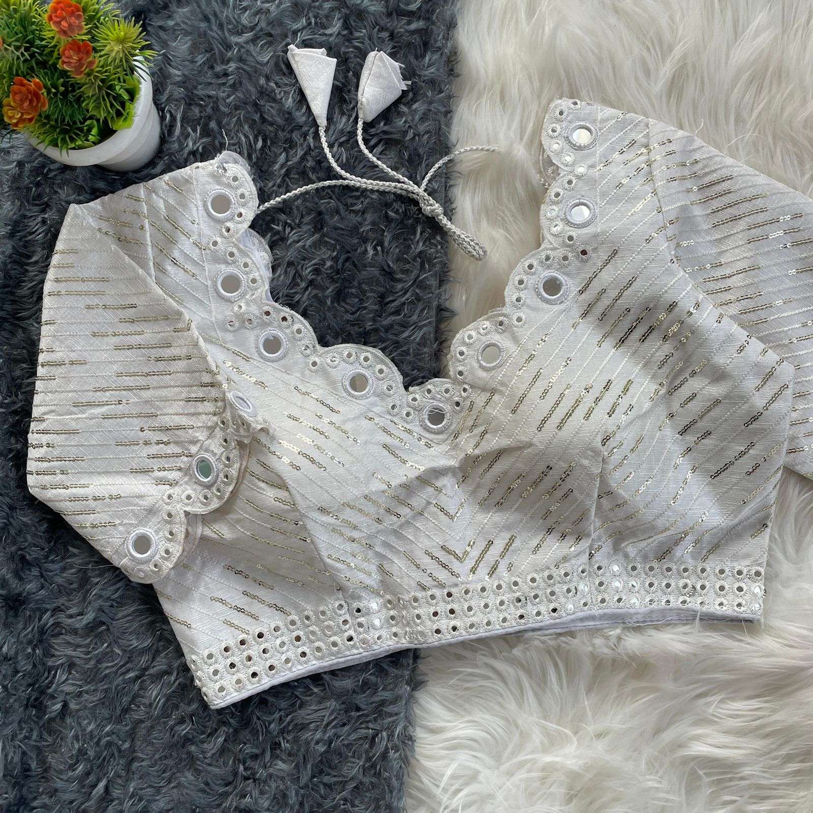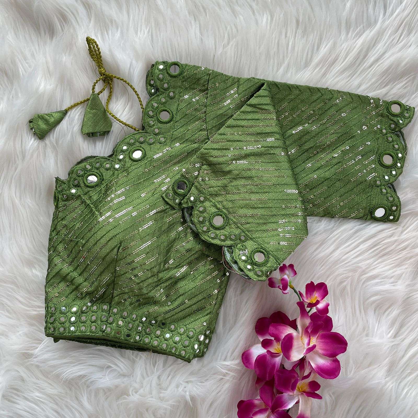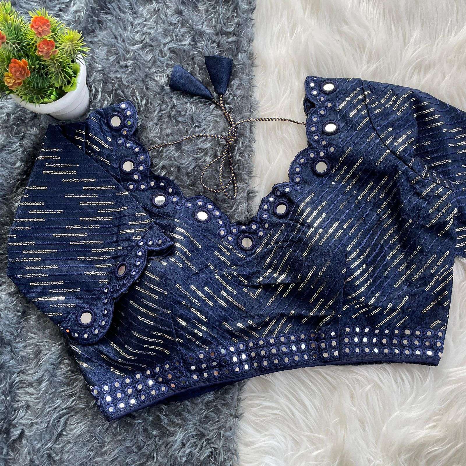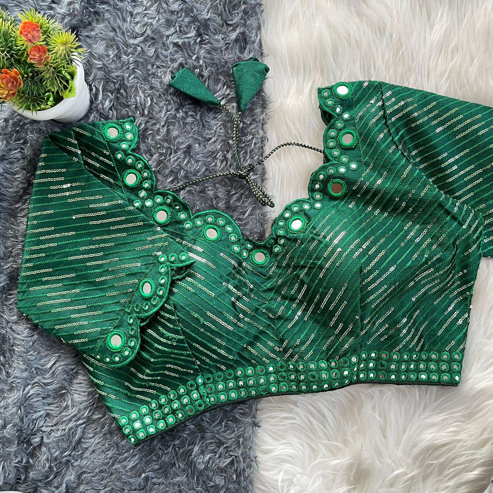 DESGINE - Beautiful Traditional Blouse Heavy Stitching Heavy Padded With Beautiful Mirror Work Back open Style